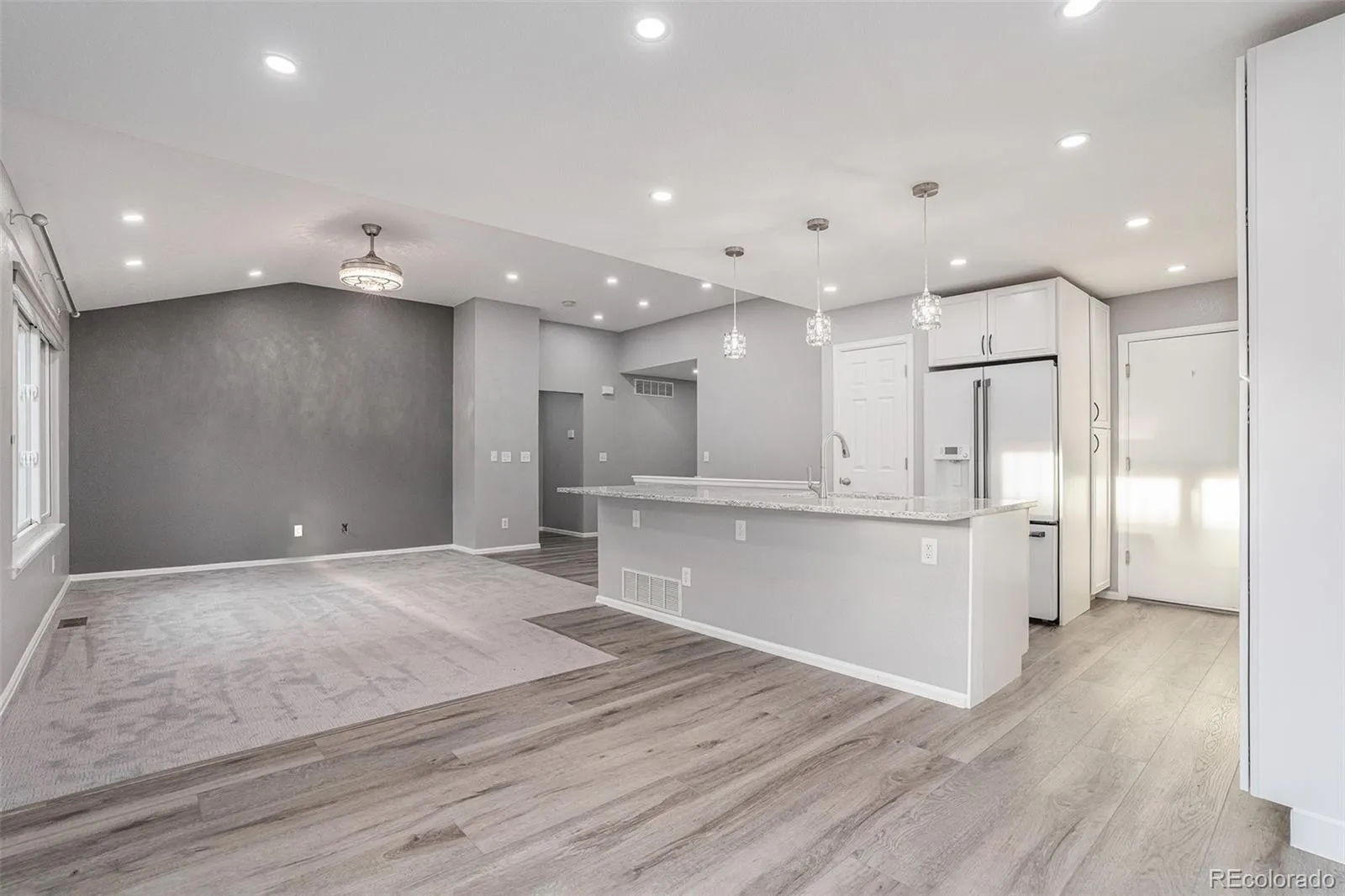 This charming home offers a desirable main-floor primary suite and convenient main-floor laundry. The upper level has been recently remodeled, and the basement features fresh paint and new carpet. Enjoy upgraded appliances, remote-operated blinds, and vaulted ceilings that create a bright, open feel.