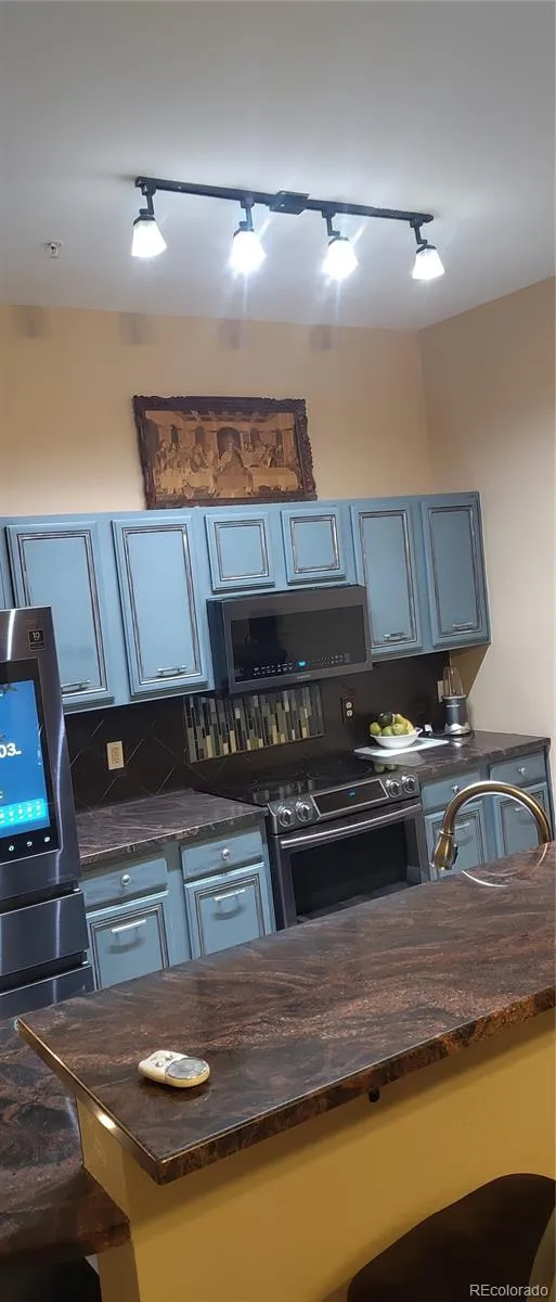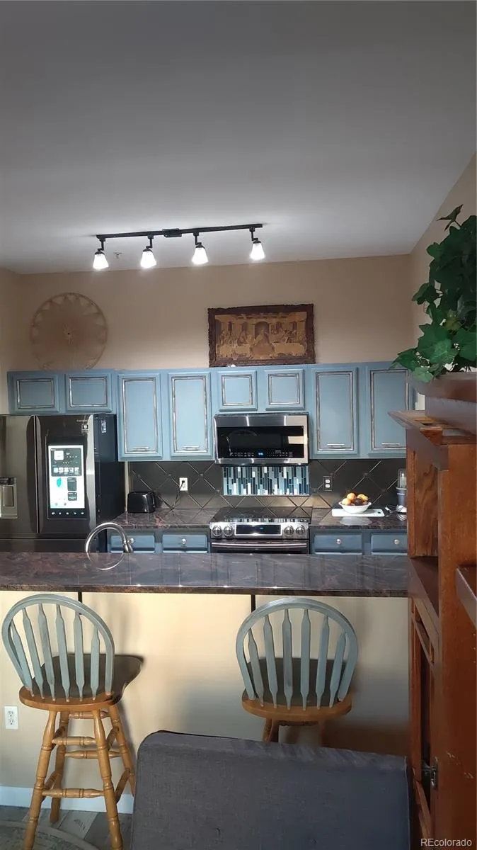 Don’t settle for average. This unit is all but boring. When you step inside you’re overcome with a warm rustic charm. From the custom painted cabinetry and granite countertops throughout, to the beautiful Ayers stone tiled shower in the guest bathroom. NuCore Luxury vinyl plank flooring, newer carpet in the bedrooms, with pet/stain protection padding. Windows are double paned and can be taken out to be cleaned, they open from both top and bottom. A fairly large Master bedroom with a large walk in closet. The master bath boasts an extra deep soaking tub, beautifully tiled to the ceiling! These high end premium upgrades stand out among the comparable units and shows the true value of this condominium. The master bedroom has separate access to the balcony through a sliding glass door. An open floor plan with high ceilings giving it an even more open airy feel. Westerly facing views of Bronco colored sunsets over the Mountain Range, just adds to the ambience of this unit. Hi-end black stainless steel appliances, washer and dryer in unit. A secure building with a deeded parking spot in a shared garage with key fob entry and steps away from the elevators for your convenience. A well-constructed building You rarely hear your neighbors Additional free parking in the parking lot.