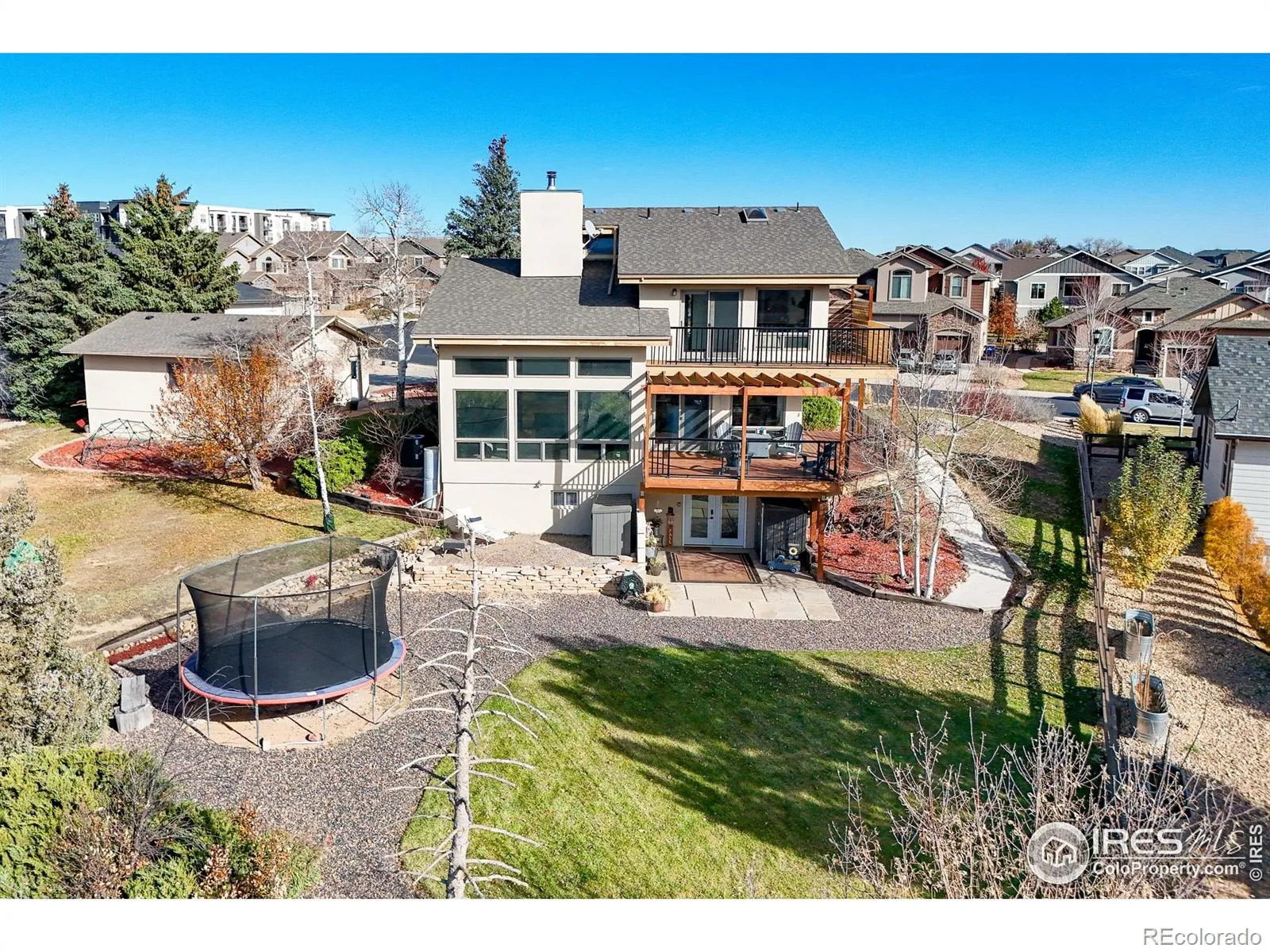 OPEN HOUSE SUN 11-2pm. Showings start SUN. Welcome home to 4388 Lemongrass Dr. in Johnstown. This stunning two-story home offers both style and flexibility with a fully finished walkout basement featuring a private 1 bed/1 bath apartment-perfect for rental income, in-law suite, multigenerational living, or guest accommodations. The main floor features an open-concept layout that seamlessly connects the living room, dining area, and kitchen. A beautiful wood-burning fireplace serves as the centerpiece of the living room, adding warmth and character, and the freshly painted white interior creates a bright, airy feel throughout, complemented by floor-to-ceiling windows that fill the home with natural light and showcase the surrounding views.. The eat-in kitchen boasts newly updated stained cabinets, stone countertops, and durable tile flooring, creating a stylish and functional hub for everyday living and entertaining. Upstairs, you’ll find three spacious bedrooms, including a primary suite, with mountain views, vaulted ceilings, a soaking tub and walk-in shower. The upstairs also boasts 2 additional bedrooms and full bath, as well as a “loft area, with it’s own views of the mountains. The ADU in the walkout basement includes a full kitchen with stainless steel appliances, concrete counters, eat in kitchen, large living, room, office/craft room, full bath, and large bedroom with stackable washer/dryer. Its private entrance offers convenience for tenants or extended family.Enjoy the outdoors on this over 1/2 acre lot, with a huge front porch, 2 wrap-around decks, and a lower patio. The panoramic mountain views, visiting owl, wild turkeys, and storms building over the mountains will have you sold on this home. Thompson Crossing is close to health care, shopping, trails, and more!! Ask our preferred lender about the 1 year rate buy down included for qualified buyers.