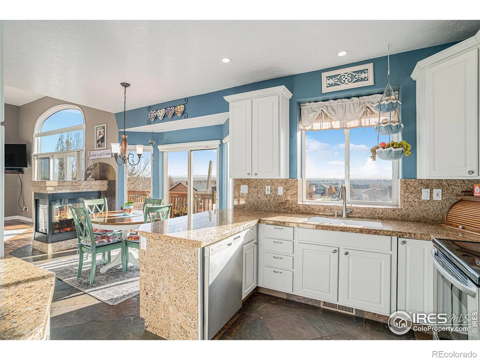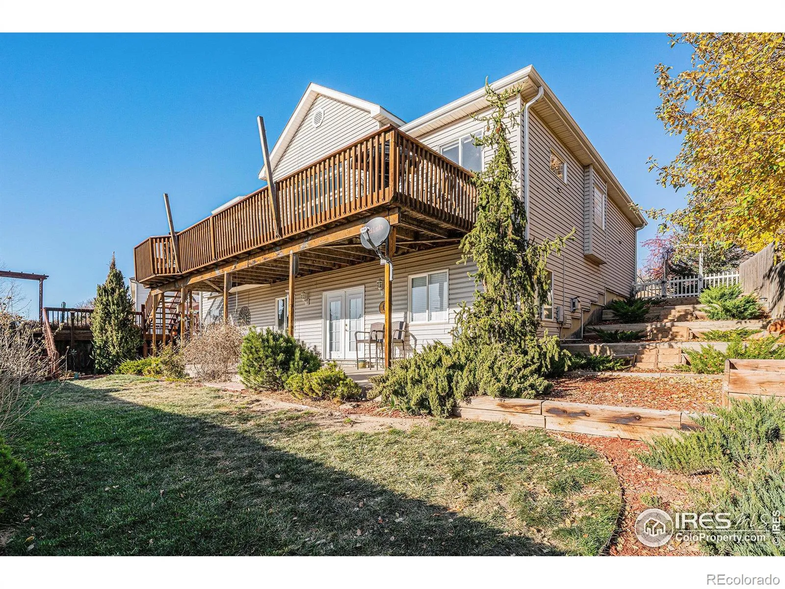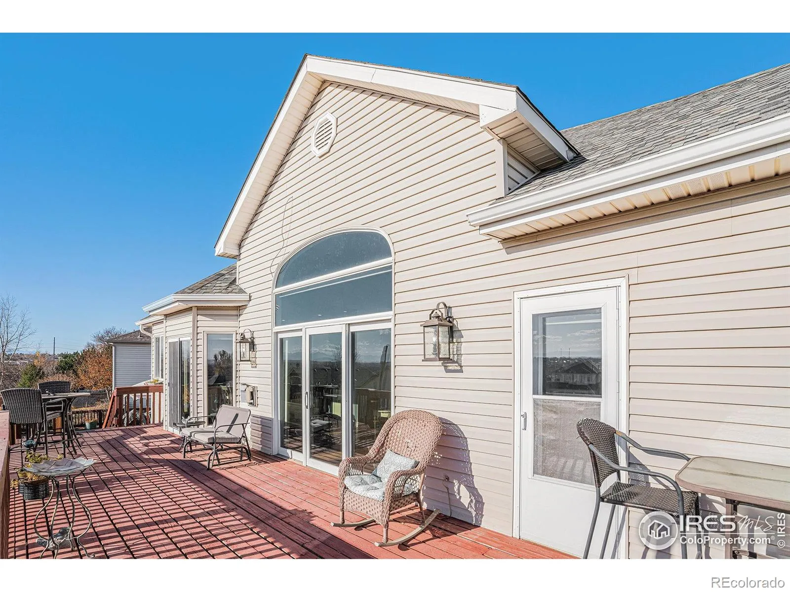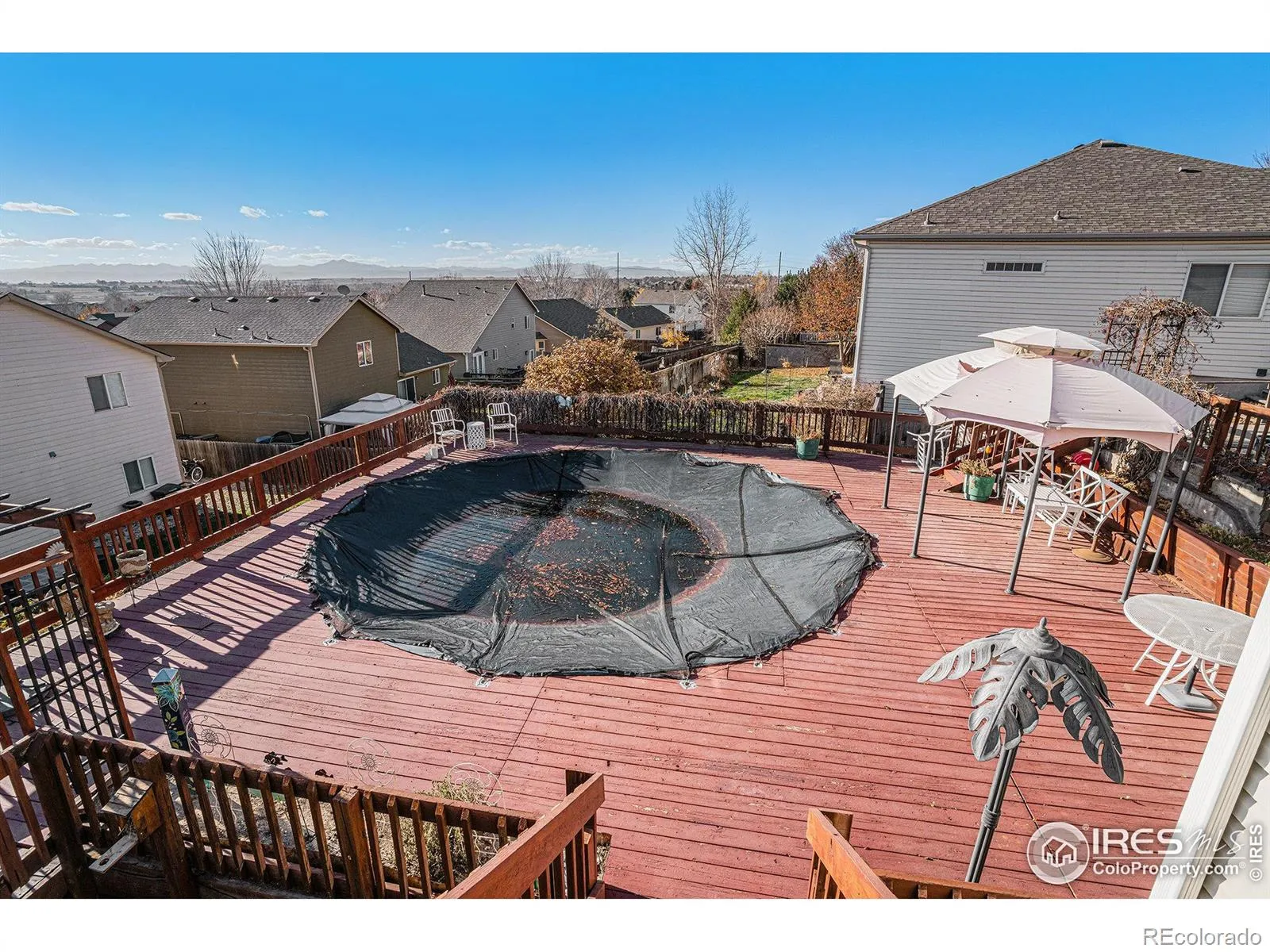 LARGE LOT, NO HOA AND 3 CAR GARAGE! Enjoy breathtaking South and West mountain views from this quality home on a large lot with NO HOA and oversized 3-car garage! The main level boasts 12-foot high ceilings, gorgeous Acai wood floors, and south-facing windows with 3M film that lets in natural light while reducing heat. The eat-in kitchen is a chef’s dream, featuring granite countertops, stainless steel appliances, slate floors, granite backsplash, and two pantries for plenty of storage. A cozy multi-sided fireplace connects the living area to the formal dining room, which features a two-toned cove ceiling and a convenient bar area – perfect for entertaining. The Owner’s suite offers a private door to the deck, a spacious walk-in closet, a jetted tub, and custom pleated sheer blinds that let in light while providing privacy. The large, bright laundry room also has fantastic views, a utility tub, and slate trim. The basement features 10-foot ceilings, a bedroom with a huge walk-in closet, a huge family room with a gas fireplace, and a large heated storage area. Plenty of space for entertaining with room for a bar, pool table included! French doors and large windows lead to the walk-out basement patio. Step outside to the expansive main-level deck that leads to a 24′ above-ground Copper Canyon pool with a surrounding deck and gazebo – perfect for relaxing or entertaining. No HOA, plenty of space for extra parking, and an oversized 3-car garage over 1,000 sq. ft. Recent updates include a new air conditioner and furnace humidifier and the pool liner is 3 years old. Ideal location near Highway 34 and Center Place Mall, enjoy convenient access to restaurants, banking, and major retailers – truly location, location, location!