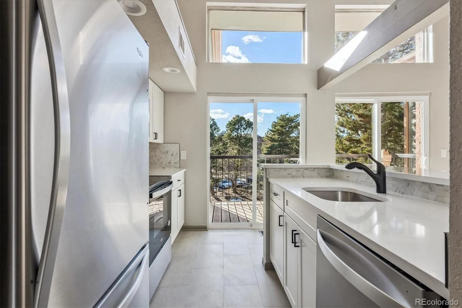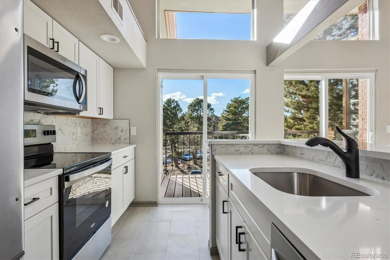 Step inside to an open, airy floor plan featuring brand-new LVP flooring, carpet, and tile throughout. The entire unit has been freshly painted, and the popcorn ceiling has been completely removed, giving the home a clean and contemporary feel. The stunning new kitchen is a showstopper—complete with brand-new cabinetry, stainless steel appliances, quartz countertops, and a stylish tile backsplash. Whether you love to cook or simply enjoy a gorgeous space, this kitchen delivers. The fully renovated bathroom offers spa-like finishes, including a new tile shower enclosure, tile flooring, modern vanity, and updated fixtures. Every detail has been carefully selected to provide both comfort and style. Natural light fills the living area, enhanced by vaulted ceilings and skylights, new lighting throughout, and brand-new patio doors leading to a large west-facing deck. Enjoy peaceful evenings taking in the mountain views and Colorado sunsets right from your own outdoor space. Located in one of Littleton’s most convenient and desirable areas, this home features a low HOA and unbeatable walkability. The new Sprouts, Whole Foods, Southwest Plaza Mall, REI, restaurants, and countless shops are all just steps away. Situated on the west side of Denver, you’ll have quick access to the mountains for weekend getaways, while major highways make it easy to reach downtown Denver in about 20 minutes. With everything brand new and an exceptional location, this condo is an opportunity you won’t want to miss—homes like this don’t last long!