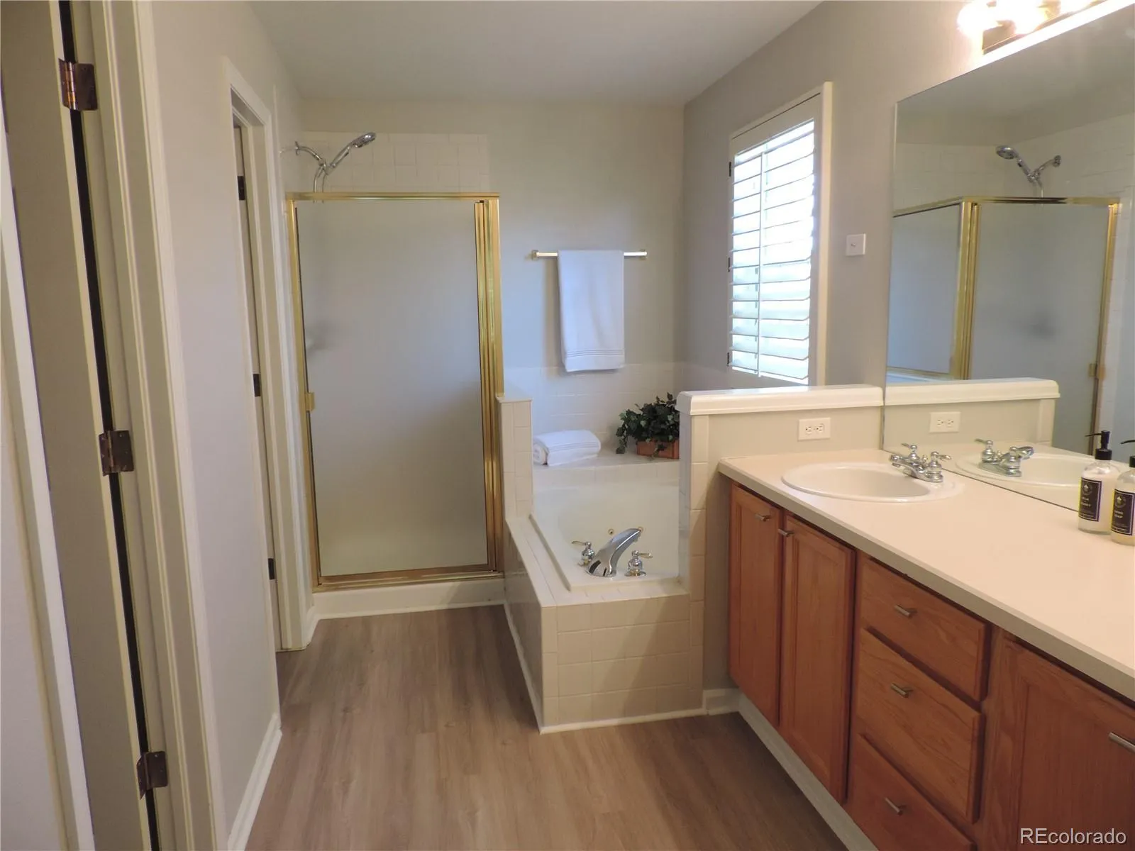 This beautifully maintained & ideally located townhome in Settlers Village. With only one shared wall & a serene position siding to a lush greenbelt, this home offers exceptional privacy & a peaceful, picturesque setting with mature trees, shrubs, & well-kept landscaping. This spacious two-story residence shows true pride of ownership throughout. Major mechanicals—including the furnace, A/C, & hot water heater were recently replaced. Fresh interior paint covers the walls, trim, and doors, & new carpet has been installed on the staircase, upper-level bedrooms, & loft. The main level features hardwood flooring, granite kitchen counters, an inlaid sink, ample cabinetry, pantry, & all appliances included. The large laundry room & convenient half bath add to the functionality. The living room impresses with its soaring ceiling, abundant natural sunlight, plantation shutters & a cozy gas fireplace with a handsome mantel. The main-floor den, complete with French doors & an elegant transom window, offers a perfect space for an office or reading room. Upstairs, the expansive primary suite features vaulted ceilings, a walk-in closet that flows into the luxurious 5-piece bath—complete with a second walk-in closet, jetted tub, & new plank-style flooring. A spacious secondary bedroom & a versatile loft area provide ideal space for reading, relaxing, or working from home. An 825 sq. ft. unfinished basement is ready for your personal touch, whether you choose to expand your living space or use it for exceptional storage. Settlers Village offers one of the most desirable settings in the area—quiet, beautifully landscaped, & steps from walking paths. The community is also conveniently close to shopping, dining, banking, hospitals, & the post office. The homes’ outdoor spaces include charming awnings over the 2 patios and peaceful areas to relax among mature trees. A truly exceptional home in one of the best locations in the complex—don’t miss your chance to see it!
