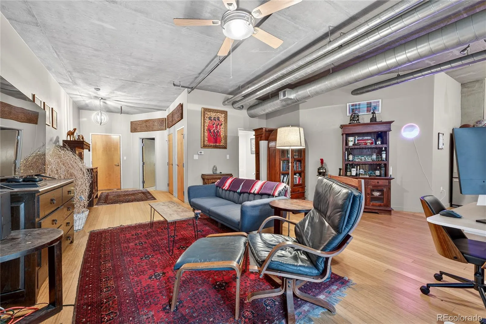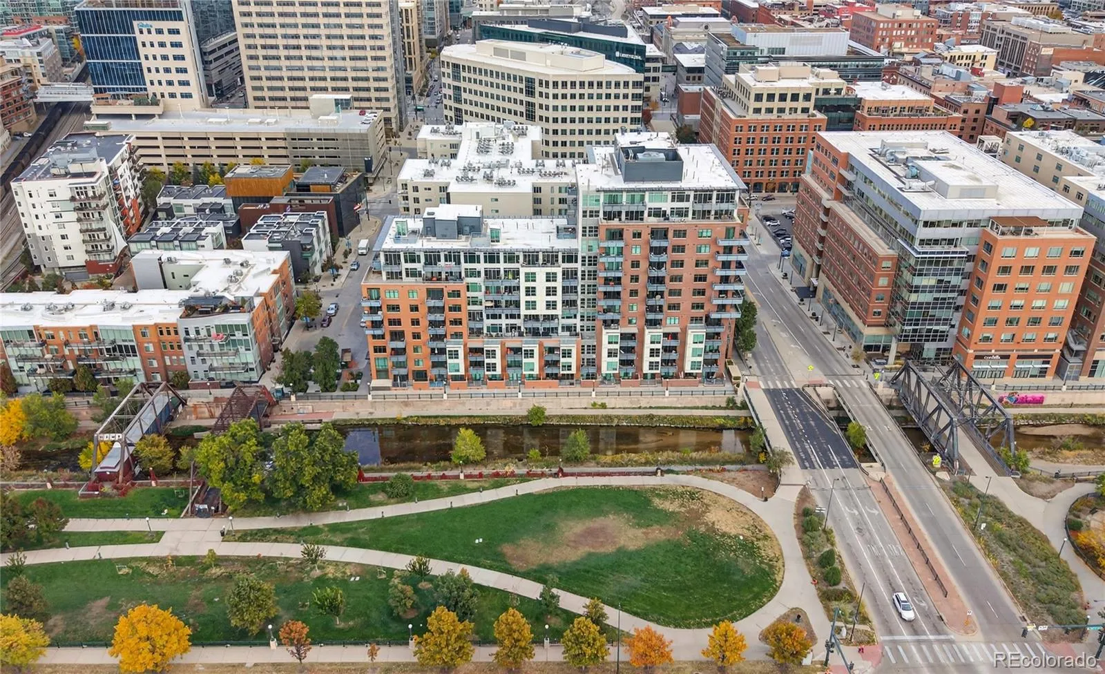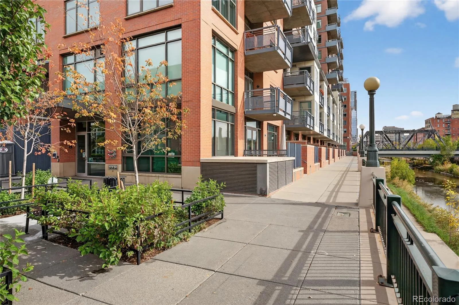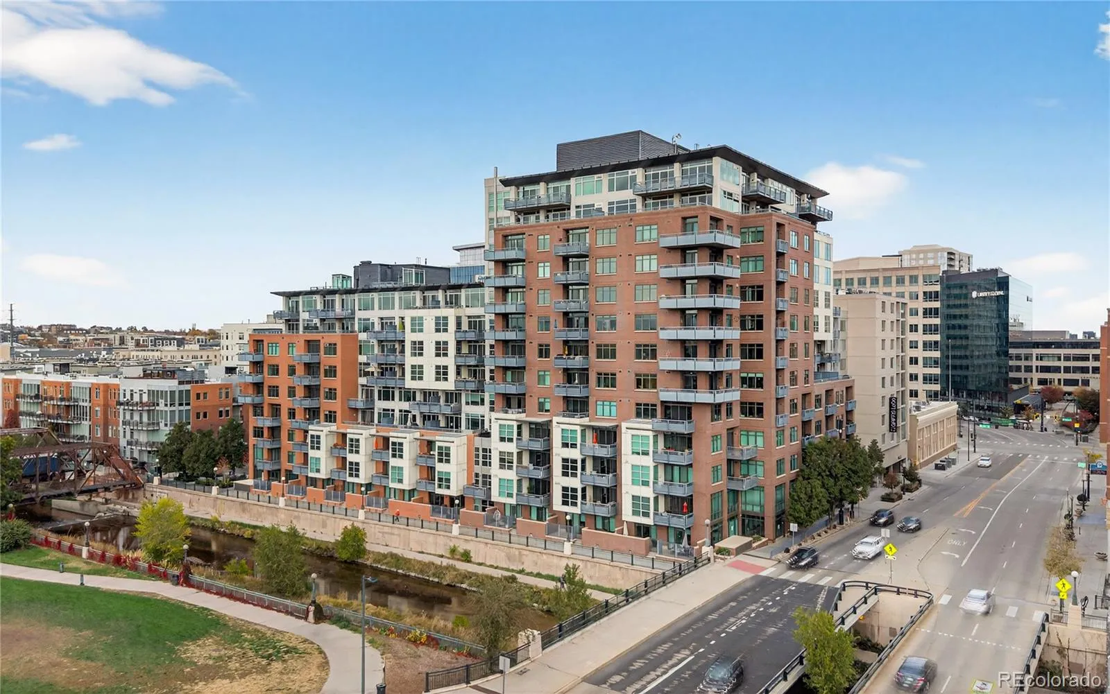 Denver city living at its finest in the highly desirable Waterside Lofts—where modern style meets the best of urban convenience. This all-concrete-and-steel building offers the perfect balance of sophistication, comfort, and durability, ideal for both entertaining and quiet relaxation. Industrial-inspired design features include exposed air ducts, piping, and concrete ceilings, complemented by sleek hardwood floors. The expansive living area is highlighted by oversized windows and a door leading to a private balcony, filling the space with natural light and offering a seamless indoor-outdoor flow. The modern eat-in kitchen is a true centerpiece, featuring granite countertops, a center island with built-in bar-height seating, and a large window for added light. All appliances have been replaced with high-quality stainless steel or reliable upgraded models, ensuring both style and function. Each of the two spacious bedrooms offers plenty of storage, while the primary has a private en-suite bath.The in-unit laundry adds to the effortless lifestyle this home delivers. Waterside Lofts is known for its active community and responsibly managed HOA, complete with a social committee and top-tier amenities including a 24-hour front desk concierge and a state-of-the-art fitness center. Two reserved, secure garage parking spaces add peace of mind. Step outside to the Cherry Creek bike path and enjoy easy access to REI, shops, and dining. Walk to Coors Field, Ball Arena, Whole Foods, 16th Street Mall, and some of Denver’s finest restaurants and nightlife—this is true downtown living at its best.