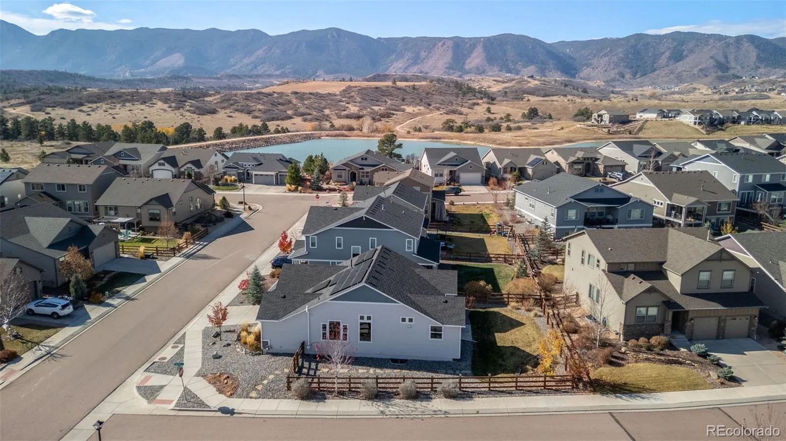 Welcome to your next chapter in the Forest Lakes community of Monument, where mountain views, modern comfort and smart living converge. This thoughtfully built 2018 residence showcases a generous first-floor primary suite for ease and elegance, alongside an office nook/flex area and a guest bedroom and bath—perfect for welcoming visiting friends or creating a dedicated workspace. Downstairs, an open rec room invites gatherings and offers two additional bedrooms and a full bath. Added bonus: a full unfinished space ready to become a fifth bedroom and another full bath when you’re ready. Outdoors, the expansive backyard delivers striking mountain panoramas and is enhanced by fully paid-off solar panels and an easy-to-transfer home warranty—giving you long-term peace of mind and lower operating costs. The robust 7.72 kW solar system, equipped with Enphase microinverters and a hardwired level-2 EV charger, provides exceptional energy efficiency—producing enough power to cover most household needs (and even charge an electric vehicle) while keeping utility costs remarkably low.