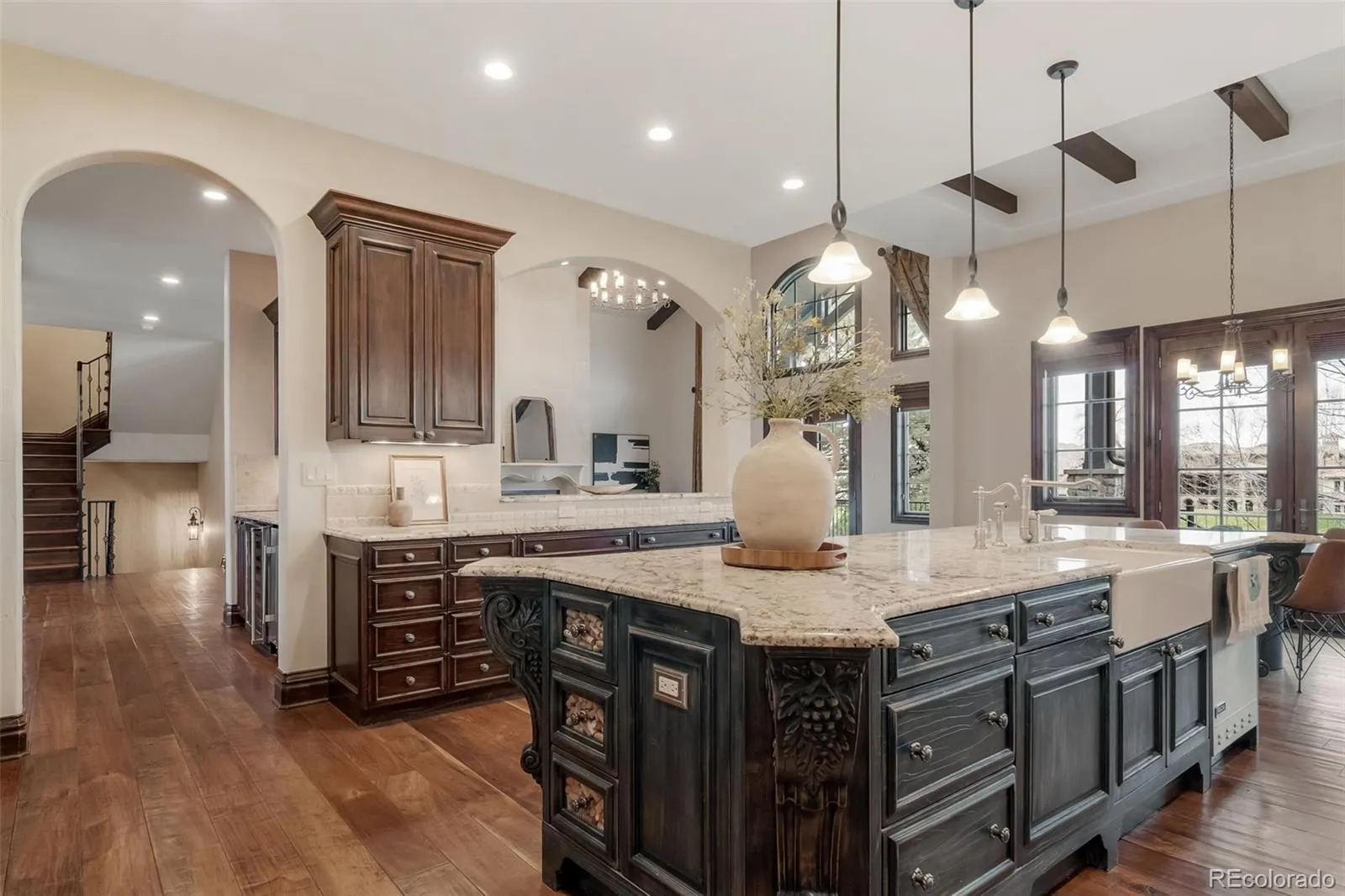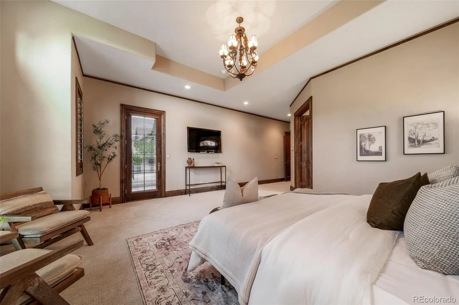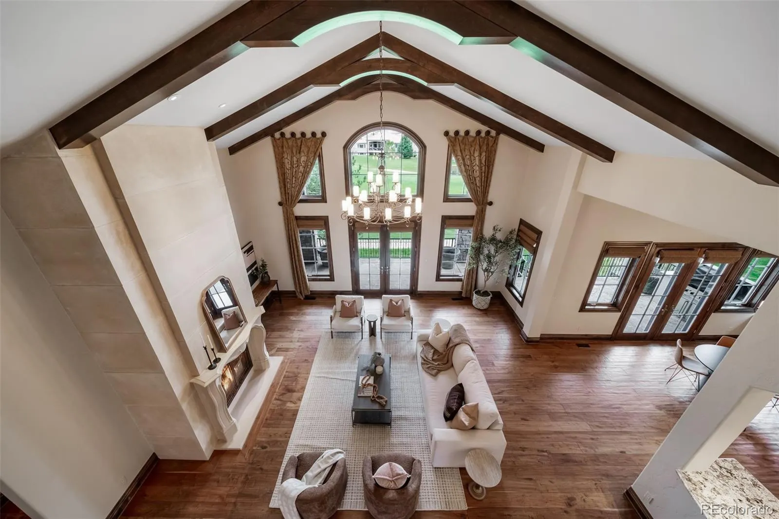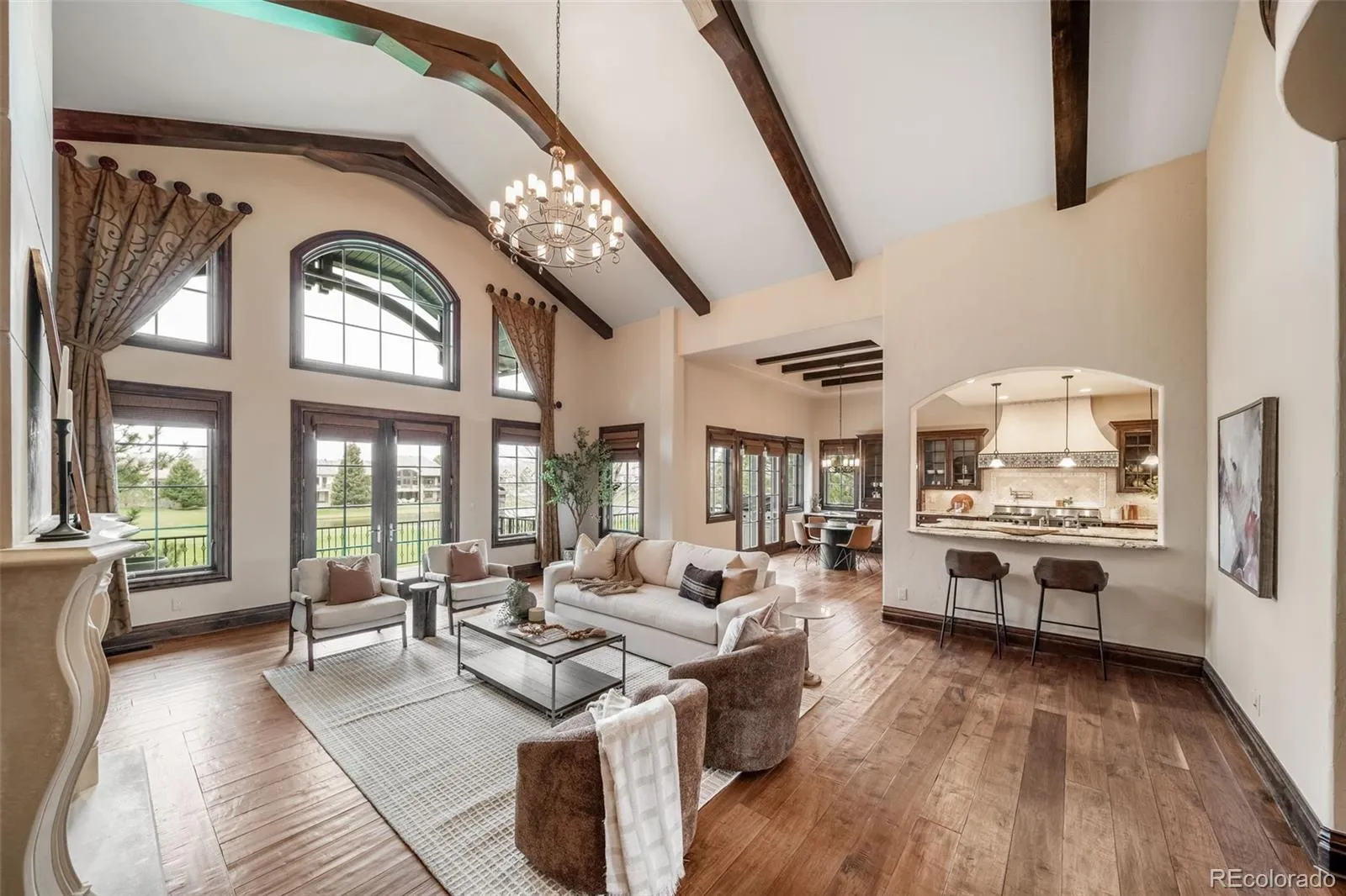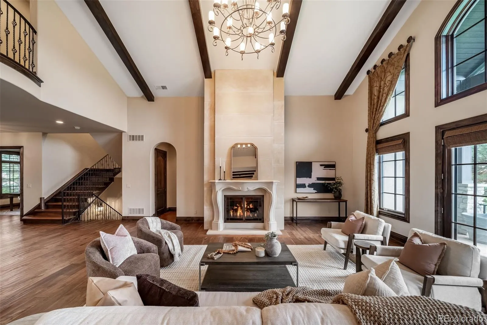 For the Most Discerning buyer seeking Unmatched Elegance, Convenience, and Colorado lifestyle, this Extraordinary Estate Home nestled within the Pristine Fairways of Cherry Creek Country Club delivers an Uncompromising blend of Luxury and Timeless Design. The Effortless Flow of the home is felt immediately upon entry, where Expansive Windows invite Abundant Natural Light and frame Serene Views of the golf course and lush surroundings. At the heart of the main level is a Majestic Great Room adorned with Vaulted, Beamed Ceilings, creating a warm yet impressive centerpiece for daily living and entertaining. The chef’s kitchen is a dream, equipped with high-end Viking appliances, generous prep areas, a large island, and seamless connection to the dining spaces. A well appointed Butler’s Pass with wine fridge enhances the home’s effortless capabilities. The coveted Main Floor Primary Suite offers refined finishes with spa qualities and Steam Shower, while a Sophisticated Study/Library provides added space for work or reading. Outdoor living is showcased with an expansive upper terrace with unforgettable Colorado sunsets. The Walkout Basement Family Room expands the living experience with a full wet bar featuring a Mini Viking Refrigerator and Dishwasher. Just outside, a covered patio invites year-round enjoyment and connects gracefully to the upper level through a striking spiral staircase, enhancing the harmonious flow between indoor and outdoor living. Additional comforts include a Heated Driveway, Three car garage plus dedicated Golf Cart Bay, as well as 943 square feet of extra storage. Living in Cherry Creek Country Club provides a resort-style experience with private club membership (available separately), granting access to the Jack Nicklaus Signature golf course, dining, fitness, spa, tennis, pickleball, and a 24-hr gated entrance. This Exceptional Property embodies refined living at every turn.