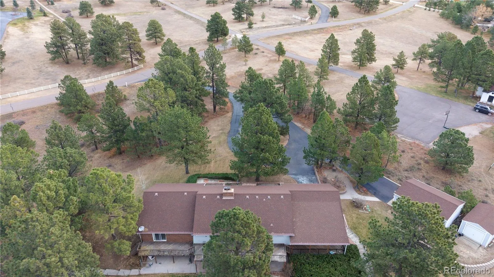 Mountain Views, Pine Trees & Pure Colorado Living*Welcome to your own slice of paradise—4.76 acres of pine-draped serenity with stunning mountain views, all tucked into the coveted Parker View Estates. Yes, you get both: breathtaking vistas and towering trees, just minutes from town. This home is ready for a new owner with fresh ideas and a touch of remodel. Update as much—or as little—as you’d like. With breathtaking vistas, towering trees, and plenty of space for hobbies, gatherings, or quiet moments, this property delivers the true Colorado lifestyle. *Easy Access*Cruise in on paved roads and pull into your private asphalt driveway. The spacious 2124 sq ft main floor is complemented by a fully finished walkout basement—perfect for entertaining, relaxing, or creating your dream space.*Room for All Your Toys*An oversized attached garage (648 sq ft) gives you plenty of elbow room, plus there’s a detached 2-car garage and a bonus 1-car storage garage. Whether you’re a hobbyist, collector, or just love extra space, this setup delivers.*Cozy Comfort All Year Round*Stay toasty with hot water baseboard heat and snuggle up beside not one, but two wood-burning fireplaces. Winter nights just got a whole lot cozier.*Wake Up to Views*The primary bedroom features a large glass slider that opens to sweeping views—imagine sipping coffee while watching the sunrise over the pines.*Live the Acreage Dream*No Metro District. Well & Septic. Unincorporated Douglas County. This is your chance to embrace the freedom and tranquility of close-in country living without sacrificing convenience*Make this home your own*Update as much or as little as you’d like.
