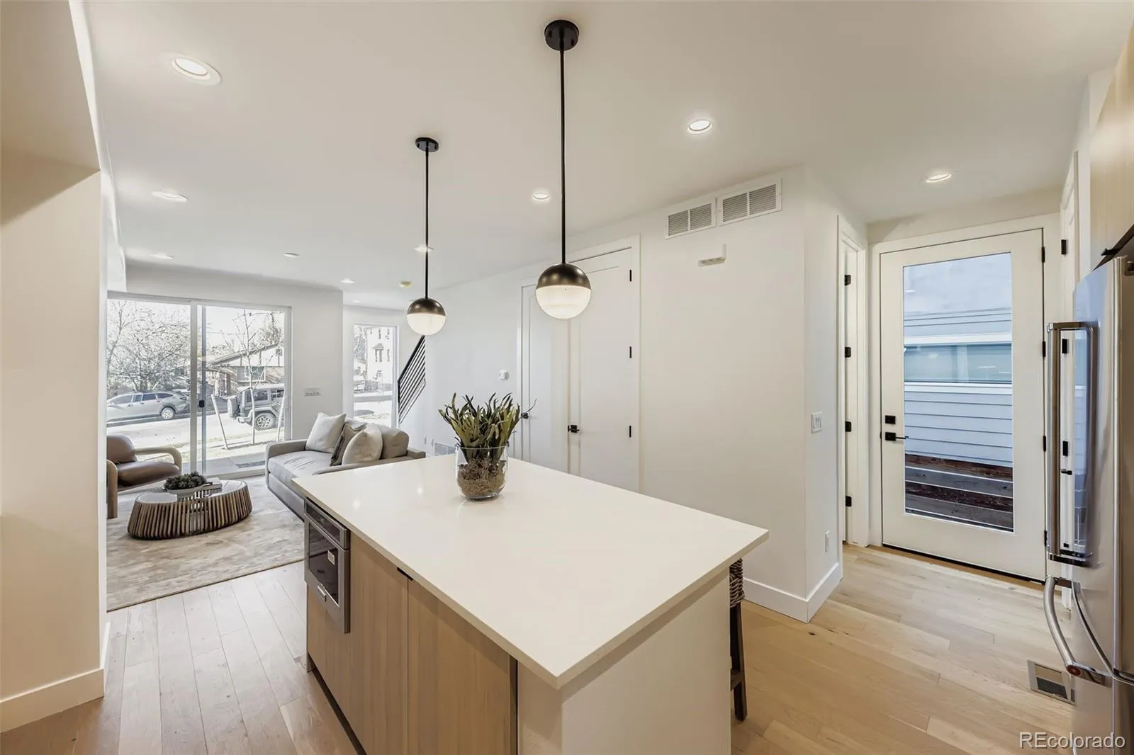 New Construction Sloans Lake front unit 1/2 duplex on a cul-de-sac facing west with Mountain View’s! Main floor has open floor plan with gas range, large open concept kitchen oversized island and a pantry with a family room. Second floor has laundry, two primary suites and a covered patio. The third floor has a bedroom, large family room with wet bar and covered patio. Perfect walkable location just three blocks to: Starbucks, Alamo Drafthouse, Stoney’s, Odell’s and Patio Restaurant on Sloans Lake!