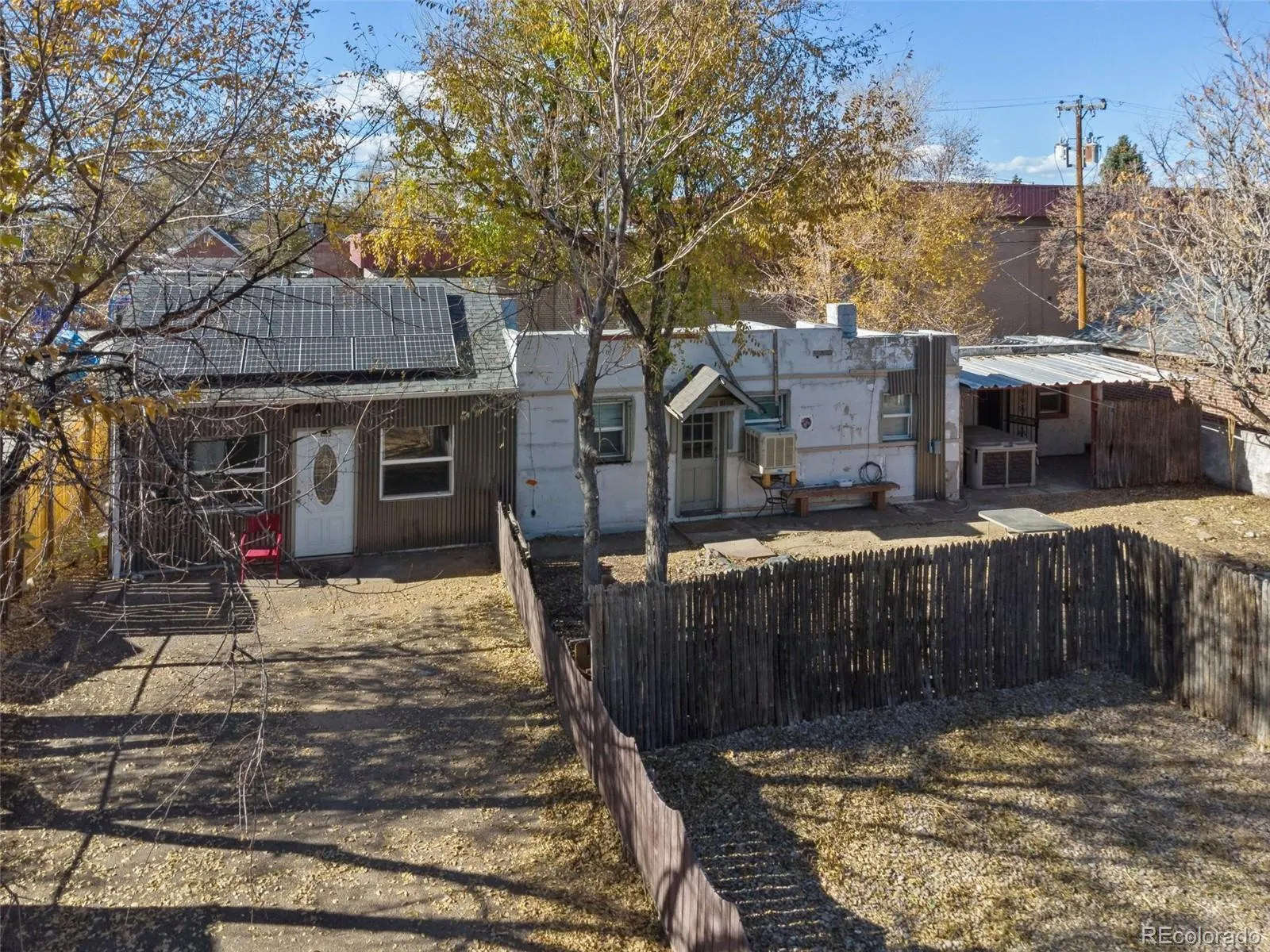 The main home includes 786 sq ft with 1 bedroom and 1 bathroom, ready for a thoughtful renovation or creative reimagining. Both homes sit on a generous 0.22 acre lot with a fully fenced yard, mature trees, and plenty of outdoor space to shape into something special. The oversized driveway easily fits multiple vehicles and includes room for RV parking. Leased solar panels offer an additional efficiency boost.
