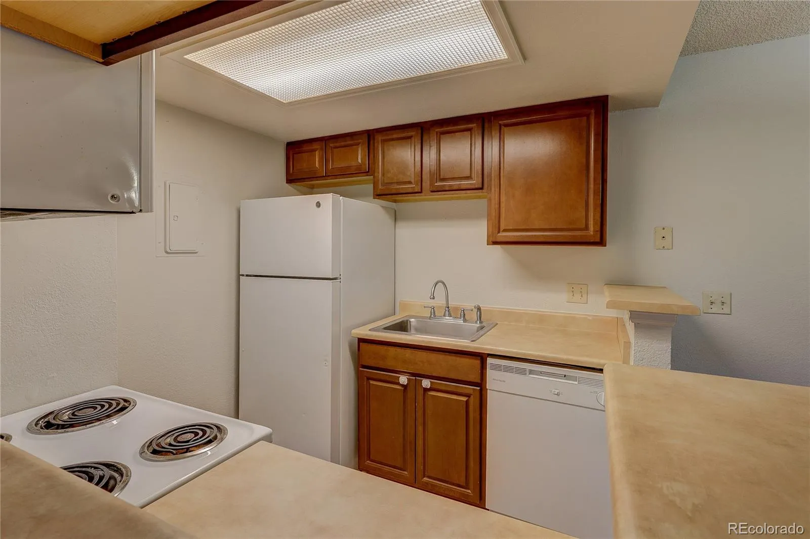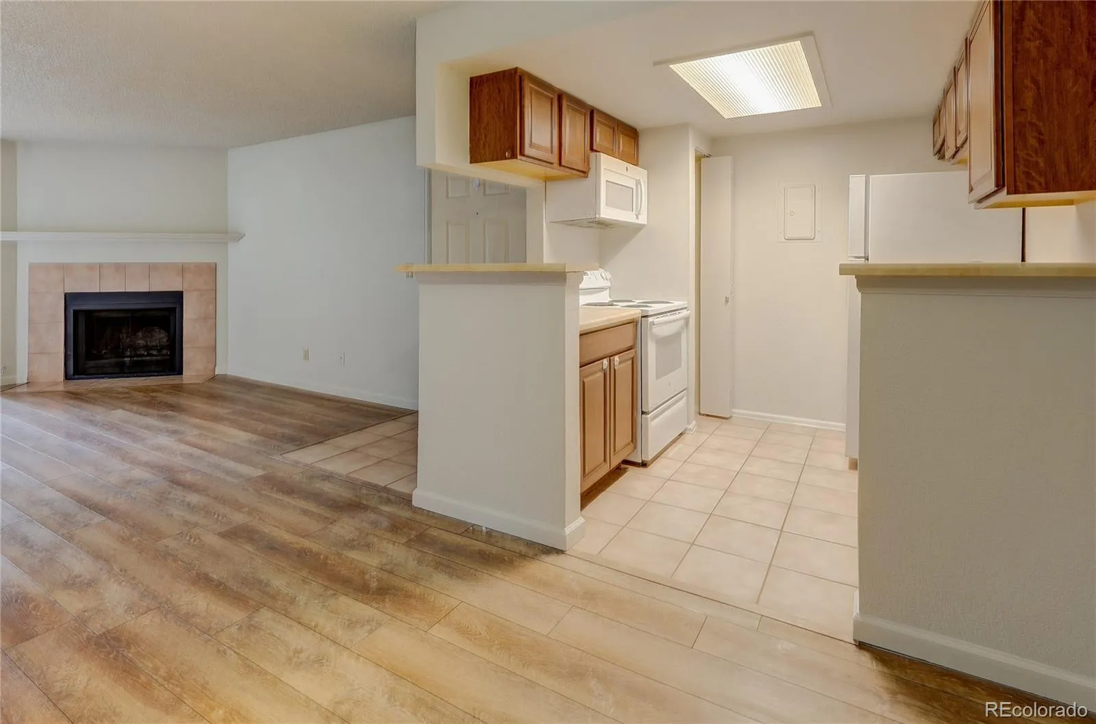 The perfect combination of features, location and price. This two bed two bath first floor condo includes: primary bedroom with an en suite bathroom, secondary bedroom with a bath across the hallway, full size washer/dryer, laminate floors, open kitchen, wood burning fireplace and large patio. The Peakview Pointe condos feature a large pool, large shade trees and plenty of parking. Conveniently located near Arapahoe Road and Interstate 25 this home is close to shopping and great restaurants. This home is move in ready and priced to sell!