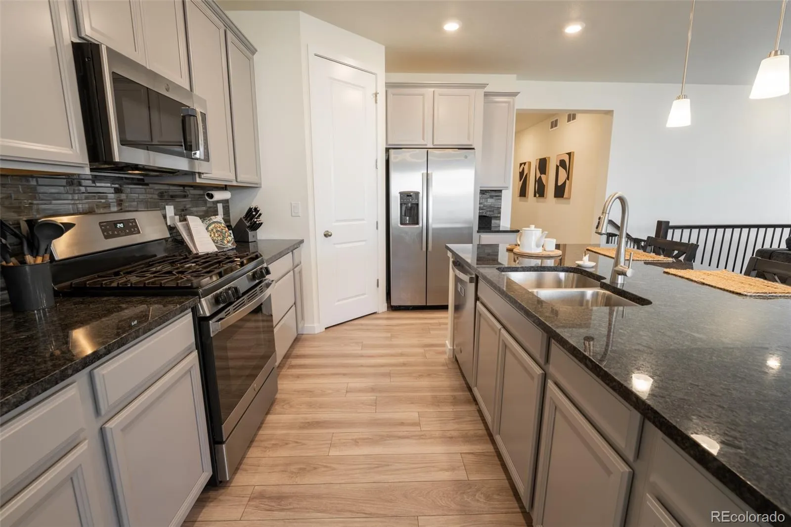 Welcome home to this ranch-style home in the Waterstone subdivision of Murphy Creek. This charming home features a spacious open floor plan with a large living room, dining area, and a well-appointed kitchen, ample cabinet and counter space, island, and pantry…perfect for entertaining. The generous primary oasis includes an en-suite bath with dual sinks, separate water closet, and a large walk-in closet. Two additional spacious guest bedrooms, a guest bath, and main floor laundry add convenience. Full unfinished basement with egress windows, rough-in for an additional bathroom, and a finished studio/office/gym space (not included in finished square feet). Enjoy Colorado living on the covered front porch or relax on the covered back deck. Roof was replaced this year and there is a transferrable warranty. (Impact Resistant Class 4 shingles used…this will help reduce your insurance costs).
