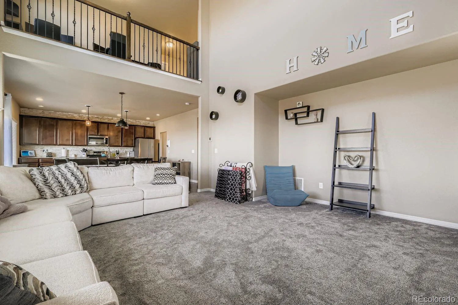 Step inside to find soaring ceilings that fill the main living area with natural light, creating an open and inviting atmosphere. A beautiful office or library overlooks the living room, ideal for working from home or quiet reading time.