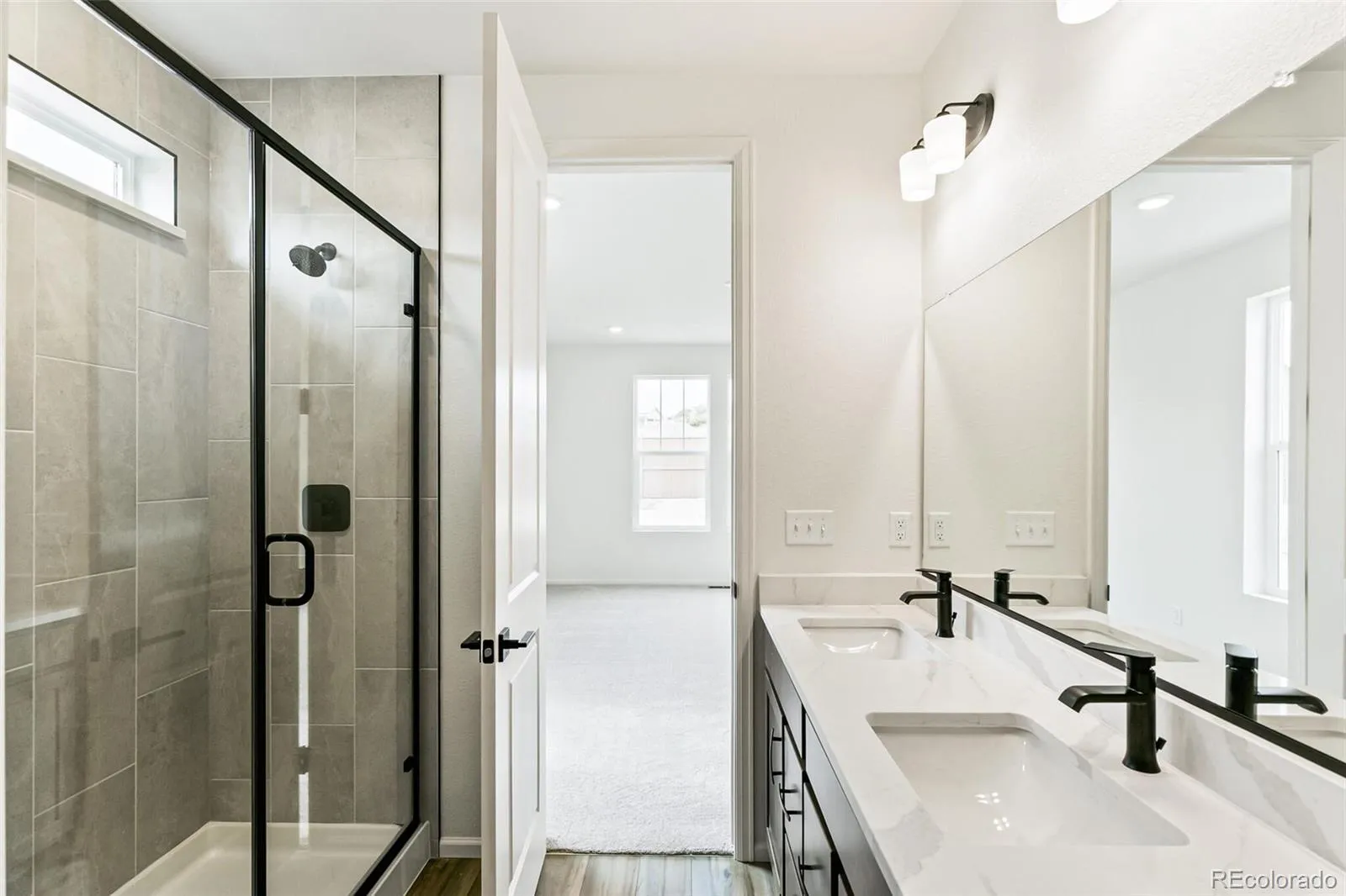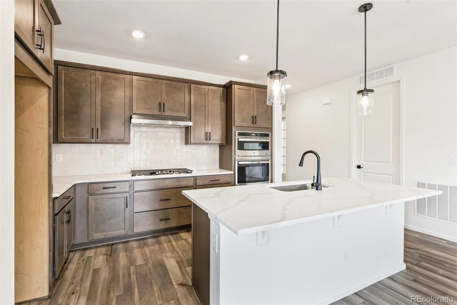 This spacious great room for friends and family gatherings as you are able to walk directly out to the oversized covered deck which is an extension of living space. Walk to the lower level where you have a partial unfinished basement with blank canvas to use as you wish. The stylish kitchen boasts of a large island, 42-in. Timberlake Barnett Latte-stained maple upper cabinets, Callcatta Idillio Quartz counter tops and stainless-steel GE appliances, including a Gourmet Kitchen. This beautiful kitchen is accented with Daltile 4 by 4 Zellige Neo backsplash. On the main floor the primary suite showcases large walk-in closet, and a connecting spacious primary bathroom with a large linen closet, oversized dual sink and a sit-down shower. Welcome home as it is both nature and city, work and play, adventure, and leisure. Nature is right out your door. You can enjoy walking and hiking trails that wind through the entire community. If you just want to sit and relax, within walking distance is the Swim Club/pool. The Swim Club (Clubhouse ) is a warm gathering space, big screen TV, and fireplace. Terrain also offers the Dog Bone Park where you can unleash your 4-legged family members and let them run free. Also enjoy Wrangler Park with tennis courts, a picnic pavilion, playgrounds, and play fields. Centrally located on the plateau is Ravenwood Park with spectacular views, playground, and a long in-ground slide. The Listing Team represents builder/seller as a Transaction Broker.