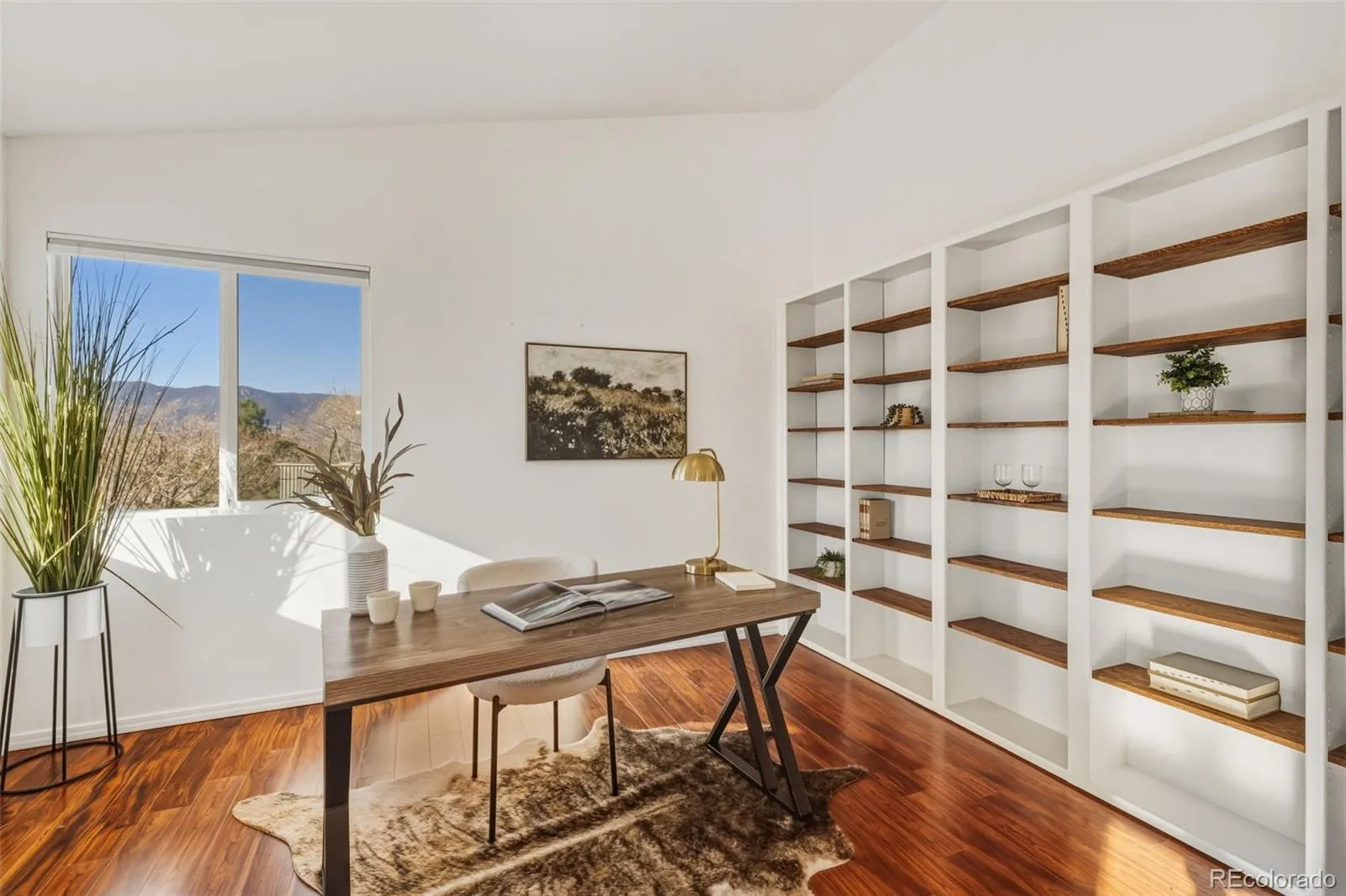 Discover this updated, move-in ready rancher in the highly sought-after Jackson Creek community in Monument. This fantastic 3-bedroom, 3-bath home with a heated 3-car garage is ready for immediate enjoyment! The main level features a spacious primary suite with vaulted ceilings, a bay window that fills the room with natural light, a walk-in closet, and an attached 4-piece bath. The eat-in kitchen offers granite countertops, a stainless steel refrigerator, gas cooktop, breakfast bar and easy access to both the formal dining room and the generous living room. Perfect for entertaining, the living room includes a gas fireplace and opens to a wood deck showcasing sweeping views of Pikes Peak and the Air Force Academy along the Front Range. A dedicated main-level office with hardwood flooring provides an inspiring workspace, complete with a wall of built-in bookshelves and charming corner windows framing stunning mountain views. A convenient laundry room and half bath complete the main floor. The finished basement expands your living space with a large family room and walk-out access to the fully-fenced backyard, along with two additional bedrooms and a full bathroom—ideal for guests or multigenerational living. The 3-car garage offers exceptional convenience with a service door, gas heater, and two automatic openers. A quiet cul-de-sac park sits just across the street, and the home’s prime location places you close to schools, shopping, hiking trails, and I-25. This lovely residence is ready to welcome you home to your next chapter.