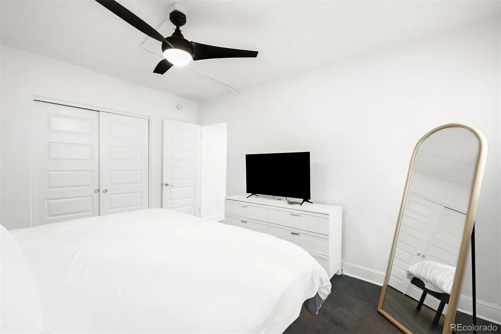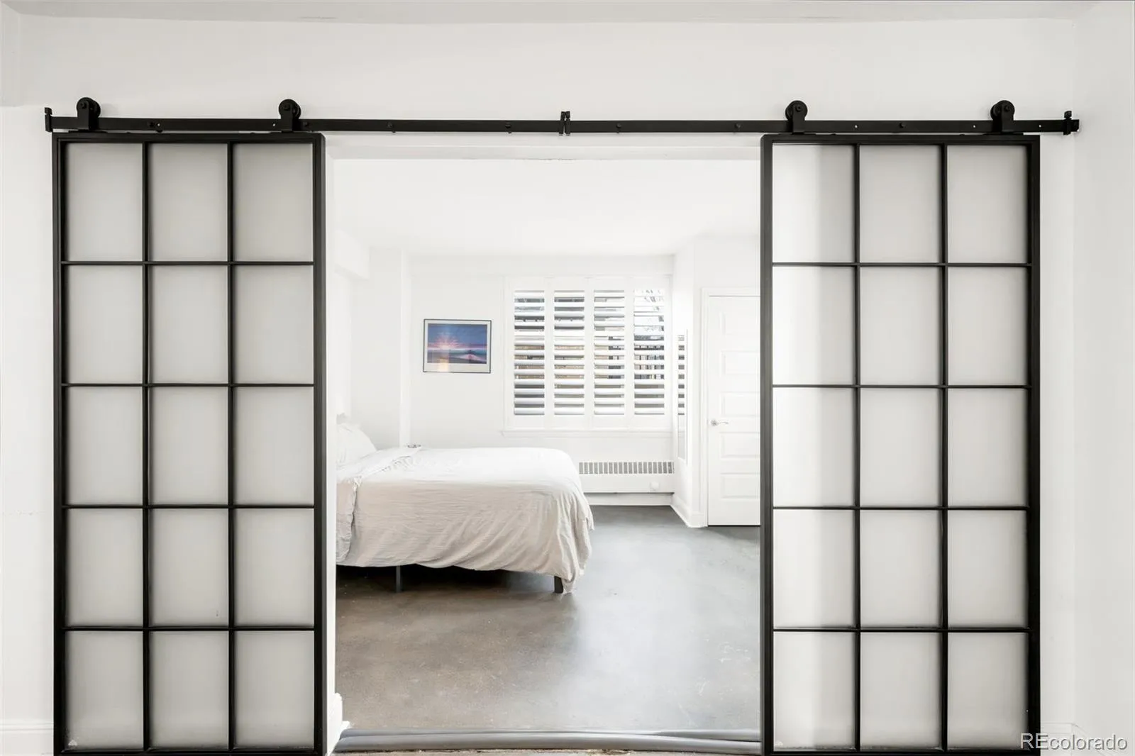 Unbeatable location just blocks from Wash Park! This charming condo offers its own private entrance and address, creating a quiet, convenient, and tucked-away feel. The open layout features polished concrete floors, plantation shutters, and stylish lighting throughout. The kitchen has been beautifully updated with white shaker cabinets, quartz countertops, stainless steel appliances, subway tile backsplash, an oversized apron sink, and a large designer pantry. Enjoy your morning coffee or evening cocktail at the custom-built dry bar with quartz counters, glass shelving, and tile detail. The spacious primary bedroom is the perfect retreat, and the fully renovated bath feels like a spa with Carrara marble, double sinks, tilt mirrors, and a rain shower head. A second bedroom with sliding barn doors and built-in bookshelves is ideal for an office, guest room, or workout space. Climate-controlled storage included, and parking available for lease through the HOA. Walk to Wash Park, Cherry Creek, shops, and restaurants — the best of Denver living right at your doorstep.