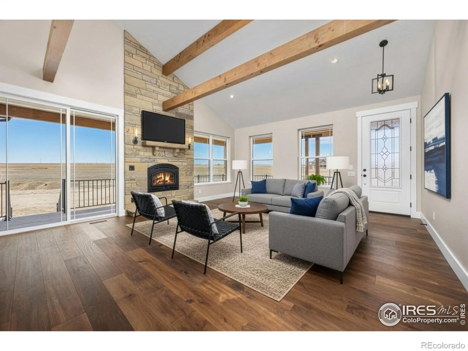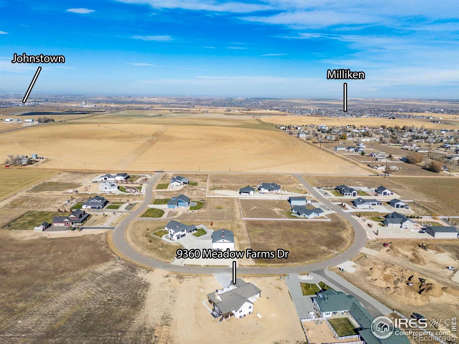 Experience Luxurious Living in this Custom Retreat! Nestled on 1.57 private acres between Milliken and Johnstown, this high-end custom home offers an unparalleled blend of elegance, versatility, and breathtaking mountain views. Whether you’re relaxing indoors or enjoying the expansive decks, the stunning scenery provides a picturesque backdrop to your daily life. Step inside the thoughtfully designed main level, an entertainer’s paradise. The expansive open-concept kitchen boasts premium appliances and a walk-in pantry with generous prep space, seamlessly flowing into the vaulted family room and a formal dining area. Two covered decks, including one that wraps around from the front to the west side, offer ideal spaces for relaxing or hosting gatherings in any weather. This exceptional home features 5 spacious bedrooms and 4.5 bathrooms. The main floor master suite is a private sanctuary, complete with a perfectly planned bathroom featuring a large walk-in shower with body sprays and a rain head, an elegant soaking tub, and a generous oversized closet. Two additional main floor bedrooms share a convenient Jack and Jill bathroom with a double vanity. The fully finished basement is a true highlight, offering its own separate entrance. It includes two more bedrooms and two bathrooms (one of which is a private suite), a kitchenette, additional laundry hookups, and a private living area. This versatile space is perfect for multigenerational living or comfortable guest accommodations. For ultimate entertainment, the dedicated media room is ready for immersive viewing experiences on your very own 120-inch screen with surround sound. You’ll love the 4-car garage featuring two pass-through bays. This ample space is perfect for storing all your vehicles and toys, or for opening up to the backyard to create additional entertaining areas. This one-of-a-kind property with stunning mountain views in a setting you’ll never want to leave.