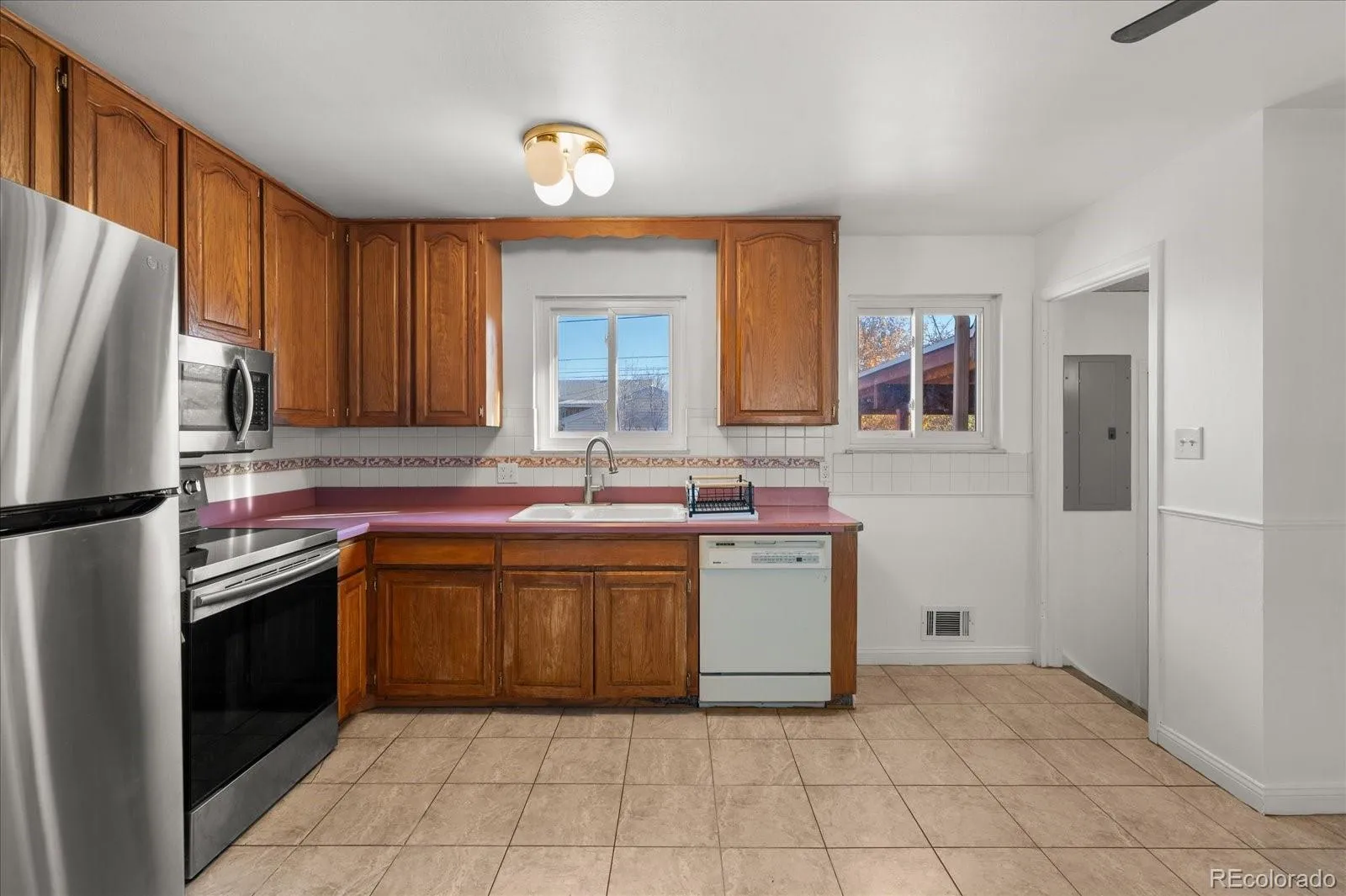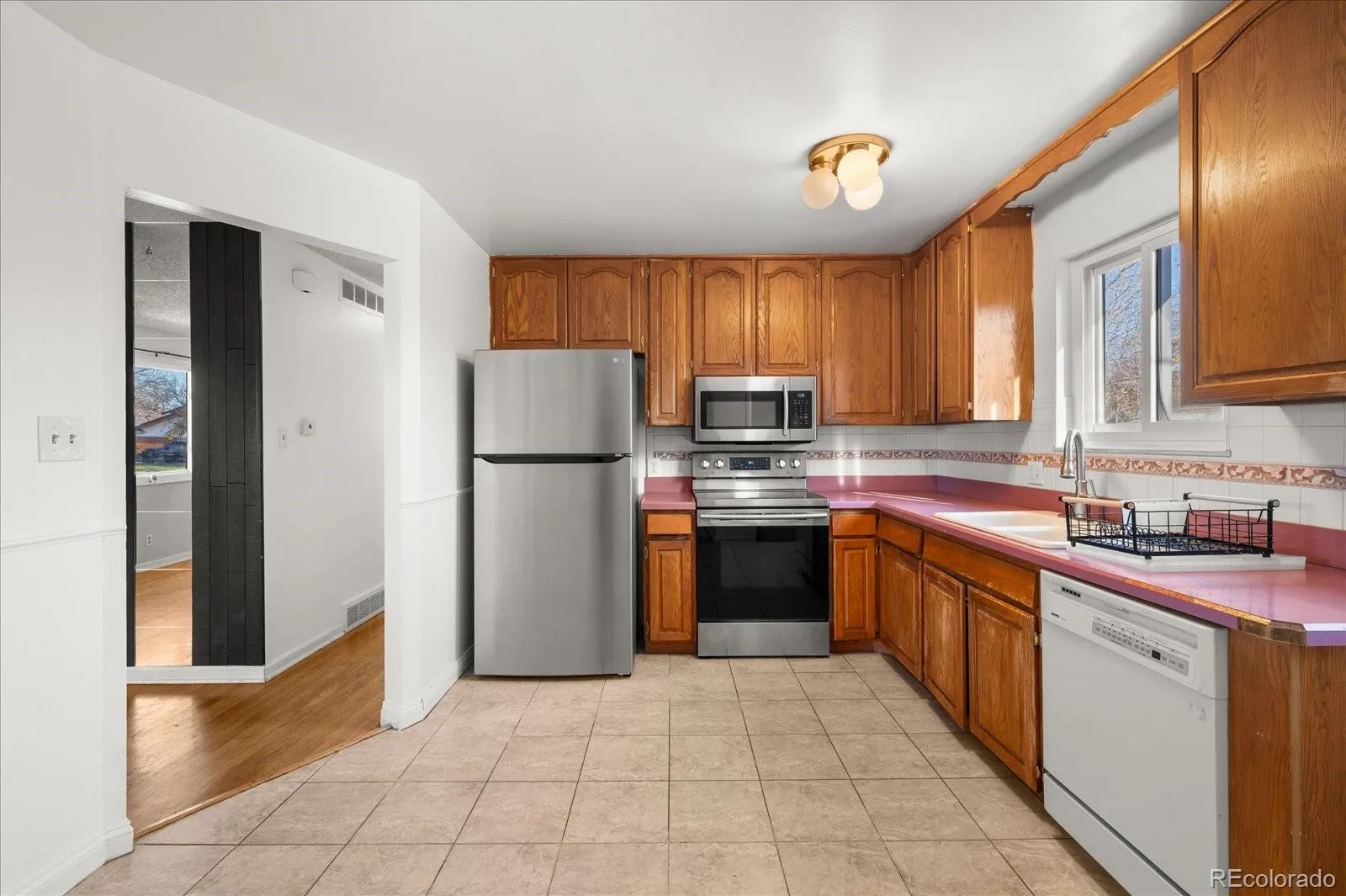 Fantastic first-time buyer opportunity in Northglenn! This updated brick ranch features fresh main-level paint, an oversized 1-car garage, and an upgraded kitchen with 42″ cabinets, stainless appliances (all <1 year old), and a new sink/faucet. Main floor offers 3 bedrooms with a Jack-and-Jill bath to the primary, plus a new furnace for worry-free living. Enjoy a spacious backyard with a covered deck, storage shed, garden area, and grape vines. Major upgrades include a new sewer line and updated electrical throughout. Fantastic location—1 mile from the N Line 112th Station, steps from E.B. Rains Jr. Park/Webster Lake, close to the Northglenn Rec Center, near Boondocks Food & Fun, minutes to Croke Reservoir, and surrounded by great local dining and community amenities. Easy access to highways to Denver, Boulder, Longmont, and Fort Collins.
