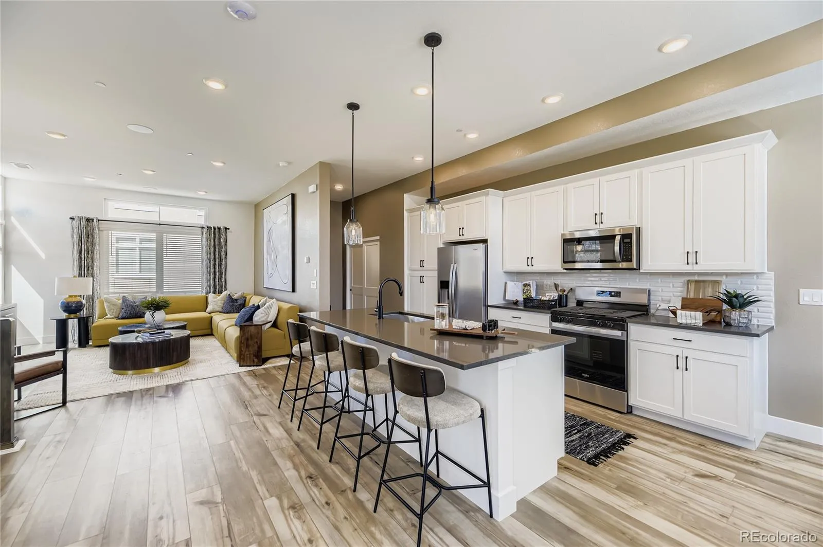 On the second floor, the separate-yet-open dining, kitchen, and living areas flow together beautifully and practically beg for entertaining (a surprise party, perhaps). Upstairs, the third floor features a spacious owner’s retreat, two additional bedrooms, and a super-convenient laundry room all on the same level.