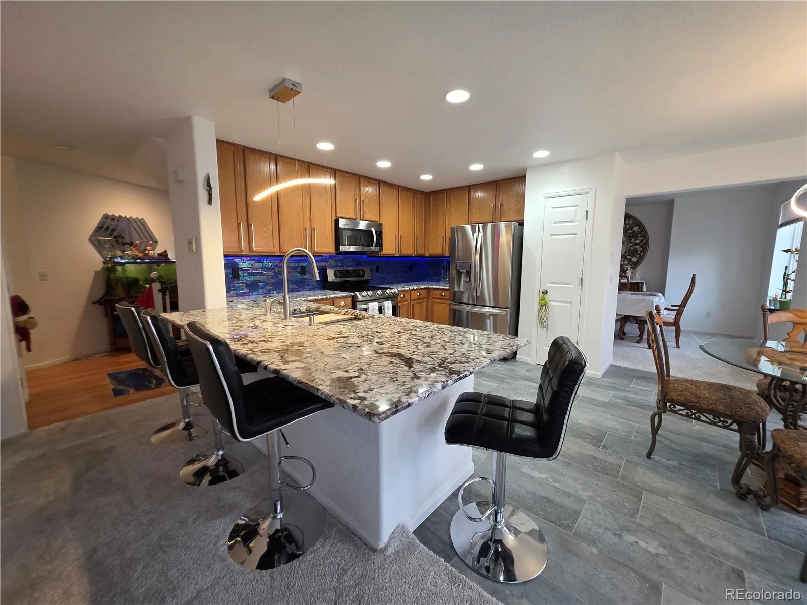 Pride of ownership shows in this one owner home that has been completely updated and UPGRADED. Home has new carpet, high end tile in kitchen and bathrooms, new lighting, granite countertops, and much more. Family room features an entertainment center, gas fireplace and French doors to the back deck. Home borders a community park in the back, with gate access to the playground, and park amenities. Large 3-car garage for the toys, tools, and overhead storage racks. Community has a pool for the residents included in the HOA. Need to commute? Light rail is in the works, and major highways are minutes away making this property convenient. Backyard has a large deck, water-feature, and easily maintained yard with established trees. Basement is finished with a bar, bedroom, 3/4 bathroom and workshop. Additional Rec room for a TV and entertaining. Home is decorated for the holidays to get you in the spirit!! Newer Solar System which will be paid for by the seller, so buyer does not have any additional payment, providing low energy bills. No METRO tax, and home is a real pleasure to see.