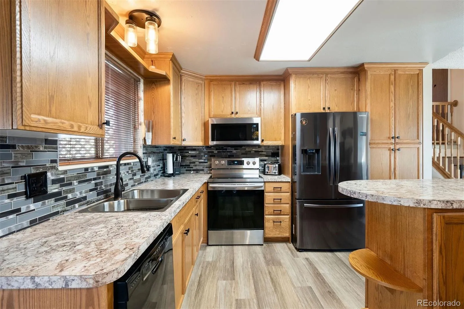 Step inside to a bright and welcoming living room filled with warm, natural light. The beautifully remodeled kitchen immediately draws your attention, featuring new cabinets, a stylish mosaic backsplash, and newer appliances throughout. An inviting eat-in area makes the perfect spot for everyday meals and gatherings.