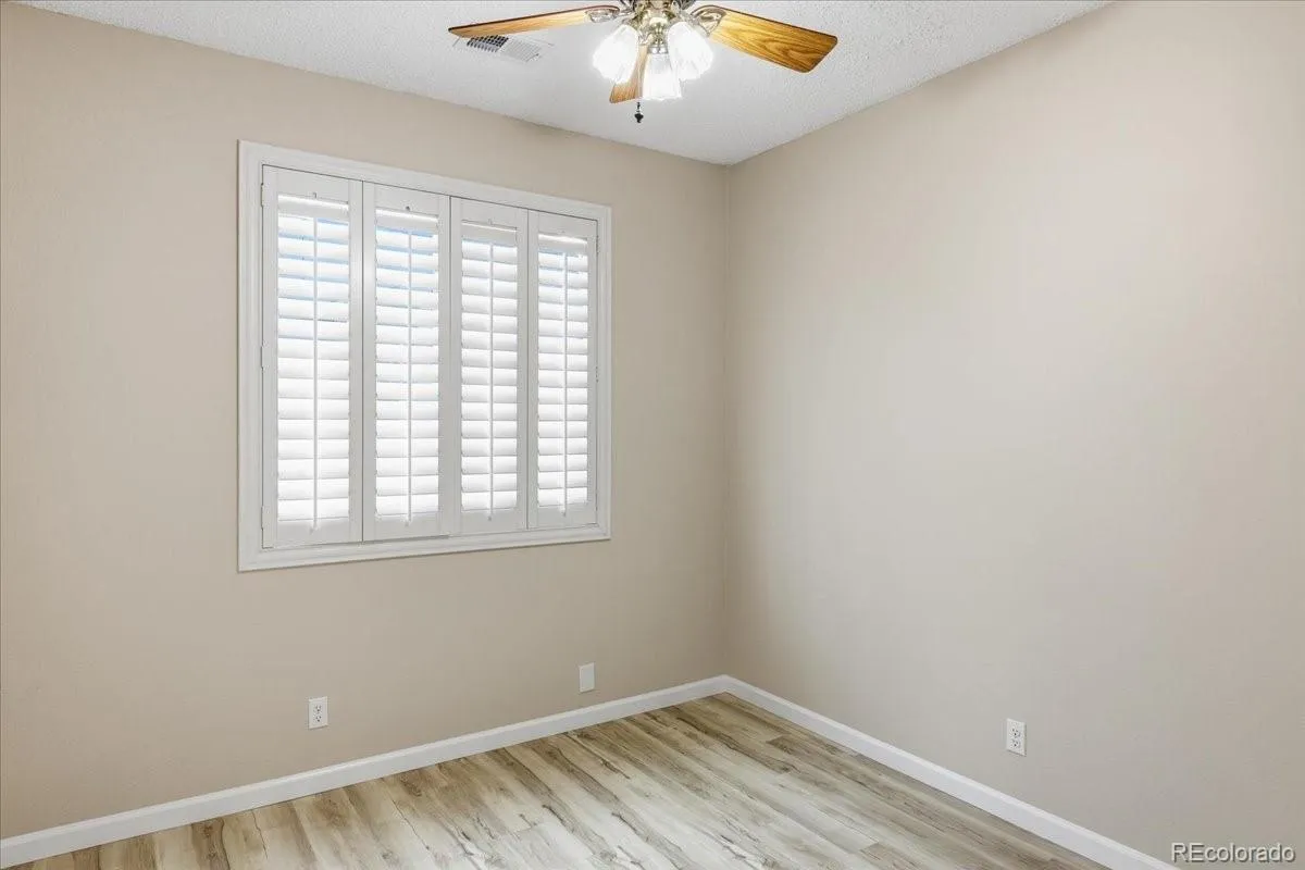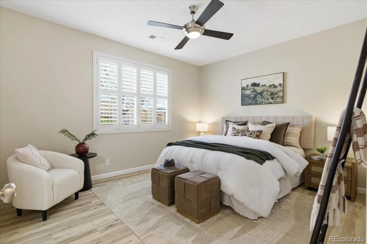 Offering flexible living with three bedrooms or two bedrooms plus a dedicated office, the home sits on a spacious, fully fenced lot that backs to a peaceful greenbelt and the Grand View Trail—part of Highlands Ranch’s extensive trail system.