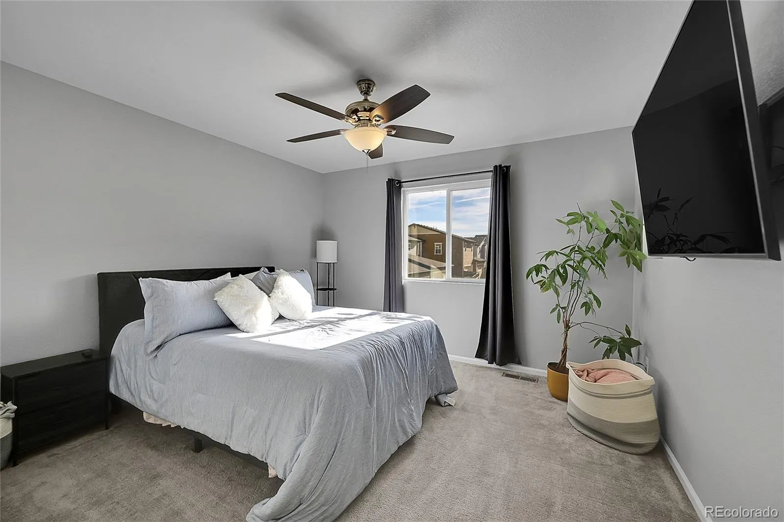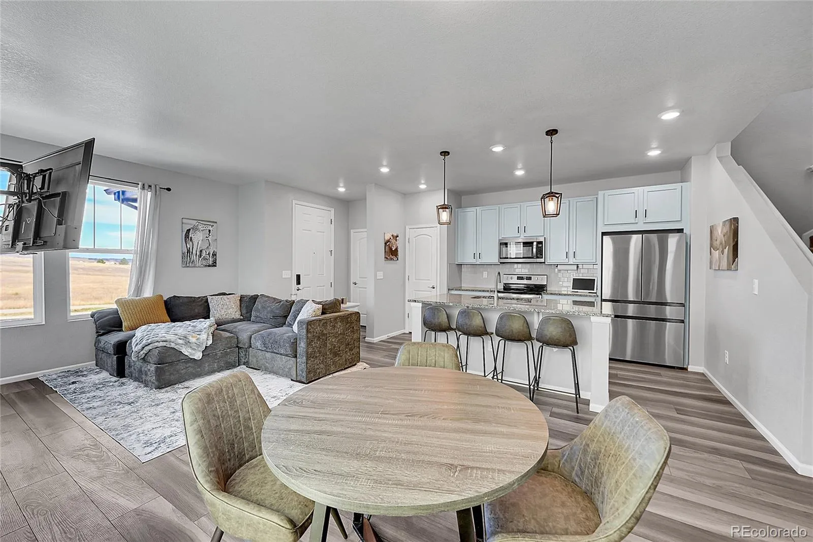 Welcome to this beautifully designed townhouse at 3436 N Meadows Drive in scenic Castle Rock, Colorado. Offering 1,518 square feet of comfortable living space, this low-maintenance home features 2 bedrooms, 2 full bathrooms, and a half bath, along with an attached 2-car garage—perfect for Colorado’s changing seasons. Inside, an open floor plan effortlessly connects the living room, dining area, and kitchen, all anchored by Luxury Vinyl Plank flooring on the main level. The living room overlooks peaceful open space and includes a cozy fireplace for winter nights, while the kitchen is a chef’s delight with stainless steel appliances, granite countertops, a pantry, and a spacious island with seating for casual meals. Upstairs, a bright and open loft offers fantastic flex space—ideal for a home office, workout area, reading nook, or playroom. The primary bedroom provides a serene retreat with open-space views, an ensuite bathroom, and a generous walk-in closet. The second bedroom is bright and inviting, enhanced by natural light and a ceiling fan. The unfinished basement offers excellent flex space for storage or future customization. Outside, enjoy a private yard with a patio and designated barbecue area—ideal for warm-weather gatherings. Set within a welcoming community with sidewalks and a suburban feel, this home is conveniently located near parks, shopping, and dining, offering easy access to everything Castle Rock has to offer.