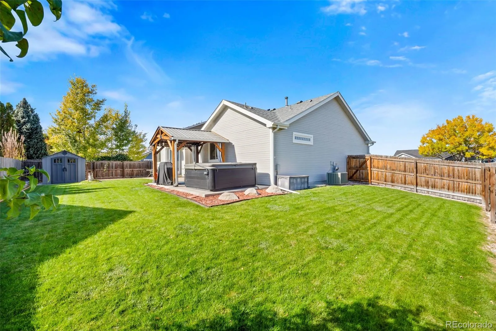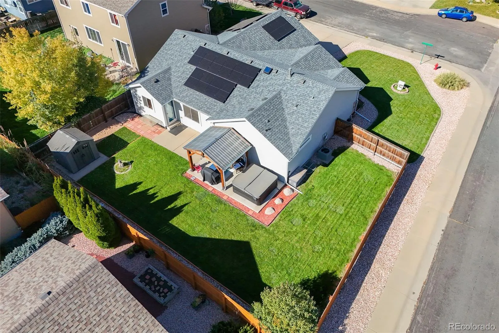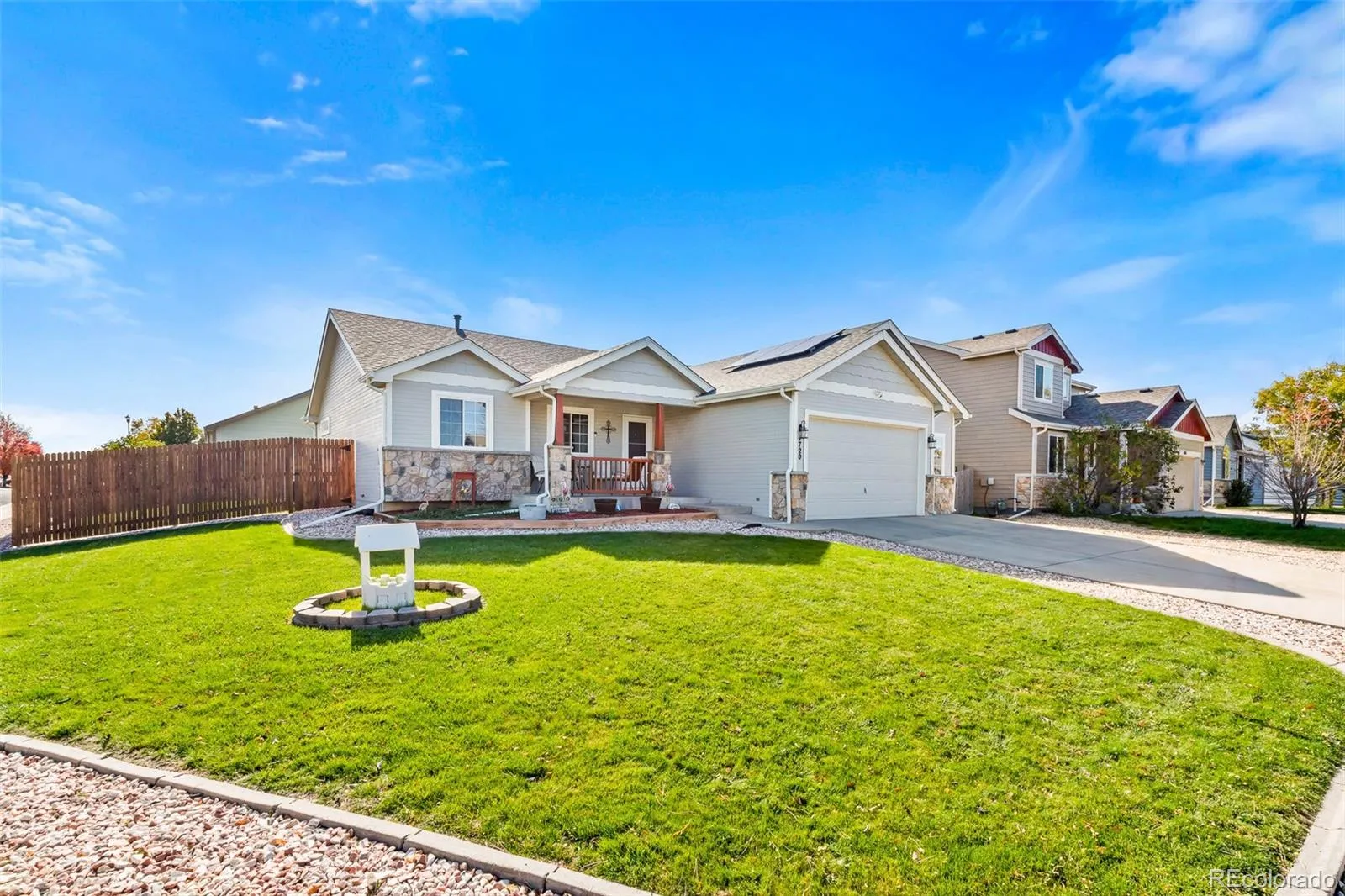 Welcome Home to 1720 Goldenvue Dr in Rolling Hills Ranch! A very livable 5 Bed – 3 Bath Open Floor Plan Ranch style home with a Full Finished Basement! Plus a New Paid Off Solar System cutting those electric bills to practically nothing! Everything is done and Move in Ready, including new Interior and Exterior paint, LVP Flooring, Stainless Appliances, New Windows throughout, Newer Roof, Gorgeous Landscaping even with a new storage shed! Don’t miss the Oversized Garage with workshop kickout, ideal for tools, toys, or shelving. Large Kitchen with plenty of cabinet space including a huge pantry plus an eat in kitchen nook. Come visit one of the Best Neighborhoods in Johnstown and view this well cared for home. Centrally located within walking distance to the New Roosevelt Middle School, Nelson Park Fields, Shopping and an easy shot to I25. PLUS – NO METRO Tax and super low HOA! Johnstown is Booming and 1720 Goldenvue in Rolling Hills Ranch is the place to be!