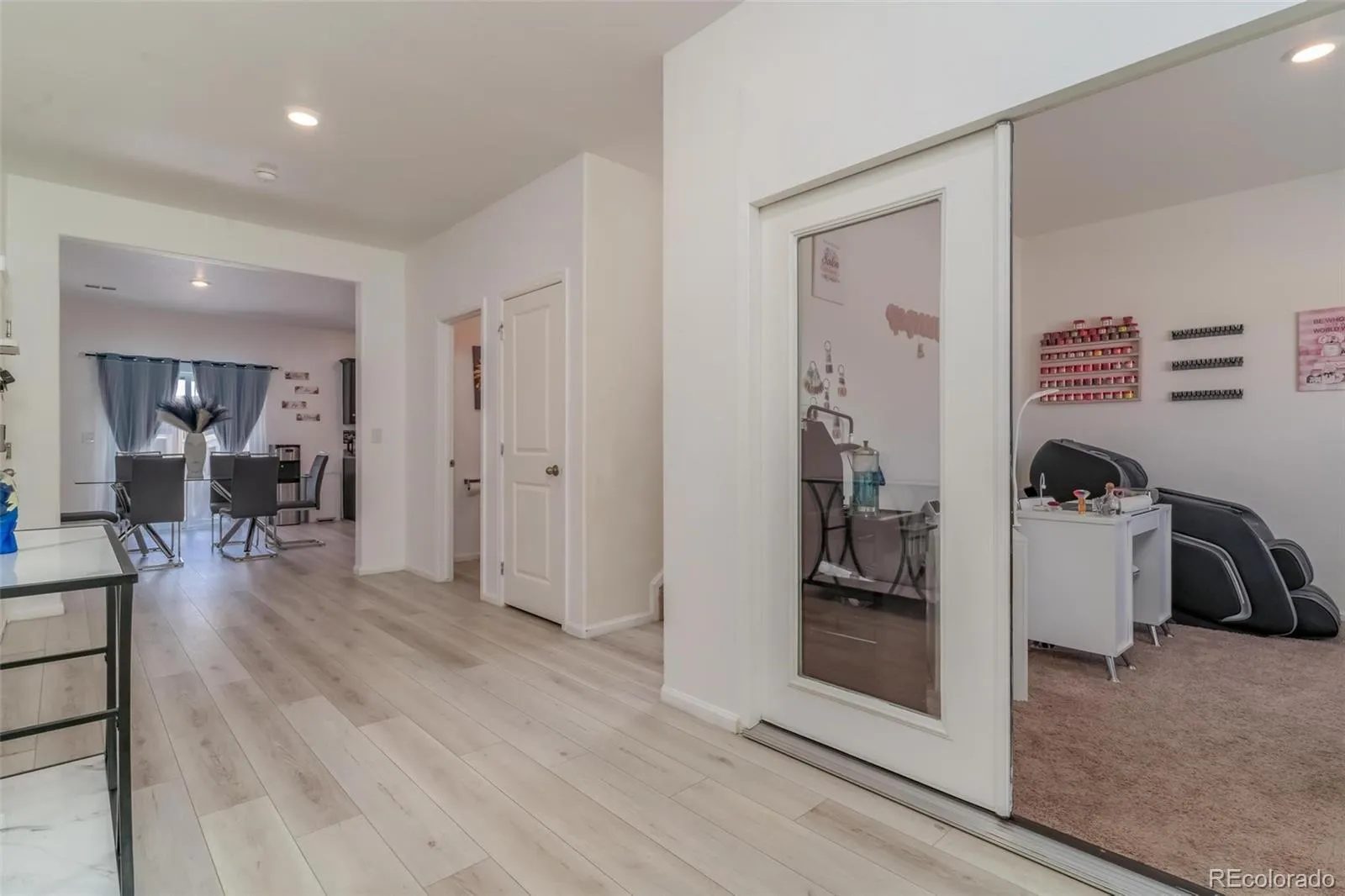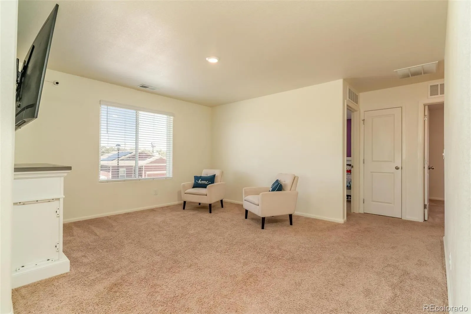 The living room is the heart of the home, with large windows flooding the space with natural light and providing views of the surrounding landscape. Cozy up by the fireplace on chilly evenings or step outside to enjoy the fresh Colorado air on the patio.