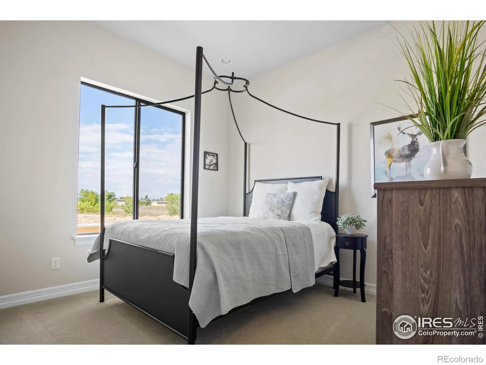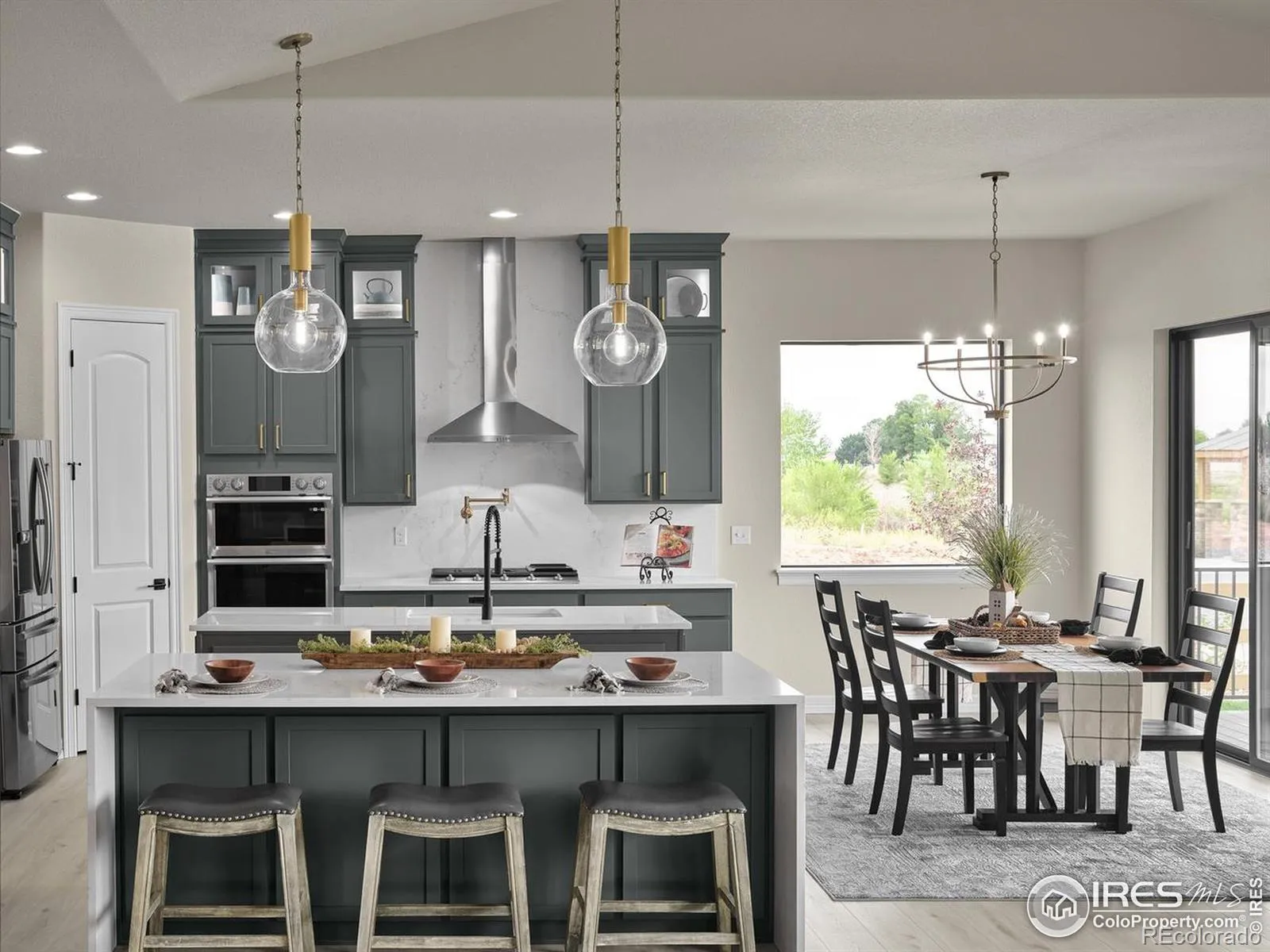 This former ranch style model home sits on a premium south facing corner lot in the highly desired Greenspire at Windsor Lake community. Designed to make a lasting first impression, it features elevated finishes and thoughtful details throughout. With a greenbelt as the backdrop and no rear neighbors, the outdoor setting feels open, quiet, and perfectly connected to nature. From the moment you step through the arched front doors, the interior feels bright and inviting with vaulted ceilings and expansive windows that frame the Colorado sunshine. The open layout flows naturally between the kitchen, dining, and great room. An oversized linear fireplace with an extended hearth creates a warm focal point for relaxed evenings or memorable gatherings. The gourmet kitchen makes a statement with its dual island, quartz countertops, gas range, custom cabinetry, beverage fridge, and secondary prep sink. It is a space that works beautifully for hosting friends, preparing family meals, or enjoying slow mornings with coffee. The primary suite is tucked away for privacy and lives like a retreat, complete with a freestanding soaking tub, walk in shower, and dual vanities. A shiplap ceiling, exposed beam, and a private fireplace add character to the space. Downstairs, the finished basement offers room to spread out with a large recreation area, two additional bedrooms, a full bath, and a wet bar. A dedicated theater room makes movie nights and game days feel special. A spacious three car garage provides room for storage, hobbies, and all the gear that comes with Colorado living. Full yard landscaping is included so the home is ready to enjoy on day one. Schedule your private tour today and experience the best of life at Greenspire at Windsor Lake.