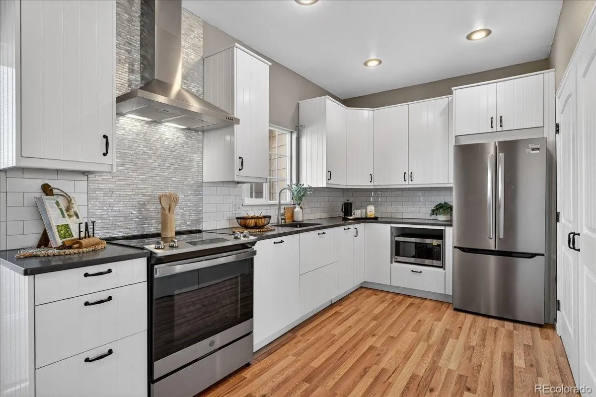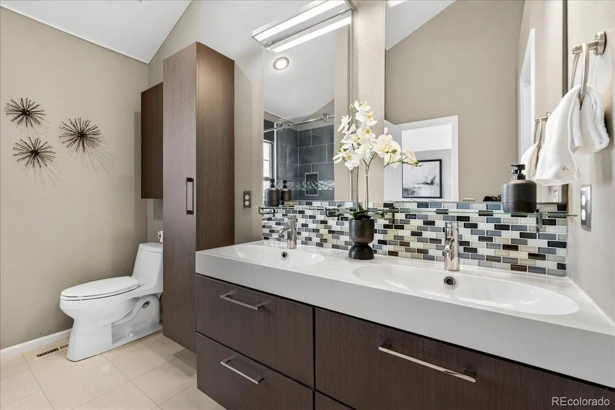 Upstairs, the generous primary suite offers a true retreat with a large walk-in closet, double sinks, and a beautifully updated tiled walk-in shower. The secondary bedroom offers its own private en suite bath. An attached 2-car garage provides convenience and additional storage, with select shelving included. Light, modern, and move-in ready, this is stylish, low-maintenance living at its best.