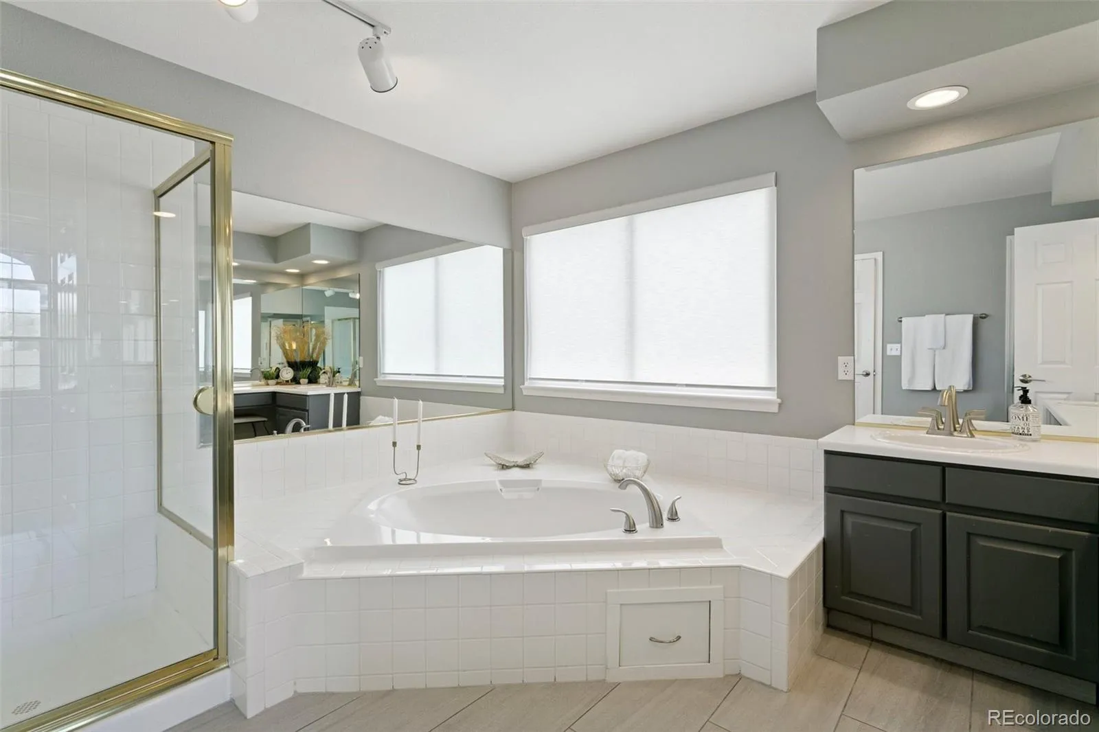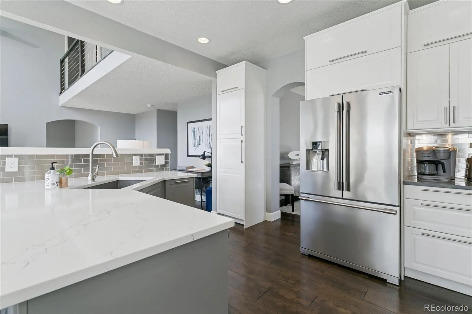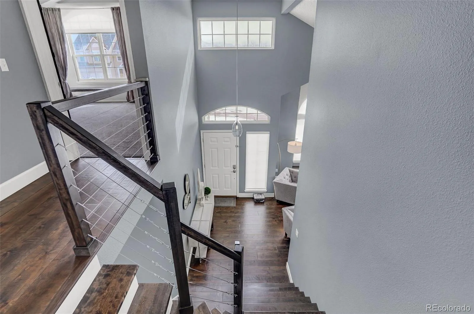 Easy commute to Castle Rock or Denver!! Spectacular one-owner home! Academy District 20 Schools! This beauty has GREAT BONES, fantastic living spaces, and beautiful finishes throughout. The main level was remodeled to include: custom birch engineered hardwood floors, custom birch stairs, a stunning, custom IKEA kitchen with TONS of cabinets, quartz countertops, two pantry cabinets, Frigidaire Professional Series fingerprint-resistant stainless appliances, new lighting, custom roller shades (some motorized), new 5″ baseboards, and a one-of-a-kind, custom cable railing created by the talented carpenters at Eden Oaks. The main level features formal living and dining rooms, a lovely kitchen w/extended breakfast nook & counter bar, large family room w/soaring ceilings and a cozy gas fireplace, large home office, powder bath and separate laundry room. Upstairs you’ll find more birch flooring and 5″ baseboards on the landing, new carpet & tile, and new lighting. The Primary Suite measures 400 sq.ft. w/an attached 5-pc bathroom & a walk-in closet. There are three more bedrooms upstairs (one of the upstairs bedrooms was converted into custom walk-in closet (Classy Closets) but can easily be converted back to a bedroom!), another full bathroom, and two areas for linen storage. Both the Primary ensuite and the hall bathroom have been updated with freshly-painted cabinets, new lighting, and custom tile floors! The basement is at garden level, offering large windows with LOTS of natural light. You’ll love the multi-purpose room at the base of the stairs, featuring custom shelving and a built-in desk. The basement bedroom includes a walk-in closet! There is a huge second family room on this level with plenty of space for all of your favorite activities. The basement also features a full bathroom. You’ll love the three large closets AND the large storage room on this level, as well! Custom 4″ baseboards were installed recently, along with new carpet. Don’t miss this special home!