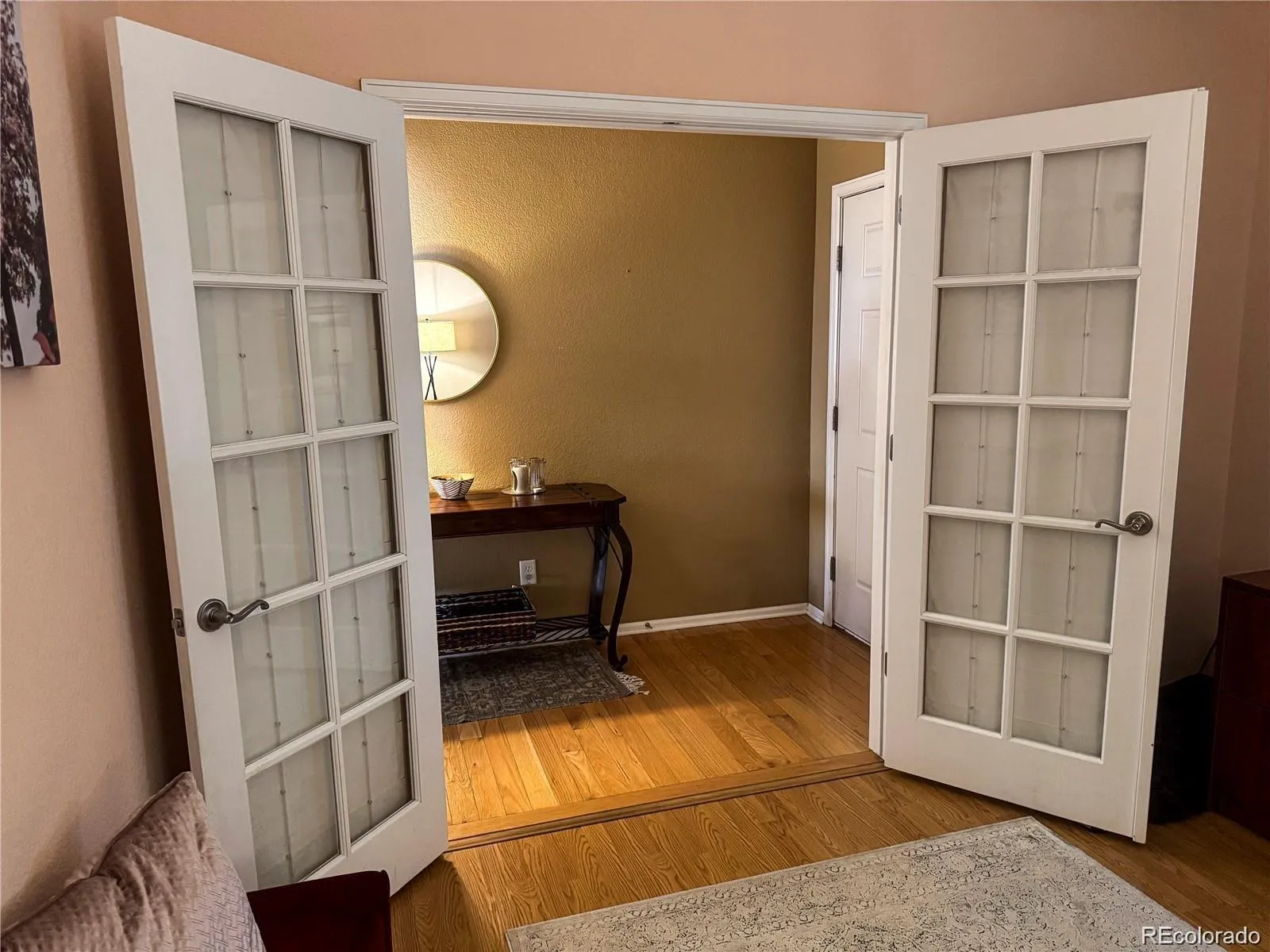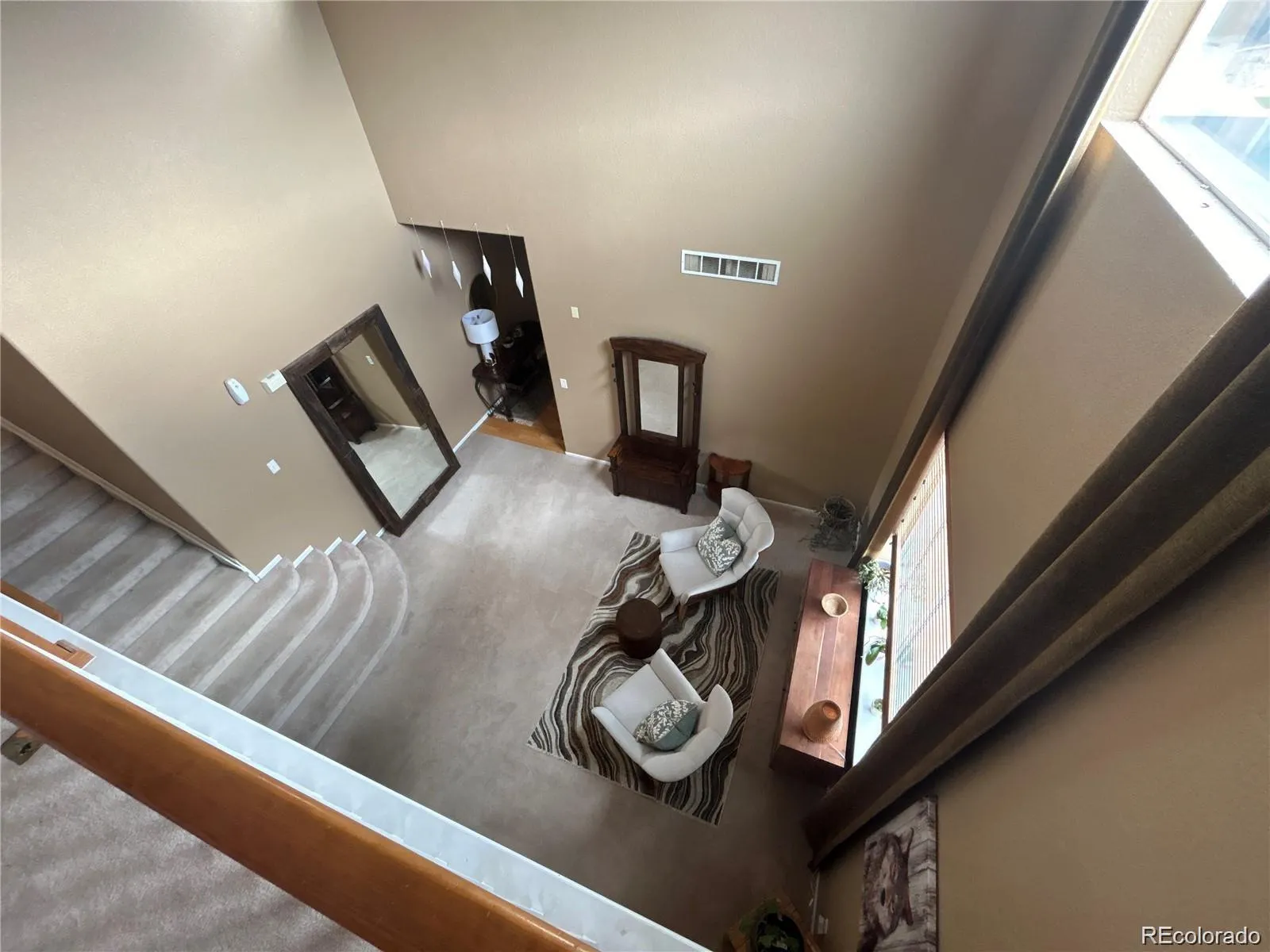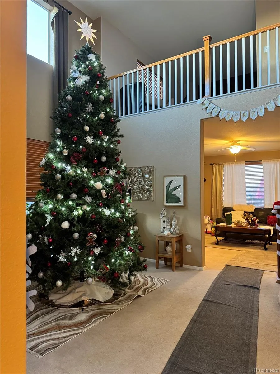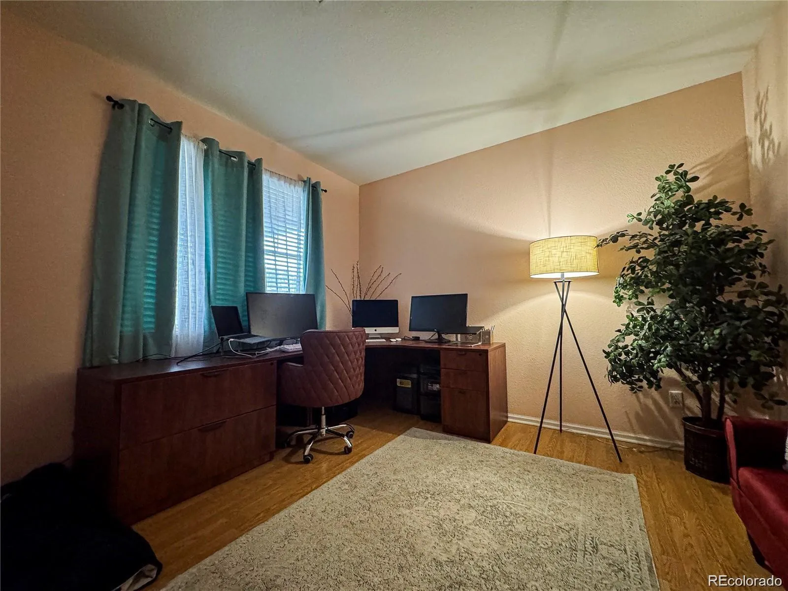 Set on a spacious corner lot in Commerce City, this stunning home offers soaring ceilings, smart design, and exceptional storage. As you enter, elegant French doors lead to a private office—perfect for remote work or quiet time. The main living area boasts 18-foot ceilings, filling the space with natural light, while a cozy gas fireplace adds warmth.
