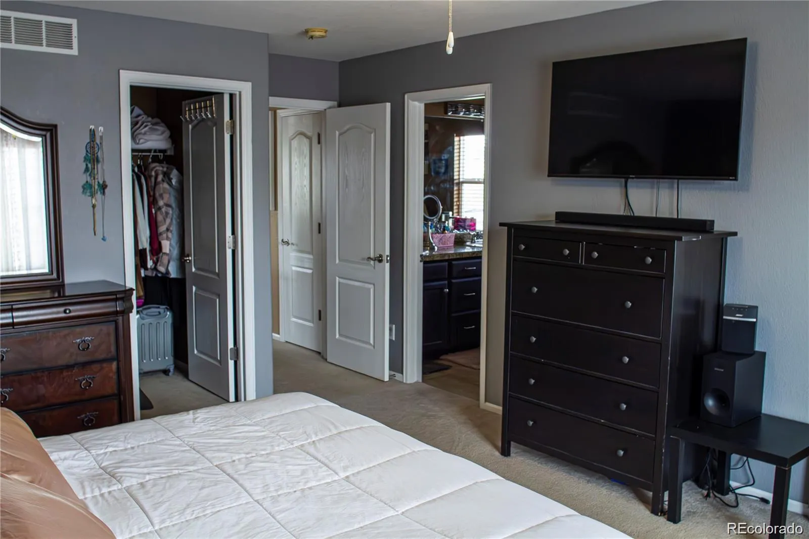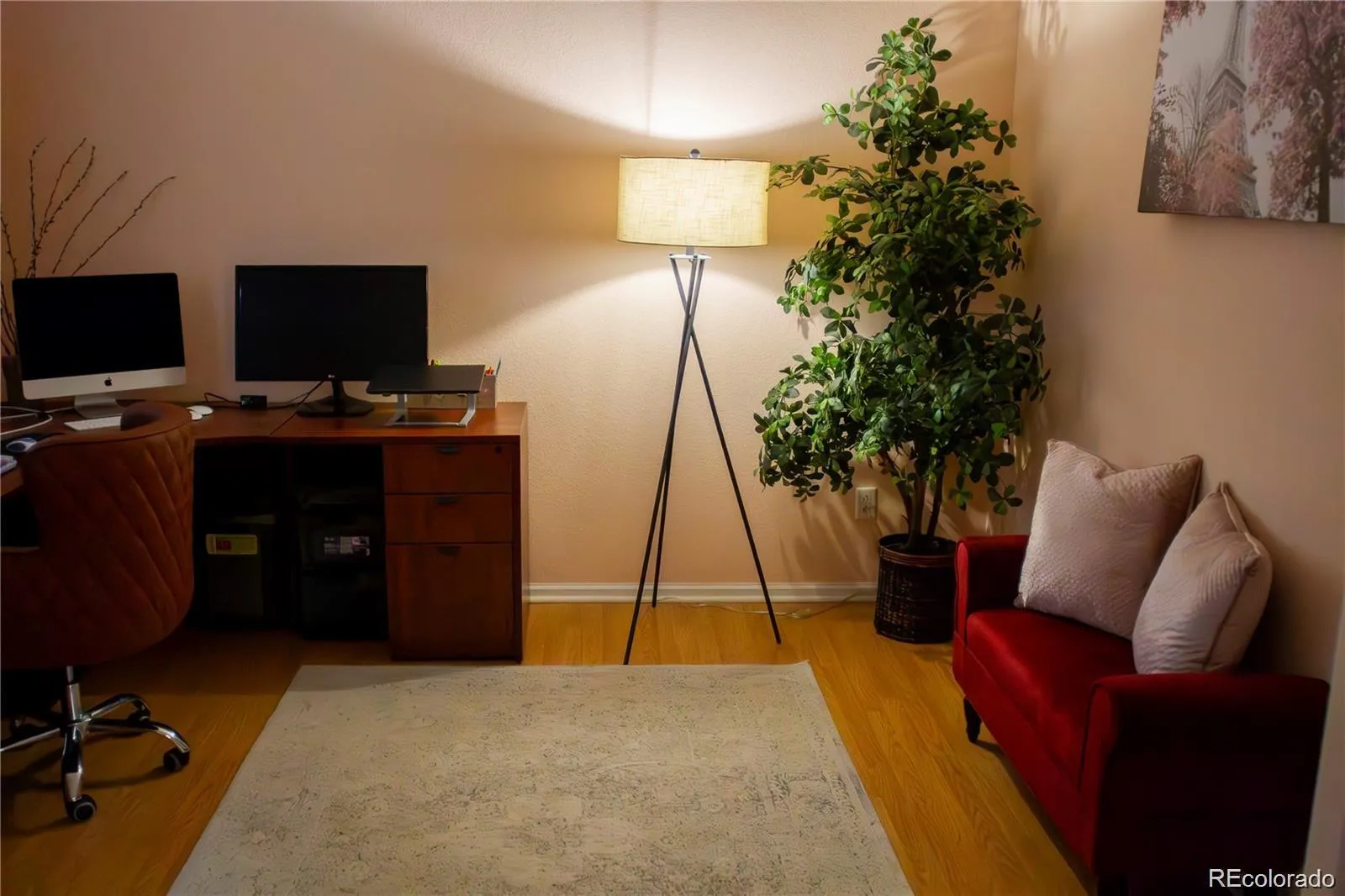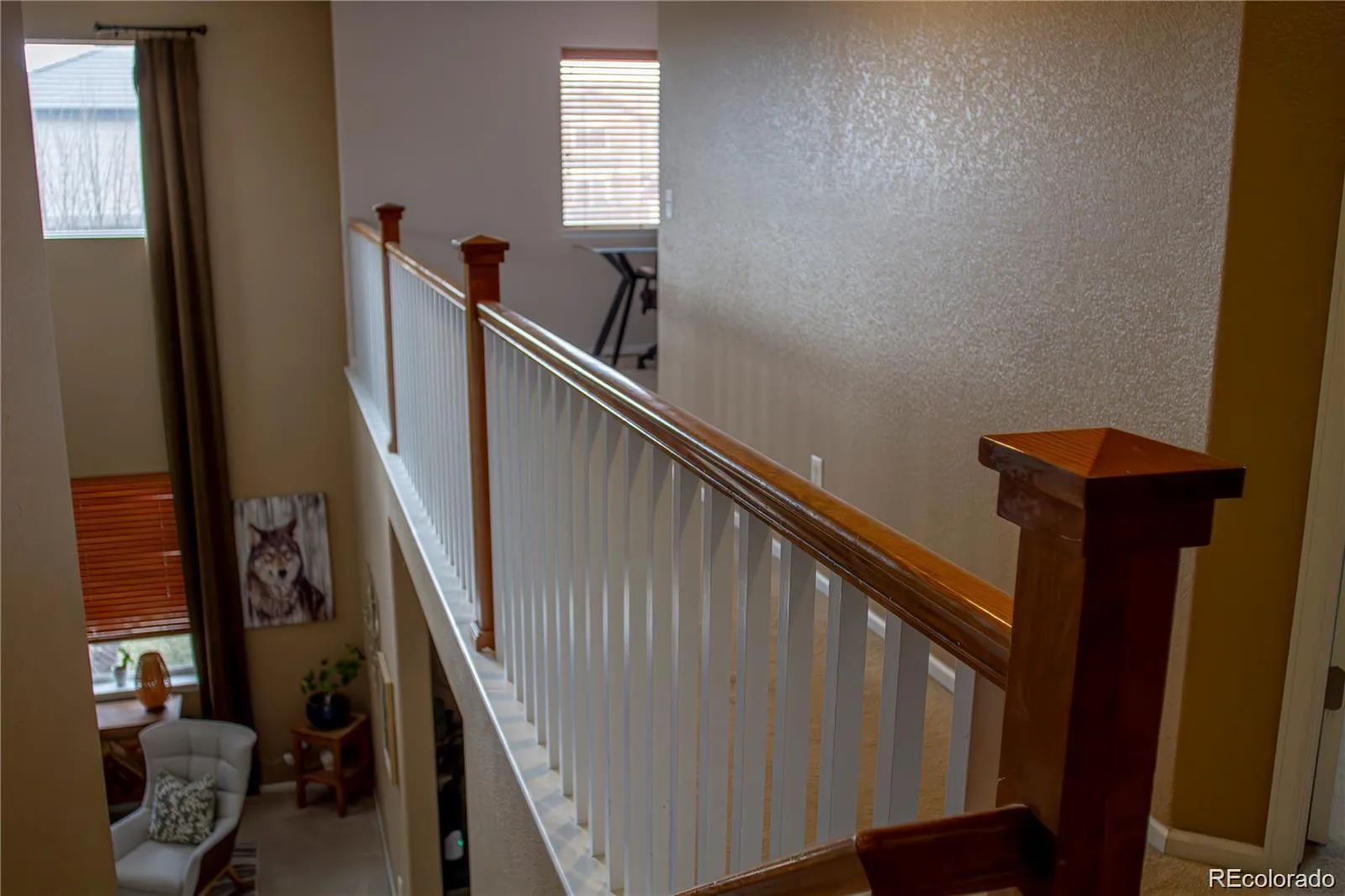 Set on a spacious corner lot in Commerce City, this stunning home offers soaring ceilings, smart design, and exceptional storage. As you enter, elegant French doors lead to a private office—perfect for remote work or quiet time. The main living area boasts 18-foot ceilings, filling the space with natural light, while a cozy gas fireplace adds warmth.