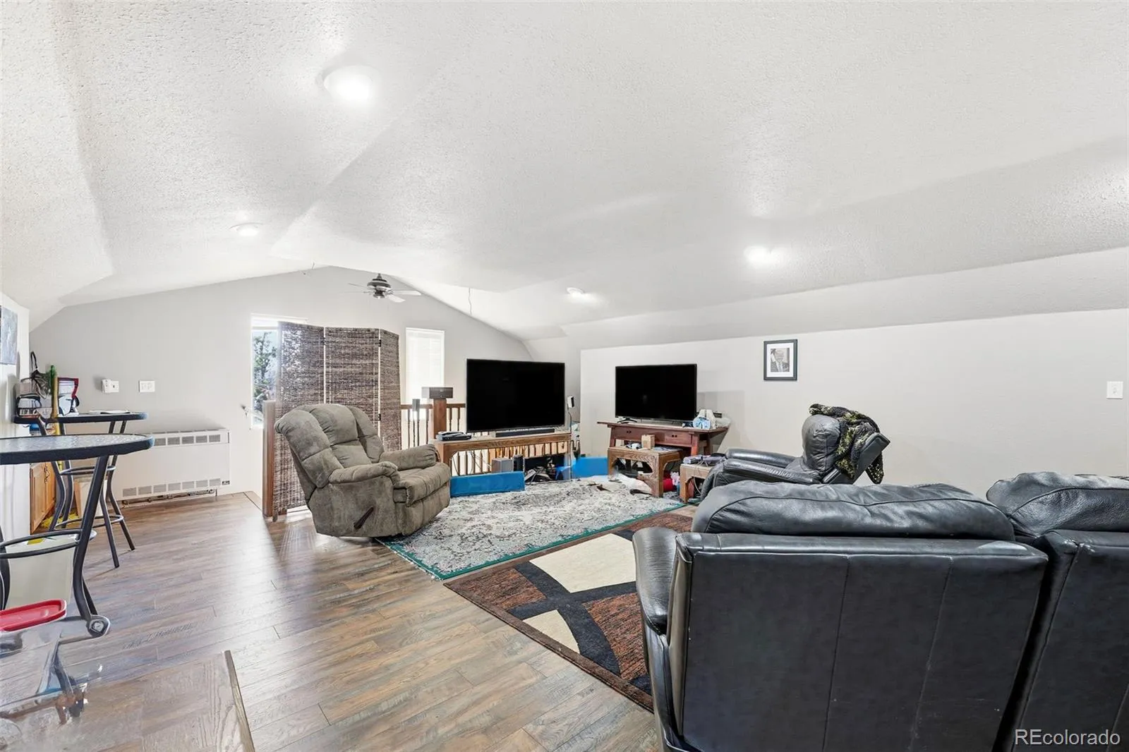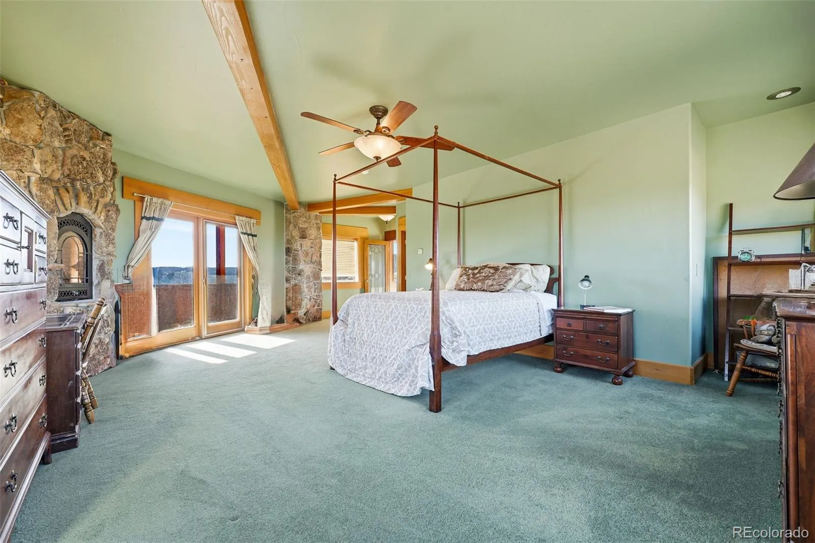Designed to maximize natural light and scenery, the home features expansive windows, vaulted beams, rich stonework, eastern white pine floors, and custom hickory cabinets, and picture windows on every level framing Pike’s Peak, Mount Evans, Longs Peak, and the distant Denver skyline. The grand entry leads into a welcoming great room and well-appointed chef’s kitchen with premium appliances, generous granite surfaces, dumbwaiter, and views in every direction. Warm finishes and a beautiful stone fireplace create an inviting, livable feel.