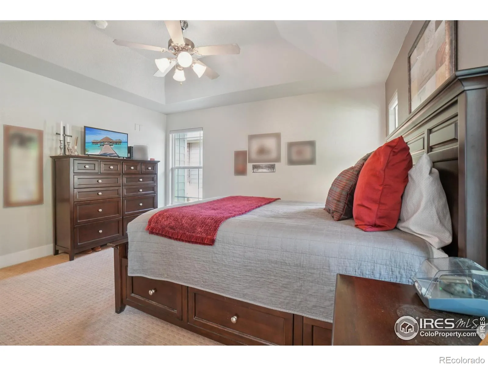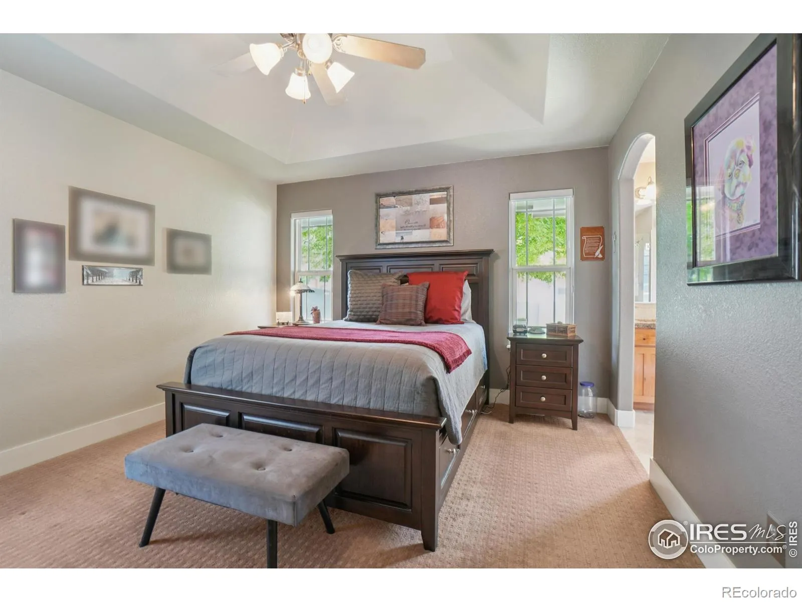 MOVE-IN Ready. Furnace/AC are NEW, Roof is Newer. Welcome to your beautifully maintained home in the desirable St. Michaels community of Greeley. Nestled in a quiet, well-kept neighborhood, this residence offers the perfect blend of comfort, style, and convenience. Step inside to discover a spacious open-concept living area with soaring vaulted ceilings and abundant natural light. The inviting living room centers around a cozy gas fireplace and flows seamlessly into the dining area with direct access to the covered patio-ideal for indoor-outdoor living. The kitchen continues the vaulted ceilings and features granite countertops, stainless steel appliances, rich wood cabinetry, and plenty of prep space for all your culinary needs. The bedroom wing of the home offers privacy and functionality. The primary suite is a true retreat with tray ceilings, a luxurious 5-piece ensuite bath, and a generous walk-in closet. Two additional bedrooms-one with vaulted ceilings-share a full bath, and a convenient laundry closet completes the main level. Downstairs, the finished basement expands your living space with a large media room equipped with a sound system, perfect for movie nights and entertaining. You’ll also find a fourth bedroom with egress windows, a 3/4 bathroom, and a spacious utility/storage room. Out back, enjoy your own private oasis with a beautifully landscaped, fenced-in yard, lush lawn, flower beds, and a comfortable covered patio for relaxing evenings or morning coffee. A 2-car attached garage offers convenience and additional storage. Fresh paint recently updated, and water heater is 8 years old. With its peaceful setting, quick access to local amenities, and a true sense of community, this St. Michaels gem is ready to welcome you home!