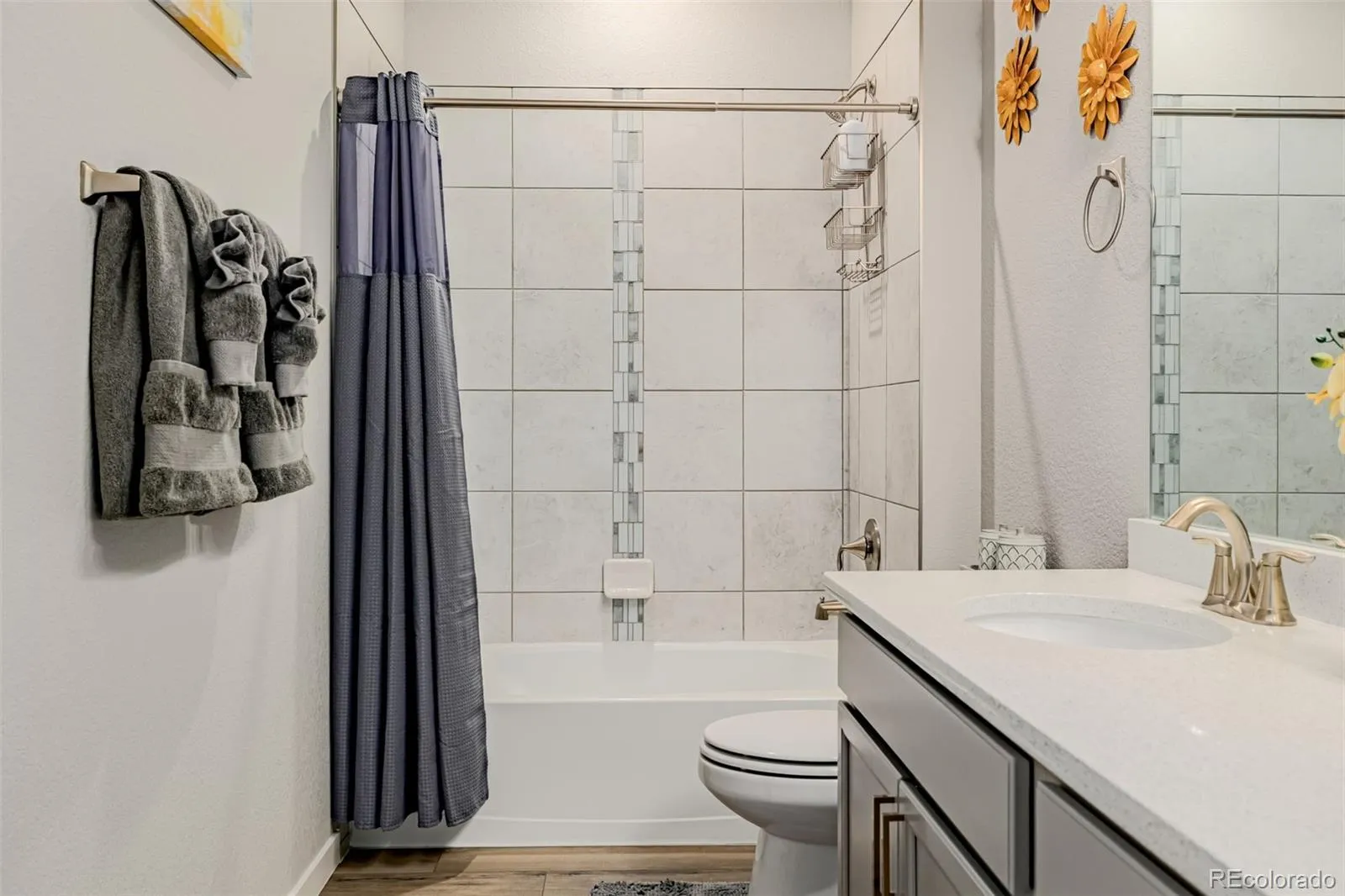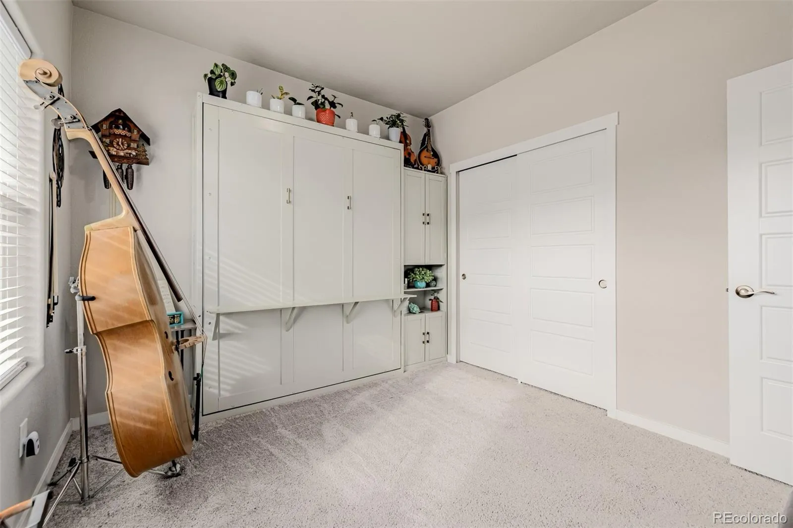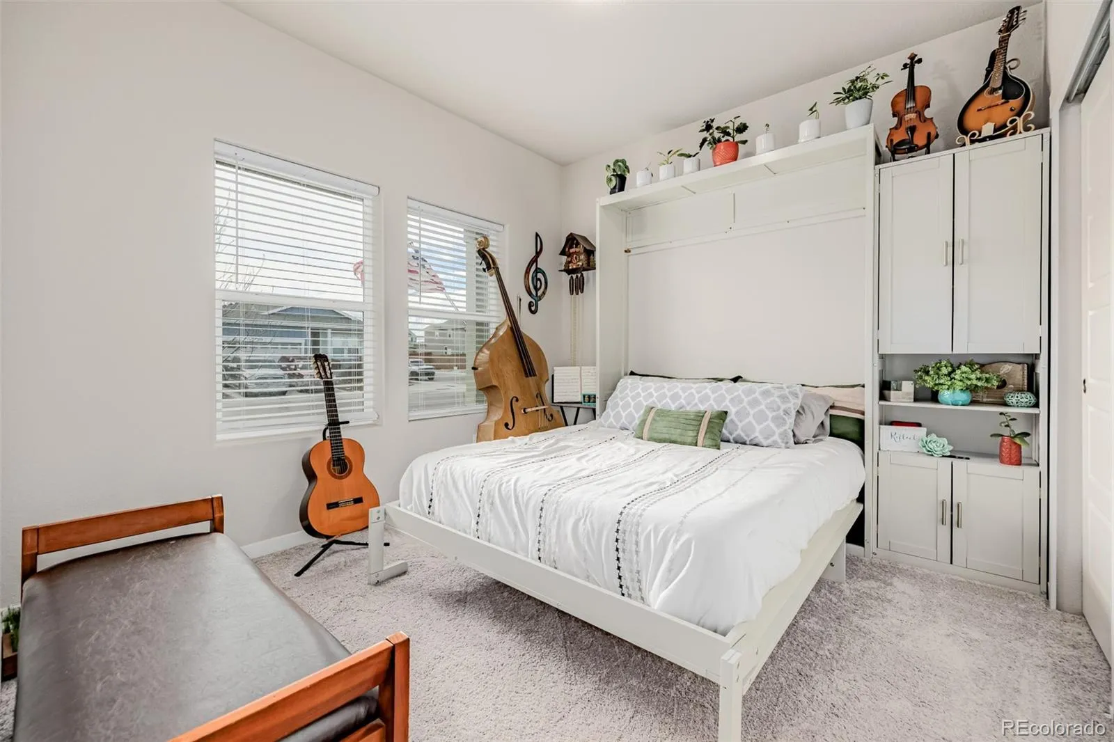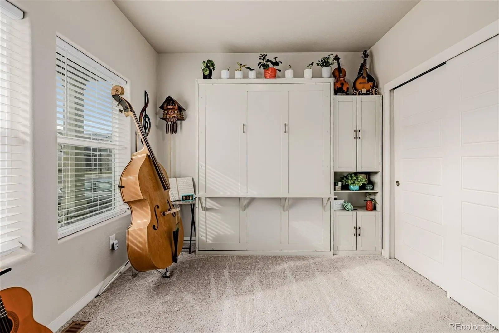 Designer touches continue throughout the home with luxury vinyl plank flooring, tile accents in bathrooms, custom corner shower shelving, and a walk-in closet in the primary bedroom. All bedrooms are wired for ceiling fans, and a queen-size Murphy bed offers flexible living. A radon mitigation system adds peace of mind.