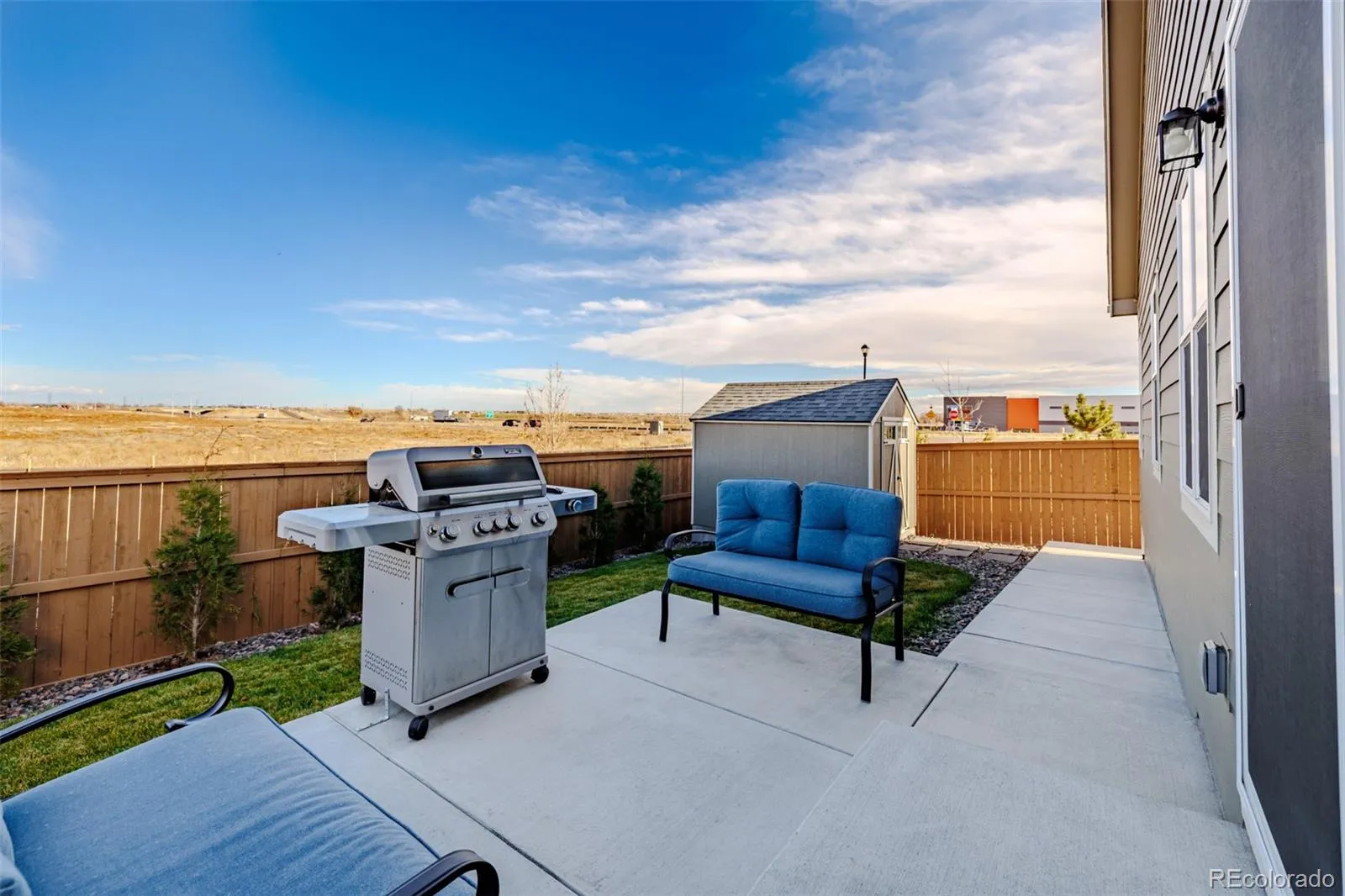 The upgrades extend outside with a 4-ft driveway extension, 3-ft sidewalk wrapping the side and back, and a dedicated concrete pad leading to an 8’x10′ shed. The backyard is set up for both privacy & enjoyment, featuring trees along the back fence that are expected to grow to approximately 10′ tall, a shared 6’ privacy fence & gate, completed landscaping, a Kwikset Halo Wi-Fi smart lock, and a motion sensor light.