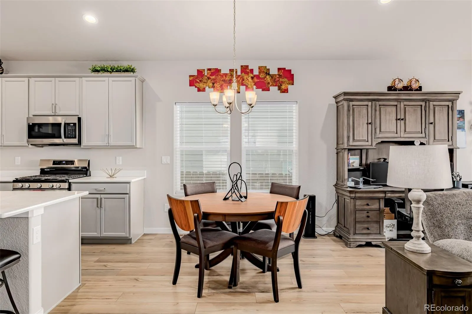 Step inside to an inviting open floorplan with vaulted ceilings that make the entire home feel bright and spacious. The heart of the home is the stunning kitchen – complete with a large island, quartz counters, gas range, stainless refrigerator, and a large pantry. Whether cooking or entertaining, this space was designed to bring everyone together.