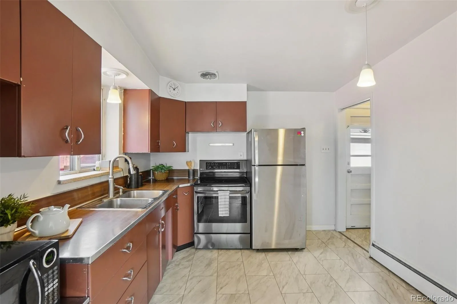 Step inside to discover refinished hardwood floors that brighten the main level, a cozy living area, two comfortable bedrooms, and a fully updated bathroom featuring contemporary finishes. The kitchen boasts new flooring, abundant cabinetry, and direct backyard access—ideal for enjoying Colorado’s indoor-outdoor lifestyle or for future kitchen expansion.