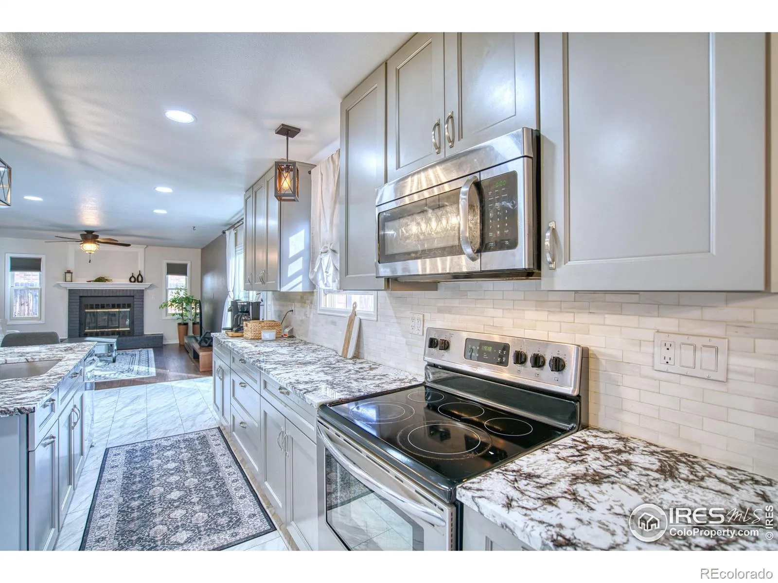 OPEN HOUSE SAT. 11/22 10 am – 2 pm. Updated home in highly desirable, established NW Longmont neighborhood. Walking distance to McIntosh Lake which has trails, parks, tennis & paddle boarding. Enjoy mountain views from the primary bedroom! Home is updated with contemporary kitchen, newer finishes, fixtures, flooring & paint. Beautifully updated large kitchen has a pantry, plenty of cabinet space, oversize island, newer cabinets, granite counters & newer appliances. Lots of light in the home with a bay window in the living room & skylights on the vaulted ceiling. Cozy family room off of the kitchen has a gas fireplace. Fully fenced yard has shed, sprinkler system, fire pit area, garden beds & is perfect for pets. Patio has a pergola & is great for grilling. 2 Car garage. No HOA. Much of the furniture for indoors & outdoor is also available. This home is move in ready!