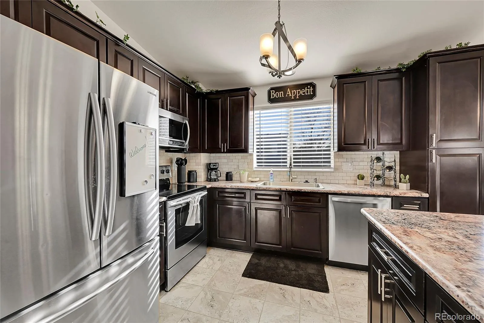 Outside, the fully fenced yard gives you privacy and space to relax, and the new, no-maintenance deck is ready for summer dinners, morning coffee, and Colorado sunsets. The oversized, attached two car garage provides plenty of room for vehicles and storage.