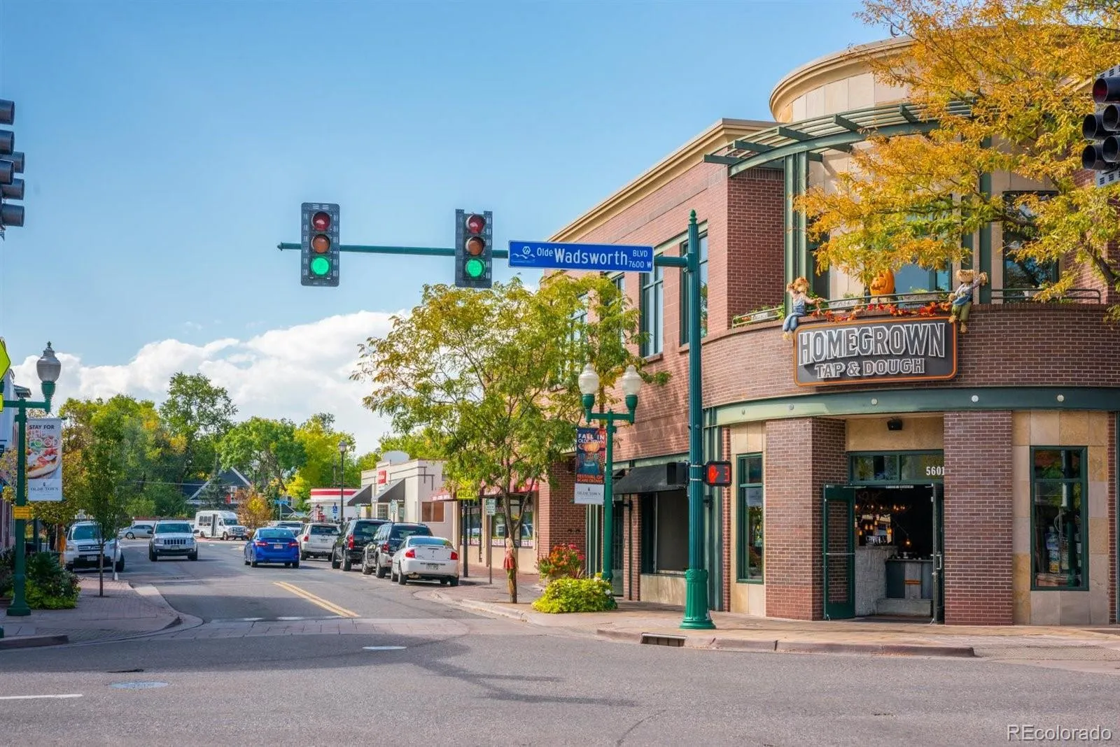 Live at the heart of Olde Town Arvada — where trendy meets timeless. This rare Grandview condo puts you steps from everything: coffee shops, brunch spots, breweries, yoga, boutiques, the G-Line, festivals, farmers markets, and those iconic brick-lined streets. Park in your secure garage, hop into the elevator, and you’re home in seconds. Inside, natural light pours through a wall of windows, opening to your oversized Grandview balcony with postcard views of the foothills, the water tower, and the Olde Town clock tower. It’s the backdrop everyone dreams of — sunrise coffee, sunset wine, and all the people-watching in between. The open layout features one of the largest living areas in the building—perfect for entertaining. The kitchen offers trendy selections & upgrades, while luxury vinyl plank flooring runs throughout. The primary bedroom has a spacious ensuite with double sinks, a walk-in shower, and a generous closet. A full guest suite rounds out the floor plan. If you want walkability, views, urban energy, and a lock-and-leave lifestyle in one of Colorado’s most charming downtown districts, this one checks every box