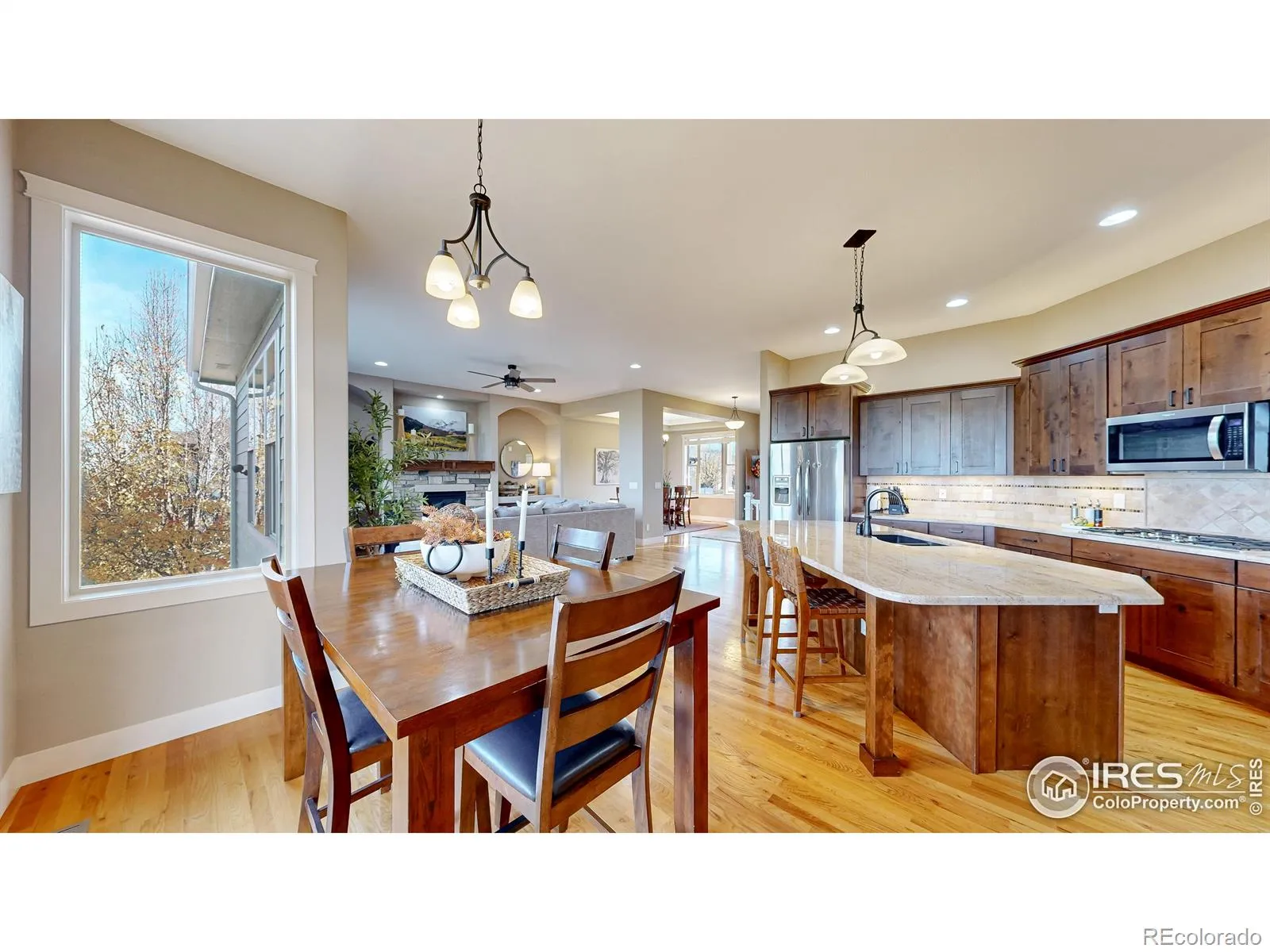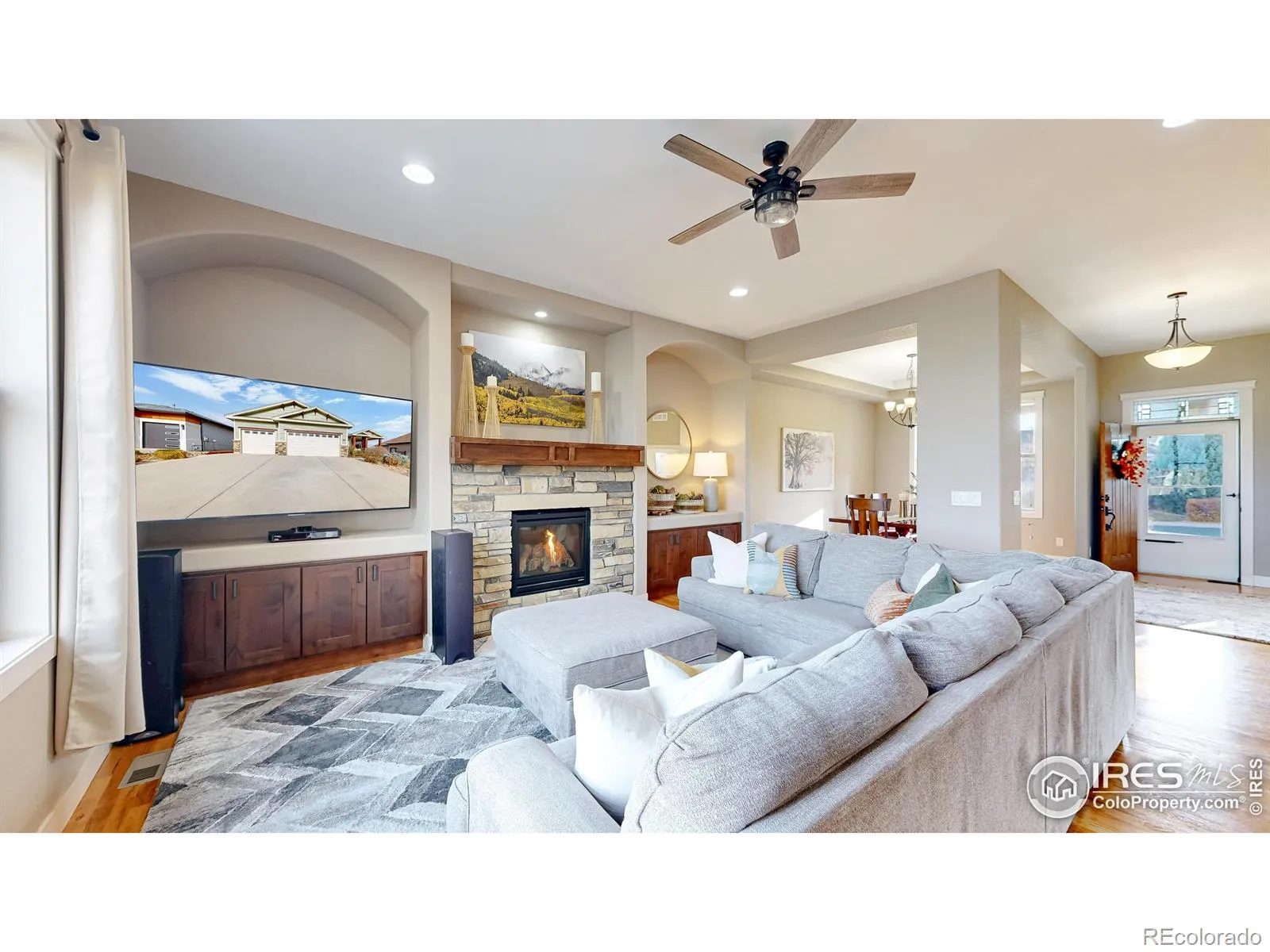 Nestled on a quiet cul de sac in coveted Highland Meadows Golf Course Community on a spacious golf course lot this 4 bedroom 3 bathroom ranch plan will not disappoint. Upon entry you’ll be welcomed into a warm and spacious home that is both elegant and livable with a well-thought-out layout that blends comfort, style and amazing VIEWS!.As you enter, the foyer flows into a generous great room area highlighted by large windows that fill the room with natural light & warm wood flooring, two tone designer paint throughout main level. A cozy gas fireplace creates a focal point in the great room, making it a natural gathering space to be enjoyed from throughout the home.The kitchen is well equipped for both everyday life and entertaining, with abundant cabinetry, stainless steel appliances, a built-in pantry, and a large center island that doubles as a breakfast bar. There is a cozy eat in kitchen space as well as formal dining room just in time for the holidays! The huge main level primary suite serves as a serene retreat with a roomy walk-in closet and a private bathroom featuring dual vanities, a soaking tub, and a stall shower with well appointed finishes.Main floor office or 3rd bedroom has double door entry and views to the front of the home.Fully finished garden level basement offers a great rec room, small wet bar and 2 additional huge bedrooms with loads of natural light. Outside, the large, landscaped backyard creates a private oasis with a large covered patio for al fresco dining while taking in the golf course views form the 5th hole, that give a sense of tranquility. With its blend of functional interior spaces, golf course lot location, top rated PSD schools and proximity to parks, pool and clubhouse makes this a home run home! Many recent updates have been made this year: carpet & pad, int/ext paint, landscaping etc. be sure to pull the upgrade list!Prime location in NOCO close to I-25 for commuting, Windsor, and Fort Collins all within minutes of the home.