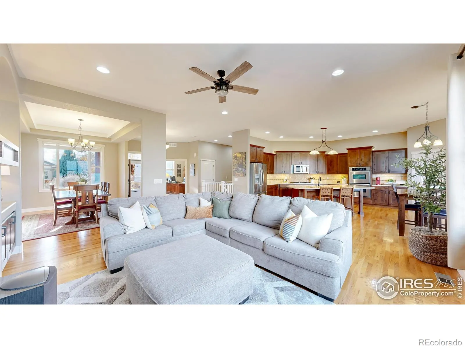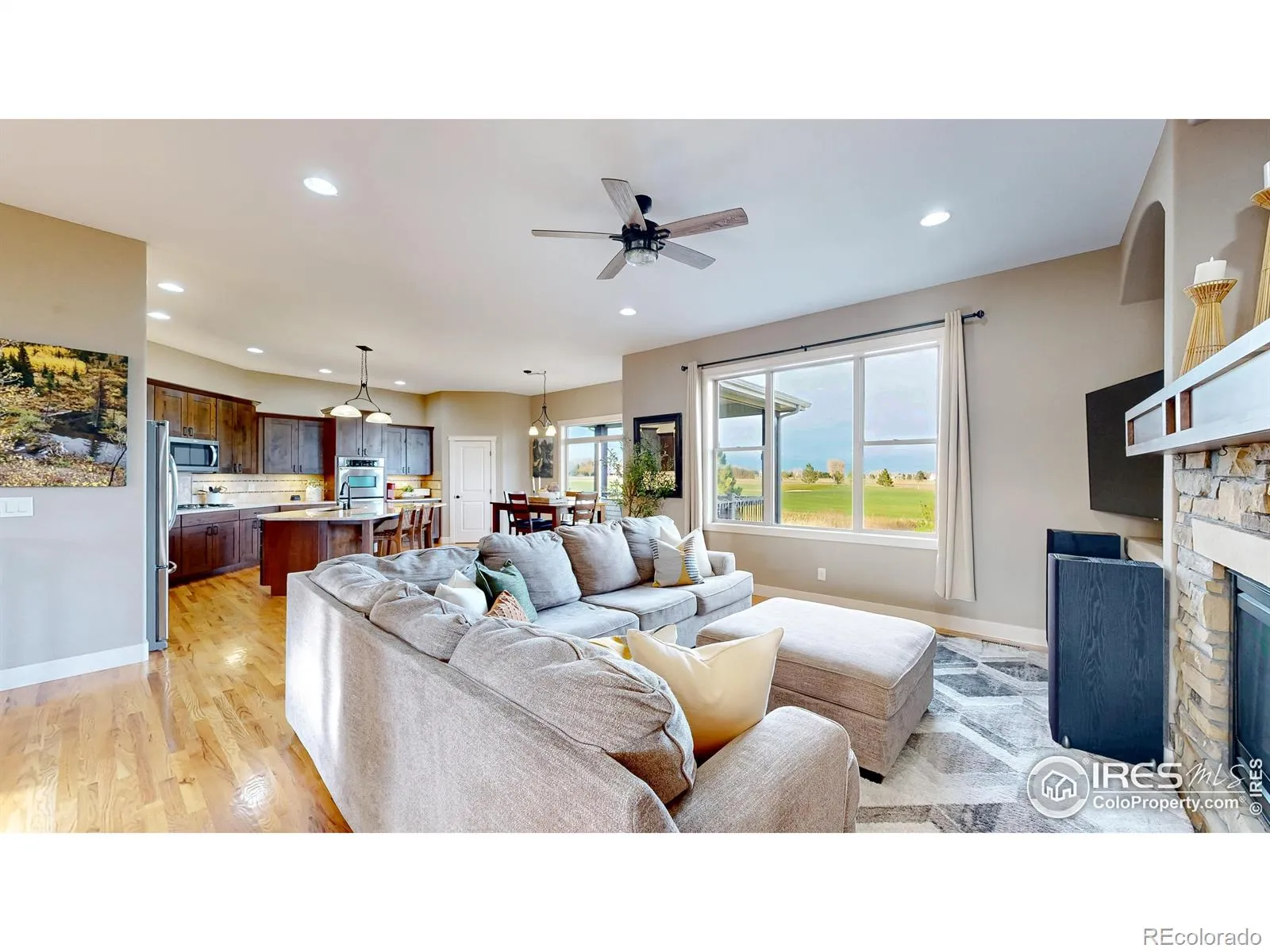 Nestled on a quiet cul de sac in coveted Highland Meadows Golf Course Community on a spacious golf course lot this 4 bedroom 3 bathroom ranch plan will not disappoint. Upon entry you’ll be welcomed into a warm and spacious home that is both elegant and livable with a well-thought-out layout that blends comfort, style and amazing VIEWS!.As you enter, the foyer flows into a generous great room area highlighted by large windows that fill the room with natural light & warm wood flooring, two tone designer paint throughout main level. A cozy gas fireplace creates a focal point in the great room, making it a natural gathering space to be enjoyed from throughout the home.The kitchen is well equipped for both everyday life and entertaining, with abundant cabinetry, stainless steel appliances, a built-in pantry, and a large center island that doubles as a breakfast bar. There is a cozy eat in kitchen space as well as formal dining room just in time for the holidays! The huge main level primary suite serves as a serene retreat with a roomy walk-in closet and a private bathroom featuring dual vanities, a soaking tub, and a stall shower with well appointed finishes.Main floor office or 3rd bedroom has double door entry and views to the front of the home.Fully finished garden level basement offers a great rec room, small wet bar and 2 additional huge bedrooms with loads of natural light. Outside, the large, landscaped backyard creates a private oasis with a large covered patio for al fresco dining while taking in the golf course views form the 5th hole, that give a sense of tranquility. With its blend of functional interior spaces, golf course lot location, top rated PSD schools and proximity to parks, pool and clubhouse makes this a home run home! Many recent updates have been made this year: carpet & pad, int/ext paint, landscaping etc. be sure to pull the upgrade list!Prime location in NOCO close to I-25 for commuting, Windsor, and Fort Collins all within minutes of the home.