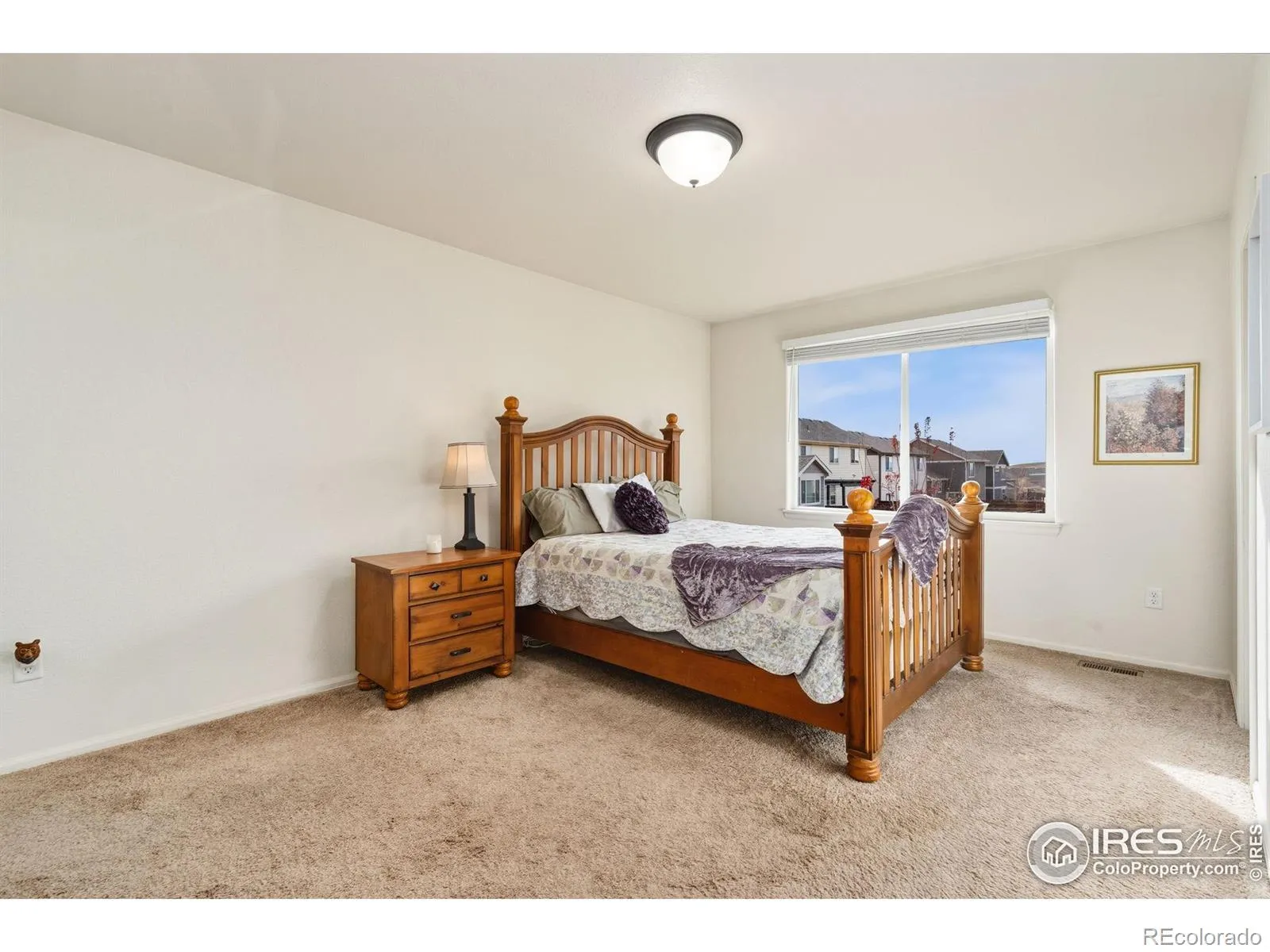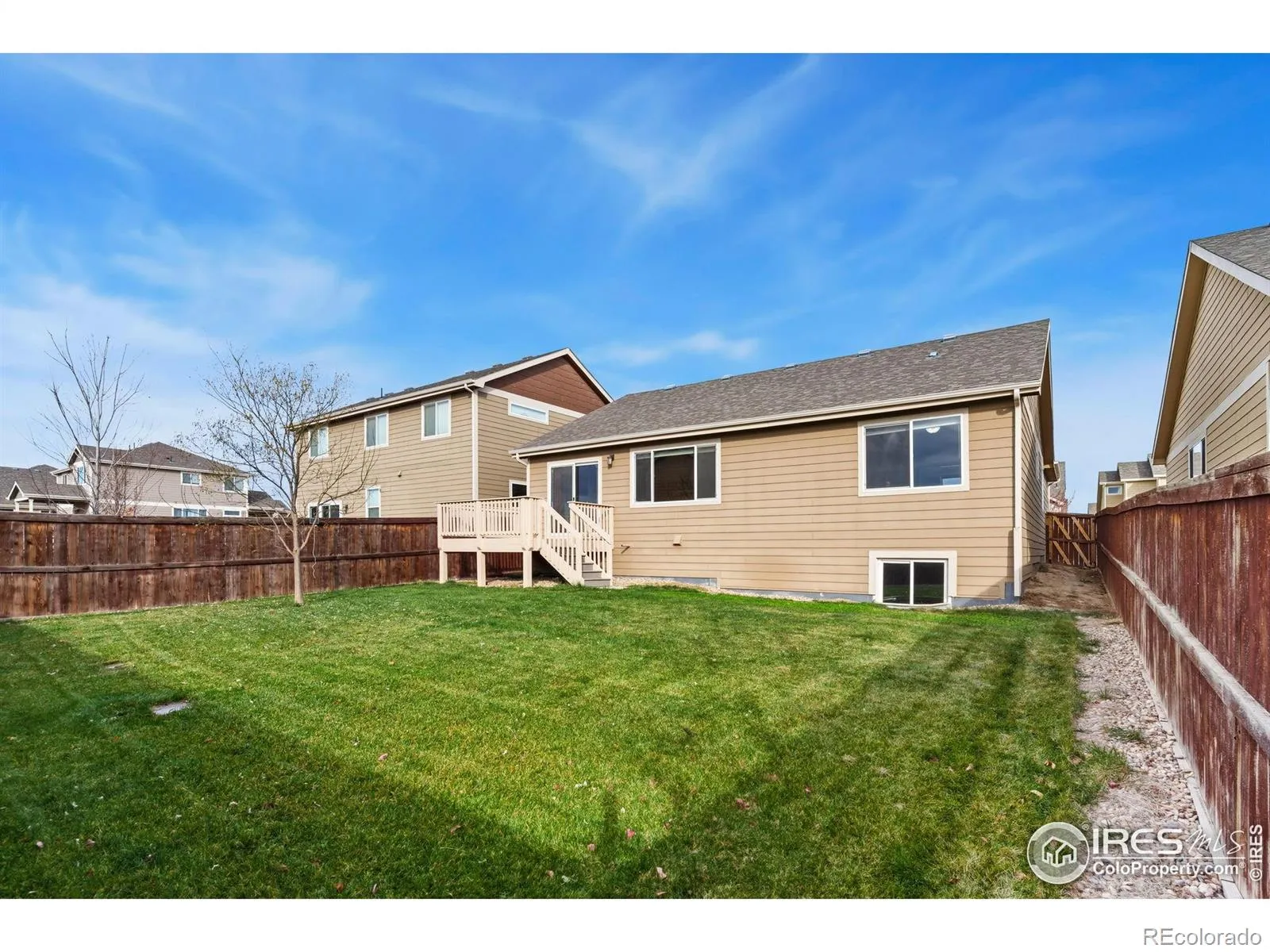 Welcome to this clean and well maintained home! Bright and open floorplan has vaulted ceiling in living room with LVP flooring. Open kitchen has breakfast bar, beautiful knotty alder cabinets and built in custom pantry. Spacious primary bedroom has 6×11 walk-in closet, and large attached 3/4 bath with double sink vanity. Full unfinished basement has egress windows that are partially above grade allowing for direct sunlight. It is a fantastic blank-slate for adding more finished square footage and has bath rough in. Backyard has a composite deck with a fully fenced yard and a sprinkler system. Lot is positioned for long view to South. Neighborhood has several parks. Stroll to Plum Park and relax while the kids play.