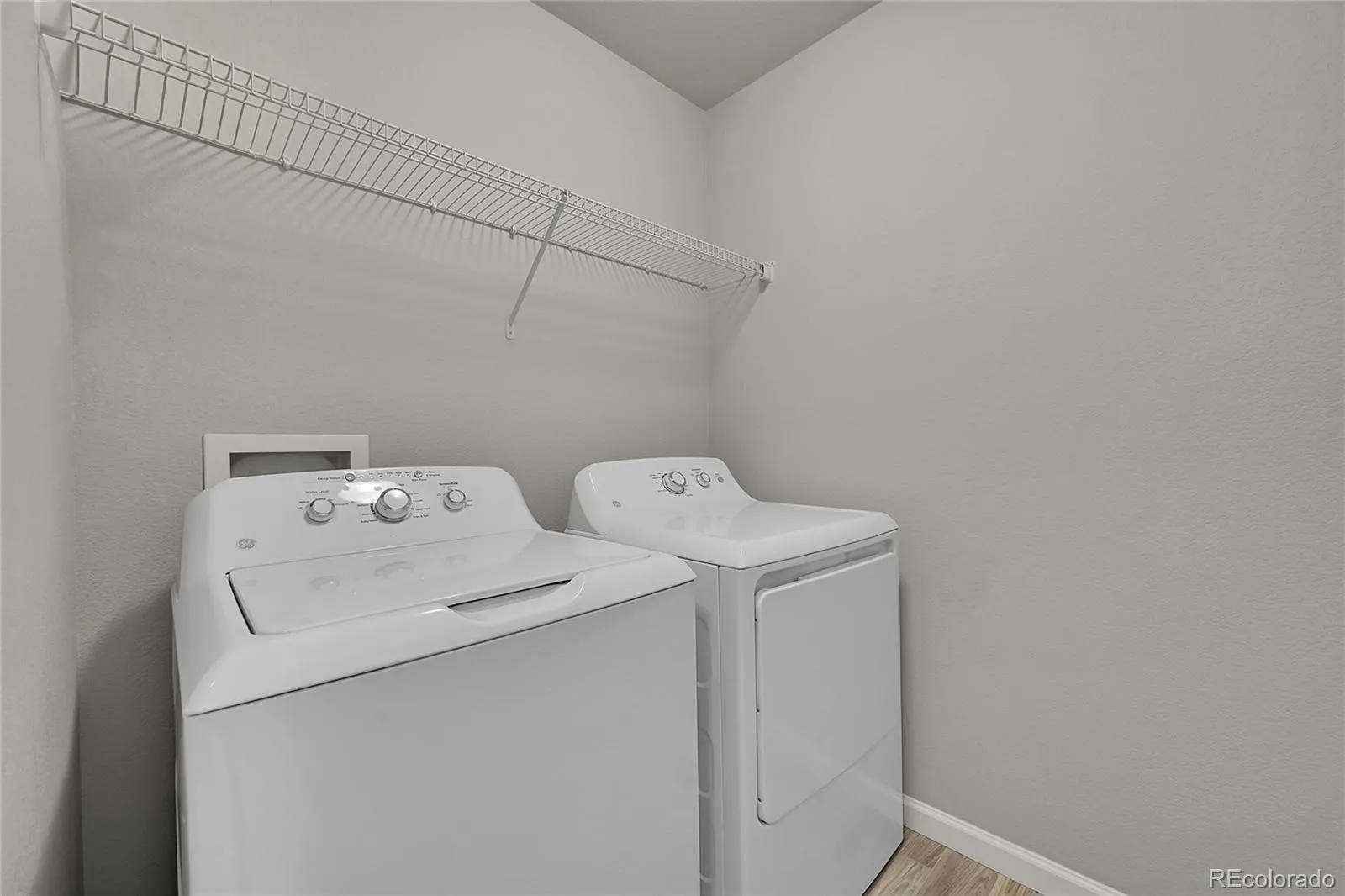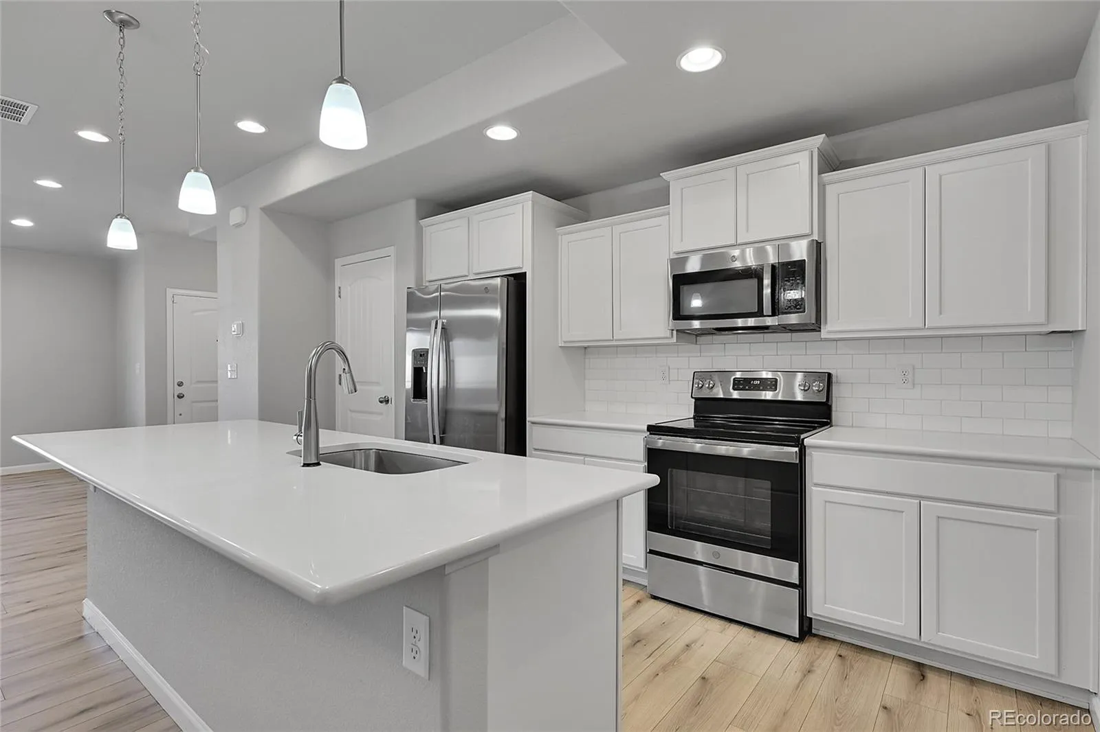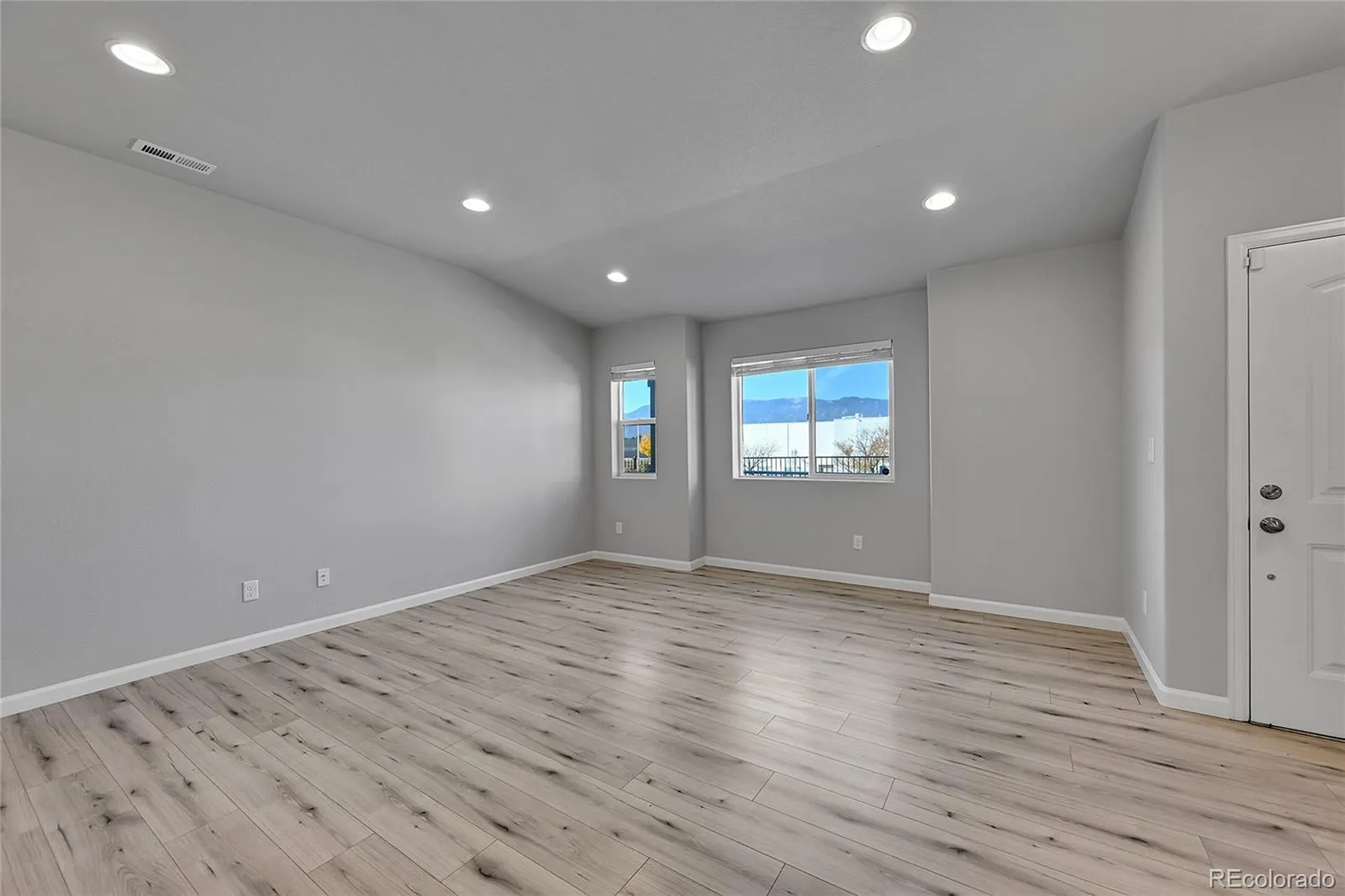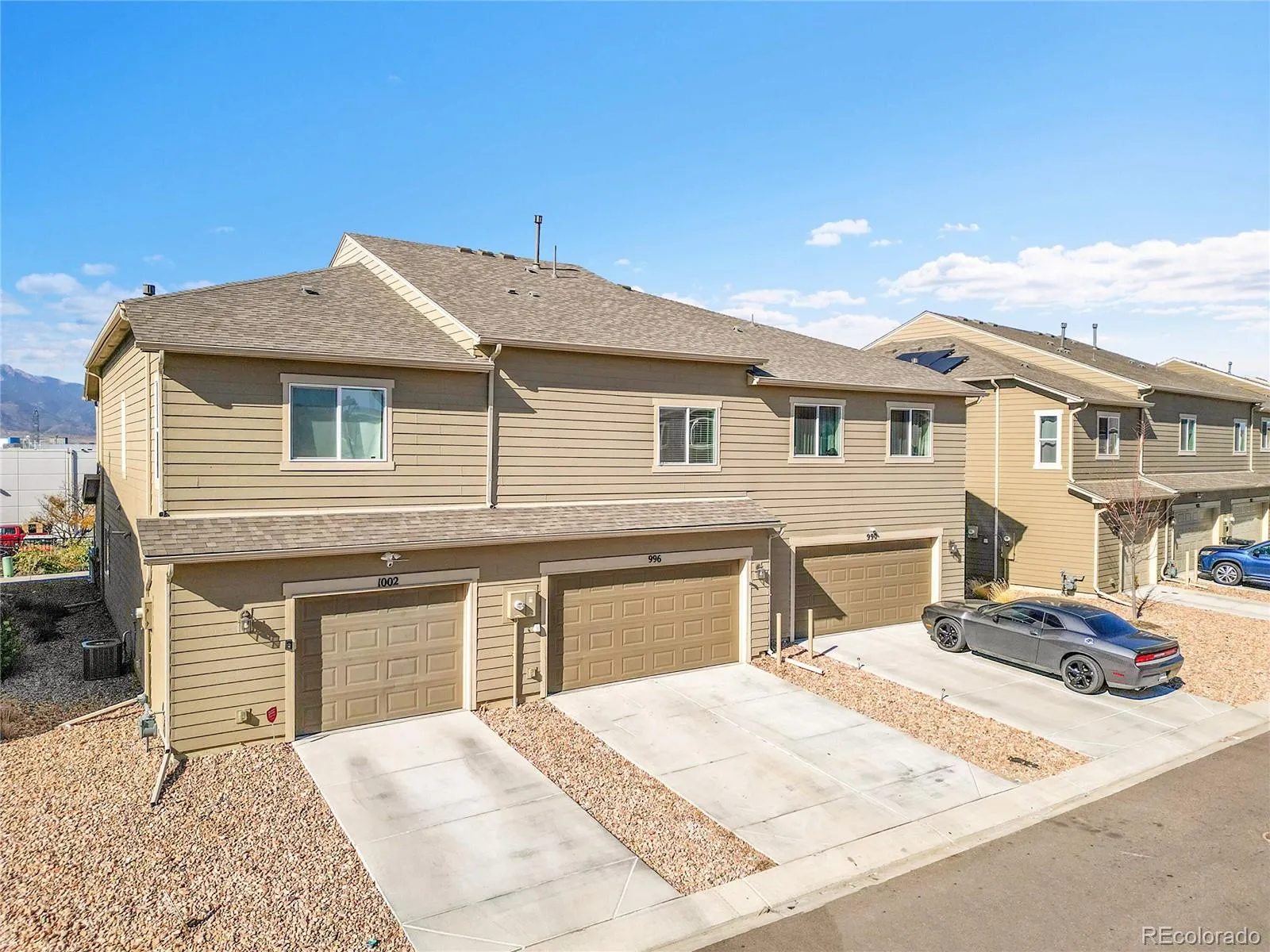 Discover this stunning 3-bedroom, 3-bathroom contemporary townhome in the desirable Chapel Heights community of Colorado Springs. Offering 1,702 square feet of thoughtfully designed living space, this two-story home combines modern style with everyday comforts. The fenced, covered front patio provides the perfect spot to relax and take in breathtaking Mountain Peak views. The main level features an open-concept layout with elegant LVP flooring throughout, seamlessly connecting the living, dining, and kitchen areas—ideal for both everyday living and entertaining. The spacious living room offers a large picture window overlooking the front yard and a convenient pass-through to the kitchen. The modern island kitchen is beautifully appointed with white cabinetry, quartz countertops, and stainless steel appliances, including a smooth-top range, microwave, dishwasher, and French-door refrigerator. The adjacent dining area makes serving and cleanup effortless. A powder bath and direct access to the attached two-car garage complete the main floor. Upstairs, the primary suite offers a serene retreat with neutral carpet and a walk-in closet. The en-suite bathroom showcases a dual-sink vanity and a tiled walk-in shower. Two additional bedrooms—each featuring stunning Peak views—share a full bathroom, providing ample space for family or guests. The laundry room is conveniently located on the upper level, with a washer and dryer included. Additional highlights include central air and heat for year-round comfort and a two-car attached garage with an automatic opener. Residents will love the nearby YMCA-sponsored Chapel Heights Recreation Center, offering daycare, a fitness center, and community events. Perfectly located near schools, shopping, dining, and major highways, with Peterson Space Force Base just 4 miles away and Fort Carson 8 miles away, this home offers the ideal balance of convenience and comfort. Move-in ready and waiting for you to make it your own!