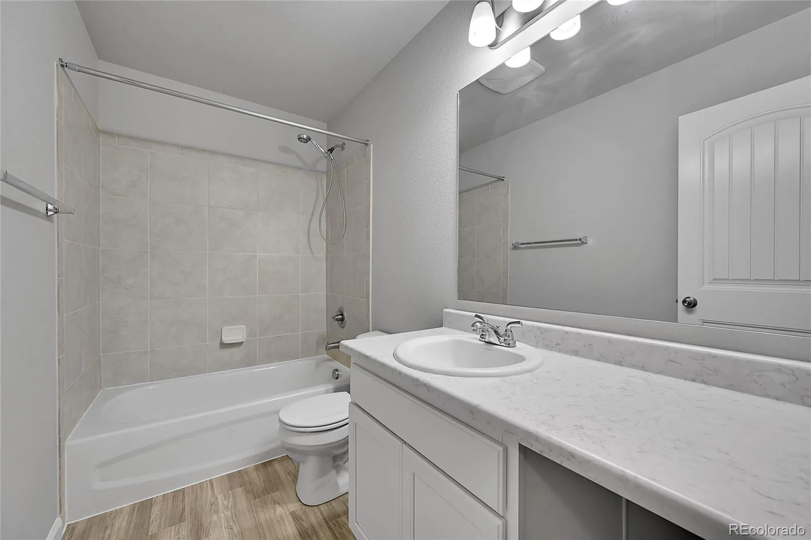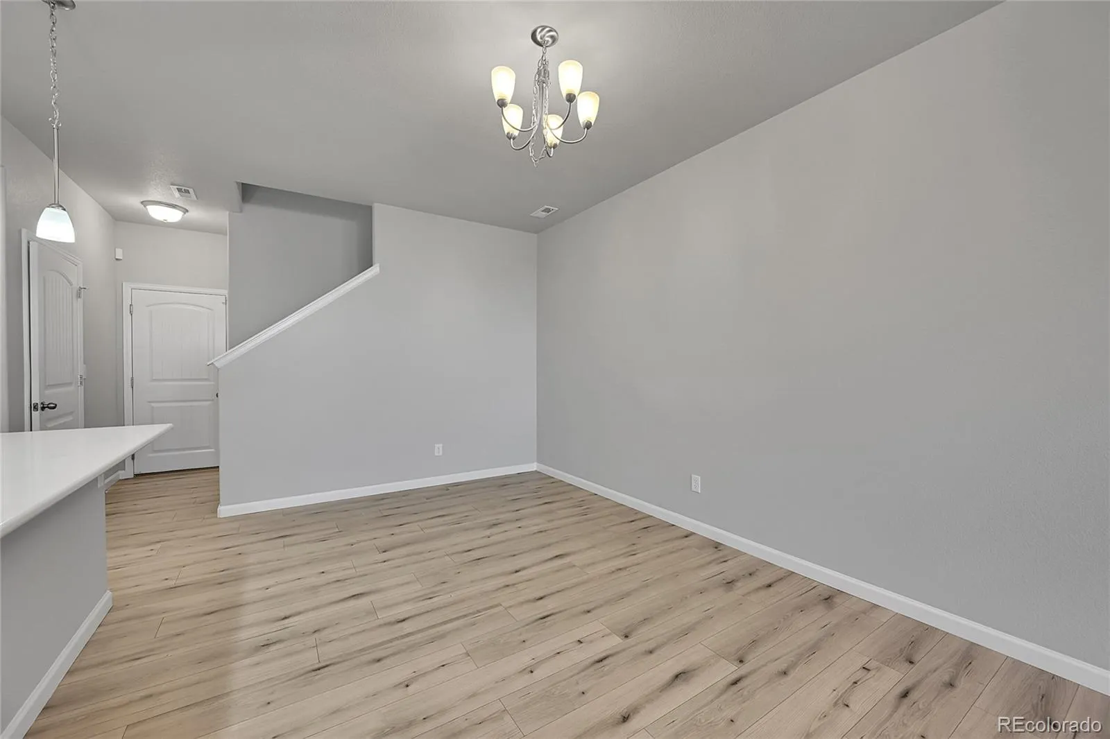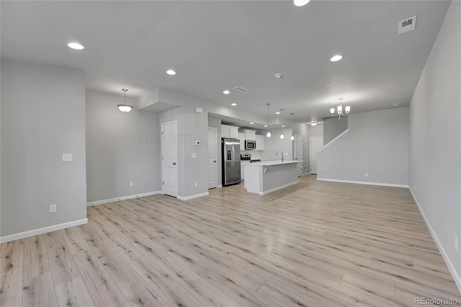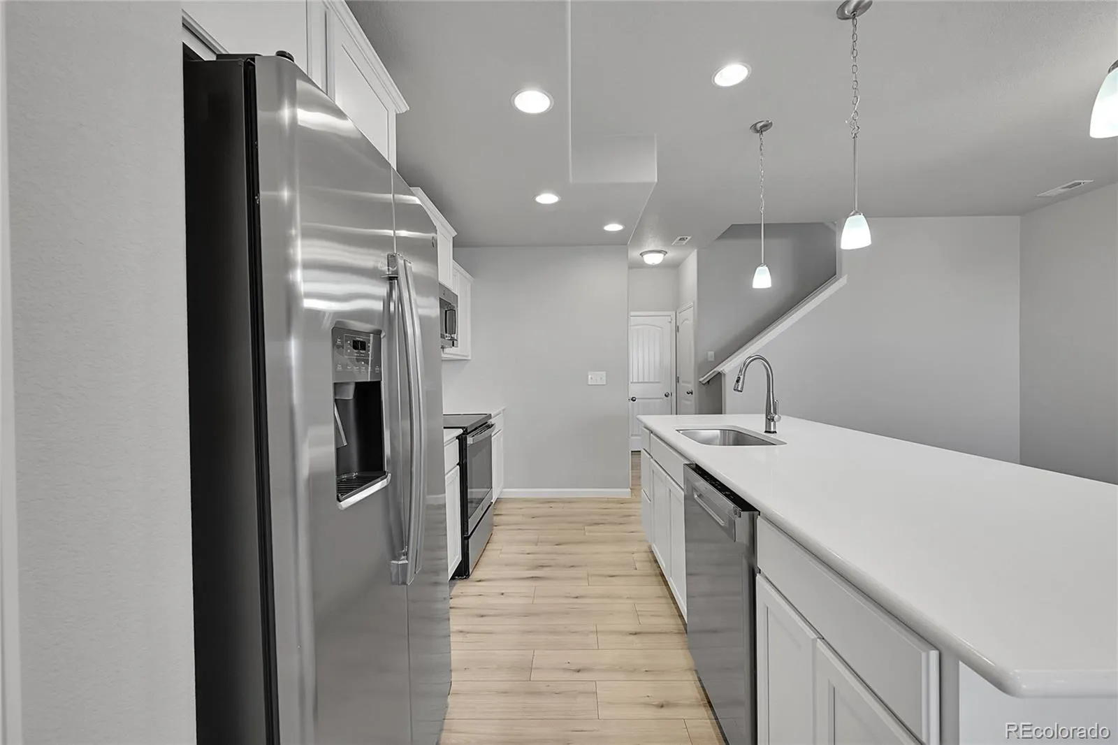 Discover this stunning 3-bedroom, 3-bathroom contemporary townhome in the desirable Chapel Heights community of Colorado Springs. Offering 1,702 square feet of thoughtfully designed living space, this two-story home combines modern style with everyday comforts. The fenced, covered front patio provides the perfect spot to relax and take in breathtaking Mountain Peak views. The main level features an open-concept layout with elegant LVP flooring throughout, seamlessly connecting the living, dining, and kitchen areas—ideal for both everyday living and entertaining. The spacious living room offers a large picture window overlooking the front yard and a convenient pass-through to the kitchen. The modern island kitchen is beautifully appointed with white cabinetry, quartz countertops, and stainless steel appliances, including a smooth-top range, microwave, dishwasher, and French-door refrigerator. The adjacent dining area makes serving and cleanup effortless. A powder bath and direct access to the attached two-car garage complete the main floor. Upstairs, the primary suite offers a serene retreat with neutral carpet and a walk-in closet. The en-suite bathroom showcases a dual-sink vanity and a tiled walk-in shower. Two additional bedrooms—each featuring stunning Peak views—share a full bathroom, providing ample space for family or guests. The laundry room is conveniently located on the upper level, with a washer and dryer included. Additional highlights include central air and heat for year-round comfort and a two-car attached garage with an automatic opener. Residents will love the nearby YMCA-sponsored Chapel Heights Recreation Center, offering daycare, a fitness center, and community events. Perfectly located near schools, shopping, dining, and major highways, with Peterson Space Force Base just 4 miles away and Fort Carson 8 miles away, this home offers the ideal balance of convenience and comfort. Move-in ready and waiting for you to make it your own!