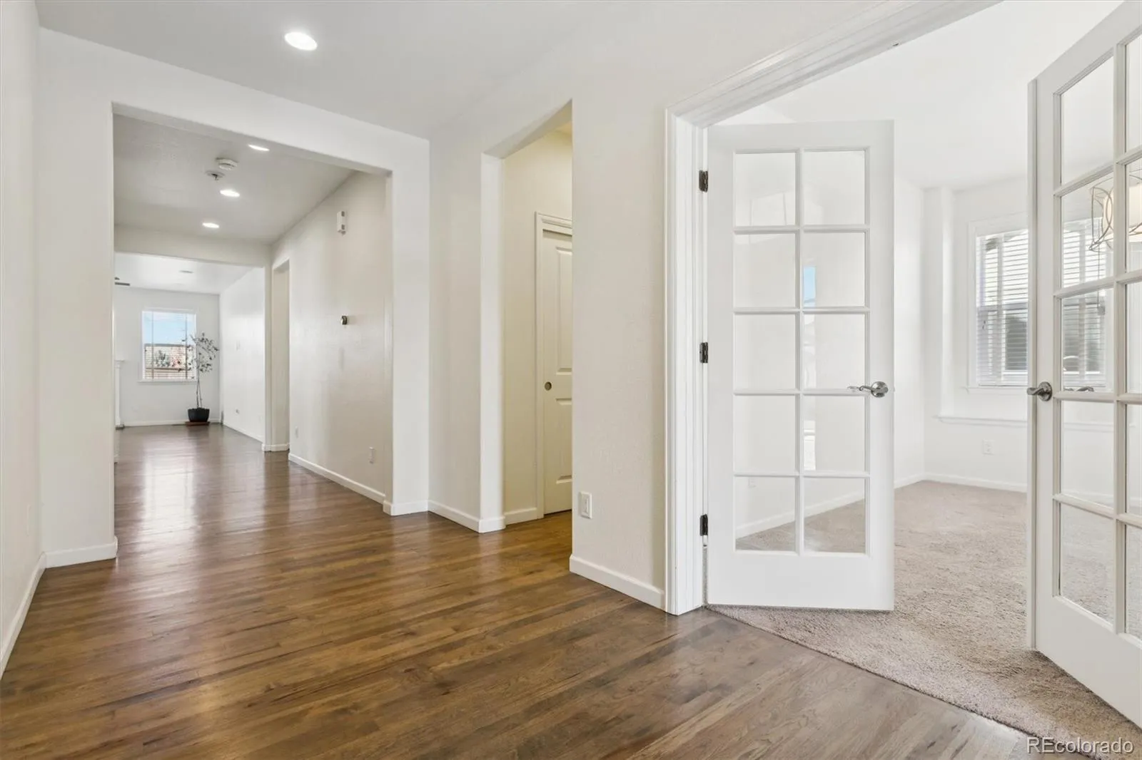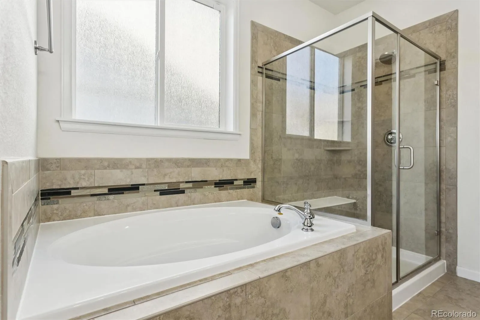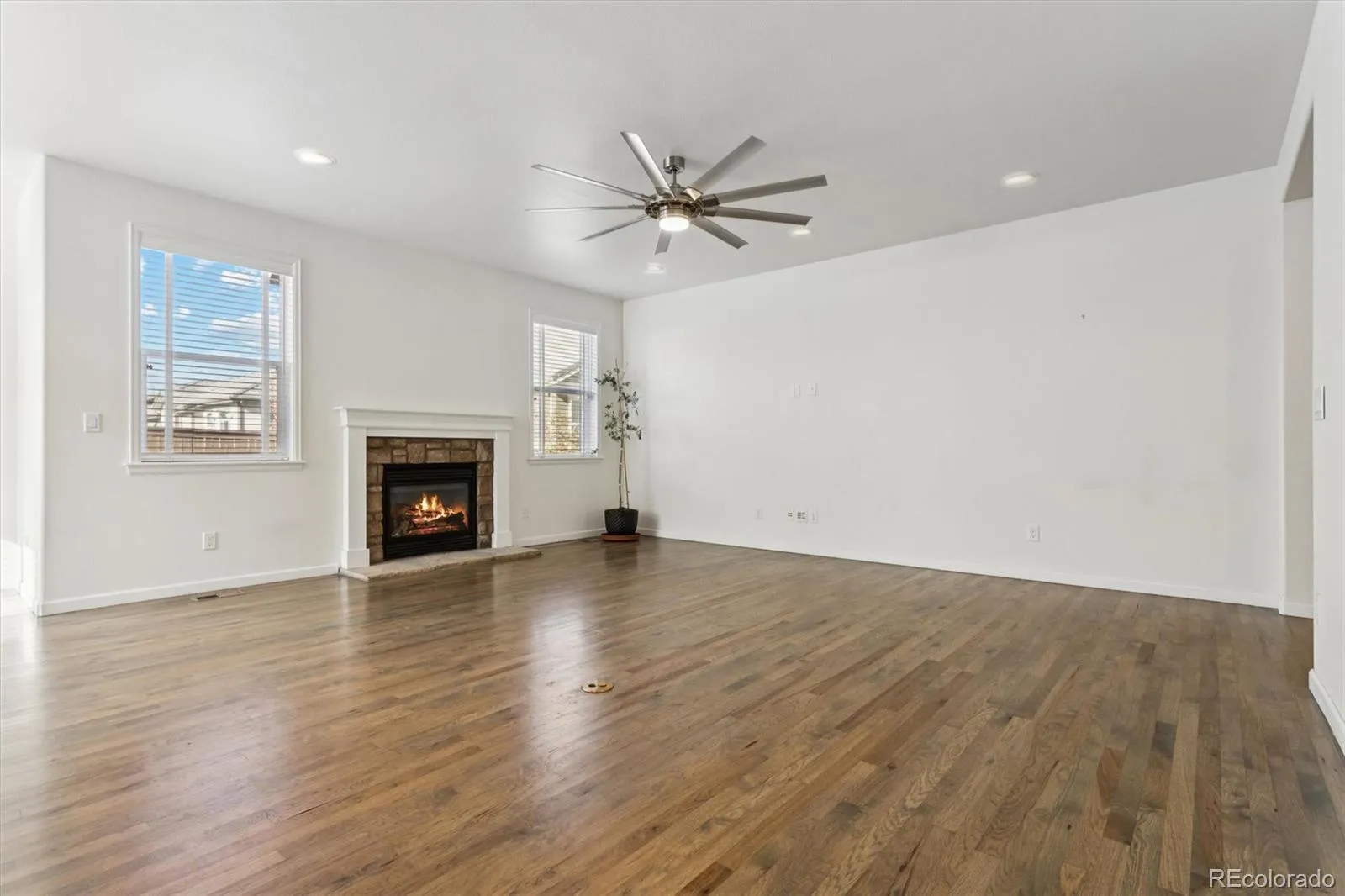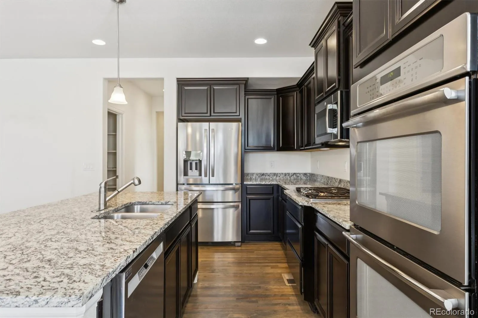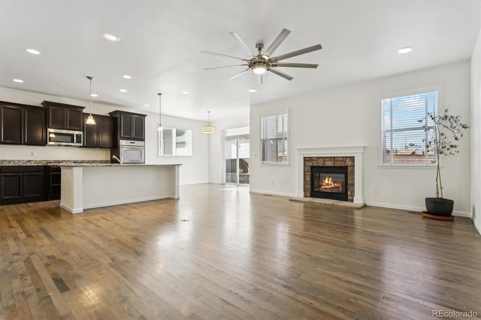 Welcome to 11527 Jasper Street in The Villages at Buffalo Run! This home is low-maintenance and meticulously kept, with a rare main floor Primary suite. The open floor plan boasts 9 ft ceilings throughout, modern finishes & solid hardwoods. The desirable main flr Primary bedroom offers a beautiful ensuite 5-piece bath with dual vanity, tiled shower + bench, window over the soaking tub. Every convenience needed is found on the main floor including laundry. The family room is fitted with stone gas fireplace, a focal point for gatherings. Keep the party going in the backyard with large paved patio, walled gas fire pit & seating area for guests. You’ll love the modern kitchen with a large slab granite island, tall cabinetry, Stainless appliances, gas cooktop, pendant lights & eat-in nook. Completing the main floor is a study (optional den), half bath & mud room/laundry. Upstairs you’ll find two ample bedrooms & full bath with granite vanity. Note the quality iron banisters. The professionally finished basement offers plenty of bonus space with a rec/entertainment room, bar area with Quartz counters, two bedrooms & 3/4 bath. There is also a sizable unfinished storage/utility room with plenty of room for a workshop or to store seasonal items. The exterior of this home is James Hardie concrete siding, freshly painted in 2024; the roof concrete tile. The backyard is fully fenced with little maintenance required. The 2.5-car garage is finished with exterior access door & window. You have access to nearby trails & parks including Villages East Park w/ pavilion; dine at the golf club. Enjoy a convenient location close to shopping, 5 minutes to E-470, 10-12 minutes to DIA, and a well established community.
