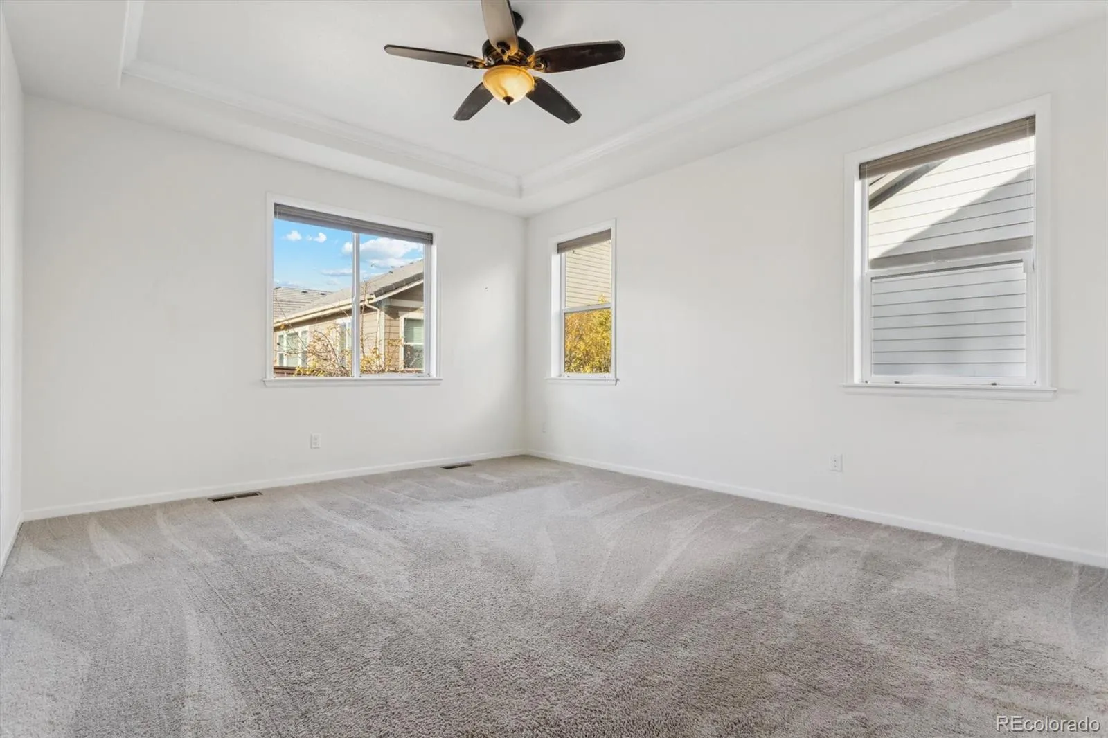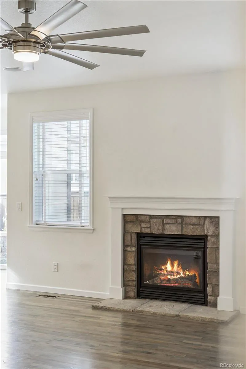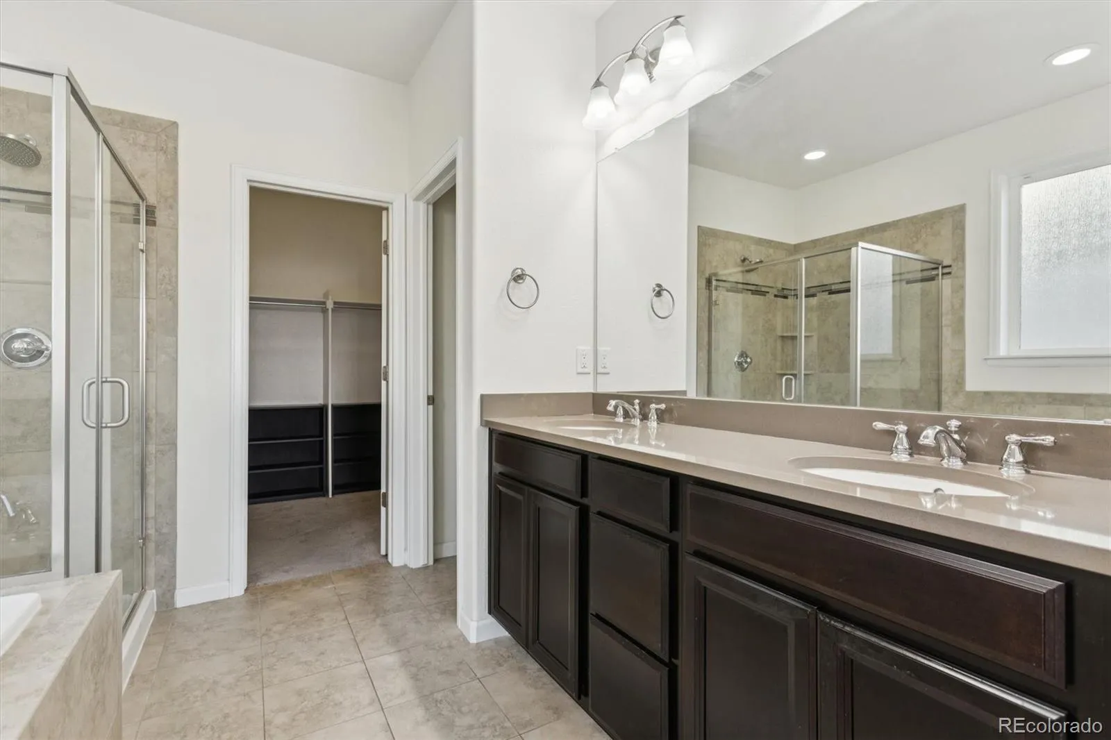 Welcome to 11527 Jasper Street in The Villages at Buffalo Run! This home is low-maintenance and meticulously kept, with a rare main floor Primary suite. The open floor plan boasts 9 ft ceilings throughout, modern finishes & solid hardwoods. The desirable main flr Primary bedroom offers a beautiful ensuite 5-piece bath with dual vanity, tiled shower + bench, window over the soaking tub. Every convenience needed is found on the main floor including laundry. The family room is fitted with stone gas fireplace, a focal point for gatherings. Keep the party going in the backyard with large paved patio, walled gas fire pit & seating area for guests. You’ll love the modern kitchen with a large slab granite island, tall cabinetry, Stainless appliances, gas cooktop, pendant lights & eat-in nook. Completing the main floor is a study (optional den), half bath & mud room/laundry. Upstairs you’ll find two ample bedrooms & full bath with granite vanity. Note the quality iron banisters. The professionally finished basement offers plenty of bonus space with a rec/entertainment room, bar area with Quartz counters, two bedrooms & 3/4 bath. There is also a sizable unfinished storage/utility room with plenty of room for a workshop or to store seasonal items. The exterior of this home is James Hardie concrete siding, freshly painted in 2024; the roof concrete tile. The backyard is fully fenced with little maintenance required. The 2.5-car garage is finished with exterior access door & window. You have access to nearby trails & parks including Villages East Park w/ pavilion; dine at the golf club. Enjoy a convenient location close to shopping, 5 minutes to E-470, 10-12 minutes to DIA, and a well established community.