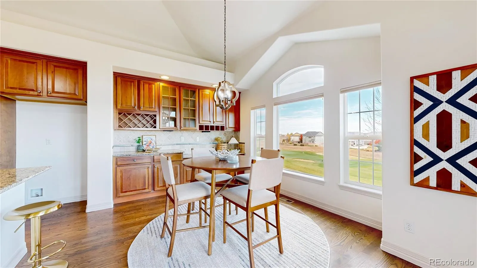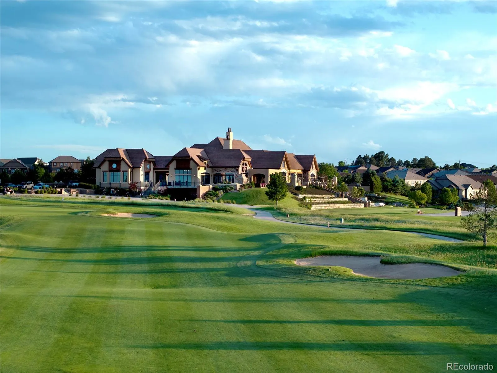 Welcome home! Discover exceptional living in this beautifully appointed 5-bedroom, 4-bathroom ranch style home in Blackstone Country Club. Set along a picturesque Par 3 hole, this home enjoys beautiful elevated views of the course, peaceful privacy, and fun right outside your door. Evenings bring spectacular sunsets over the fairway. Plus, a neighborhood park is conveniently located right across the street. Enjoy Inside, the open-concept main level features abundant natural light, spacious living and dining areas, and a well-designed gourmet kitchen ideal for everyday living or entertaining. The primary suite overlooks the golf course and includes a luxurious ensuite bath and generous walk-in closet. The finished walkout basement is an entertainer’s dream, complete with a stylish wet bar, dedicated media area, and ample game space that opens to the backyard with fairway views. With five total bedrooms, including guest accommodations and flexible office or hobby spaces, this home offers room for everyone. Additional highlights include a 3-car garage, patio with hot tub, expanded & covered rear deck and front porch, and a beautifully maintained lot that blends perfectly with its natural surroundings. All of this in a prime location just minutes from Southlands Mall and E-470. Easy commuting to Denver International Airport, Buckley Space Force Base, Inverness, Meridian and the Denver Tech Center. This wonderful home backing to the course is move-in ready and waiting to welcome you home. Schedule your showing today!
