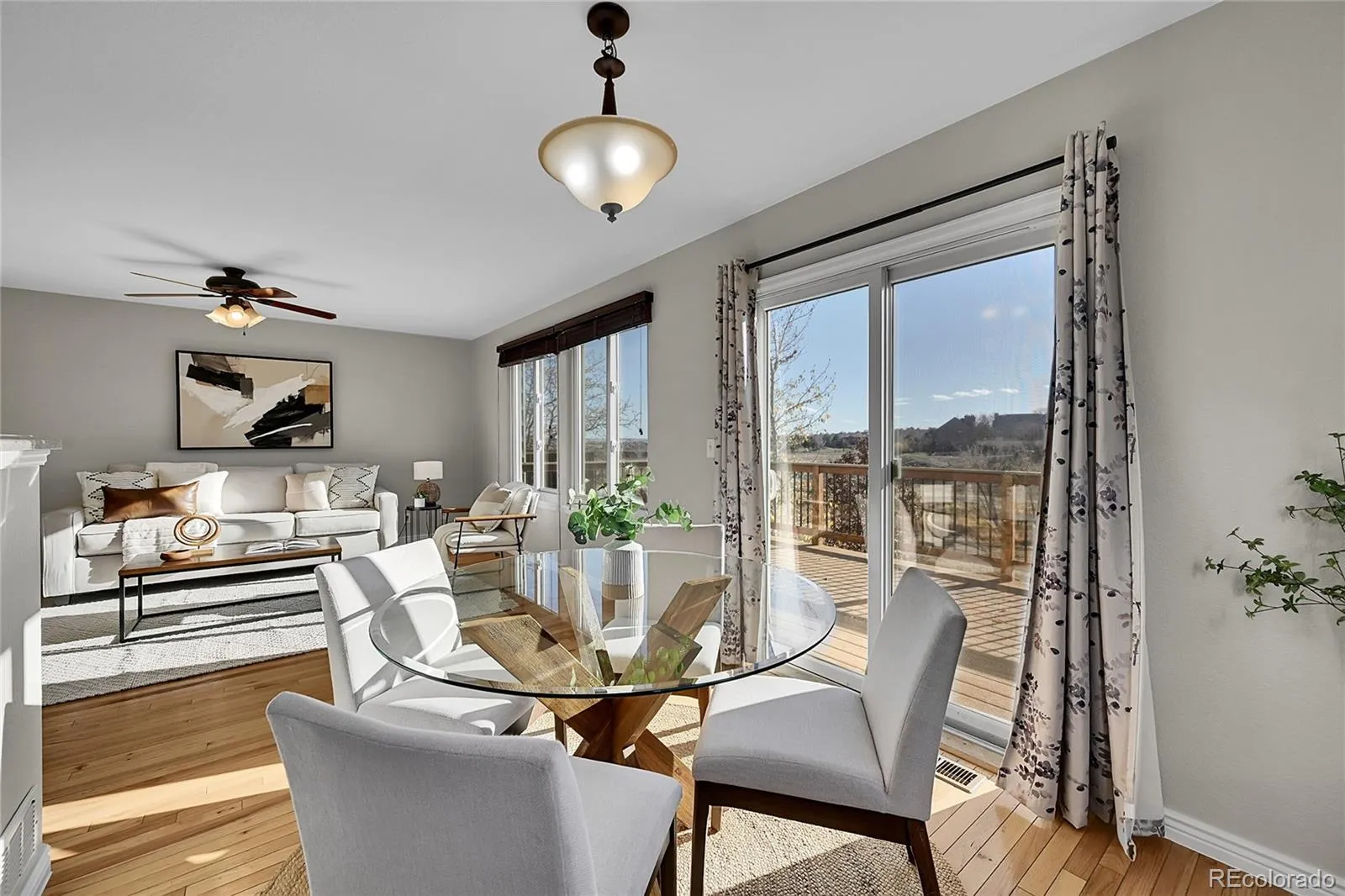 Discover the perfect blend of comfort and convenience in this beautifully refreshed duplex, set in a highly desirable neighborhood just steps from a charming community playground. Backing to open space with rare south-facing views, this home captures natural light and scenery at every turn. Inside, wood flooring flows across the main level, complemented by new carpet and fresh paint for a truly move-in-ready experience. The spacious kitchen and living areas open to a brand-new deck overlooking the open space-an ideal spot to unwind or entertain. Upstairs, the bright primary suite offers a walk-in closet and a serene five-piece bath with a soaking tub. Two additional secondary bedrooms are generously sized and filled with natural light. The lower level expands your living options with a versatile rec room and a walkout to a covered patio. Practical features include a large two-car garage and newly painted exterior. With effortless access to I-25, local restaurants, and shopping, this is the opportunity you’ve been waiting for-views, convenience, and comfort all in one.